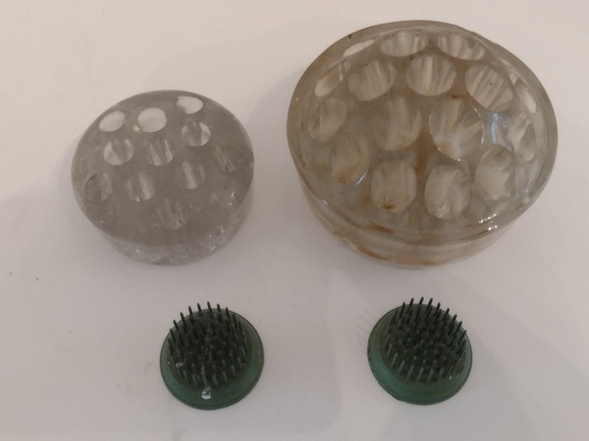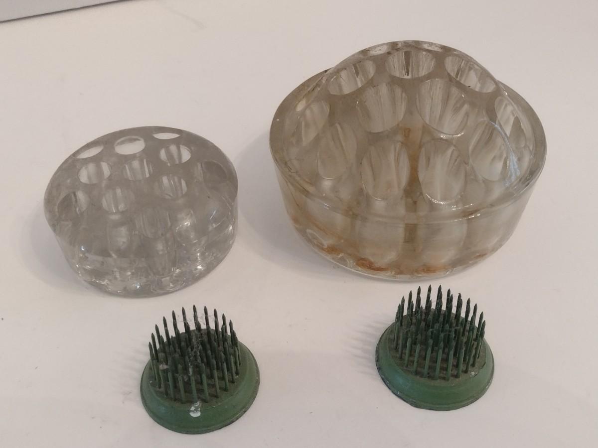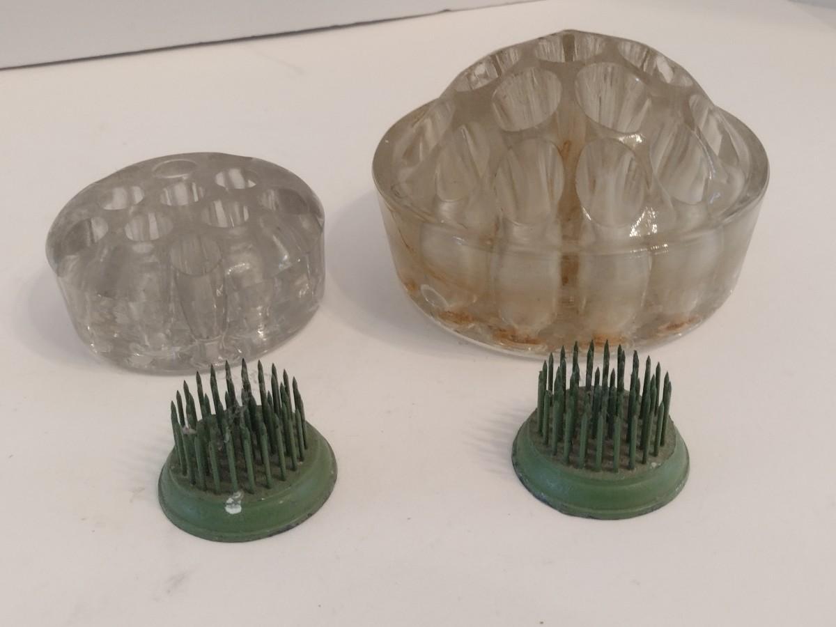 Assortment of Vintage Glass and Cast Metal Flower Arrangement Frogs. See pictures for condition.