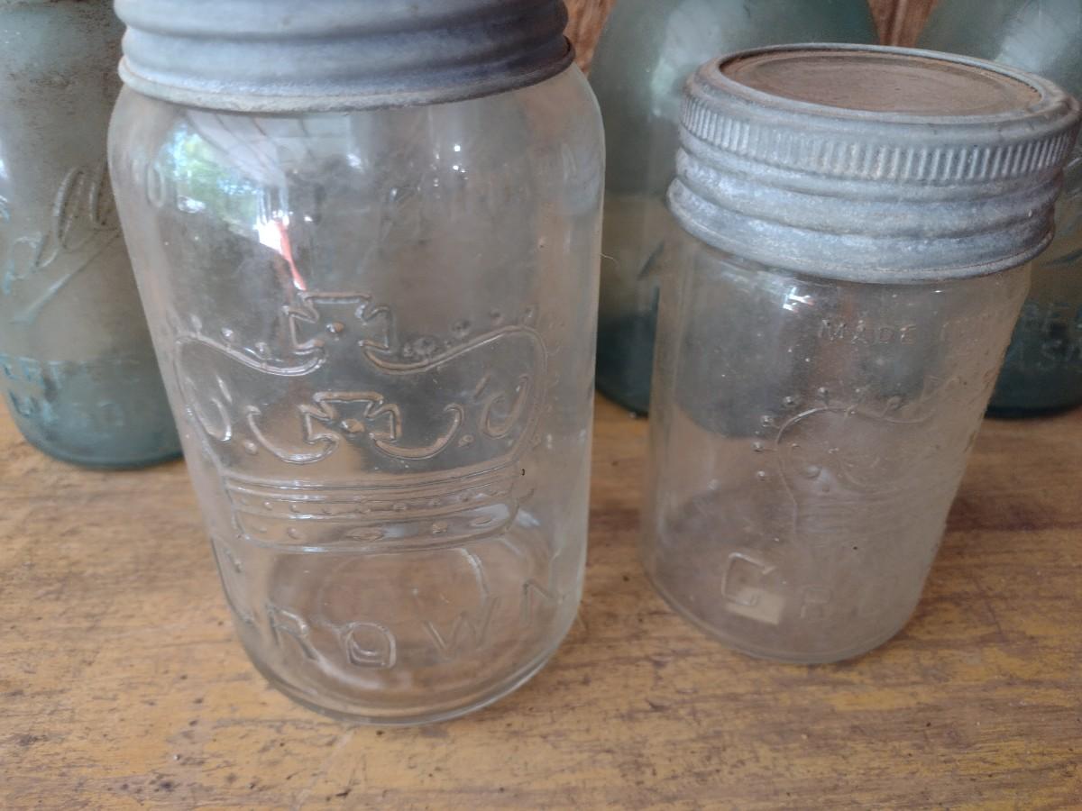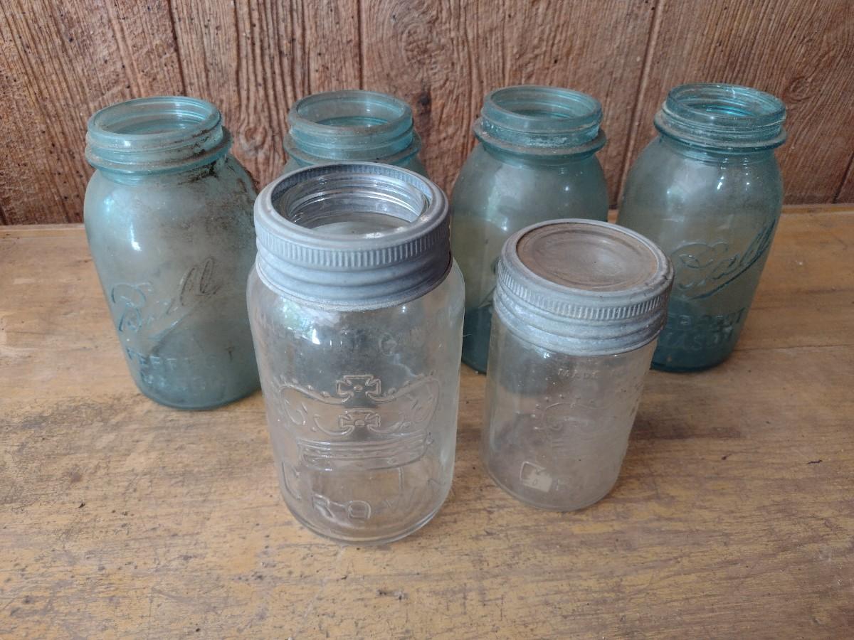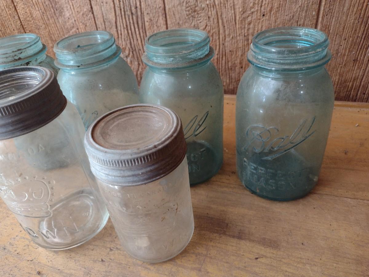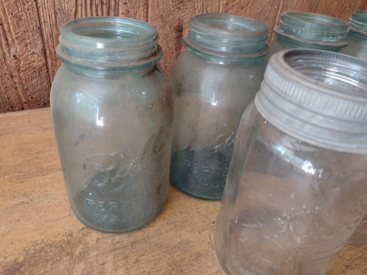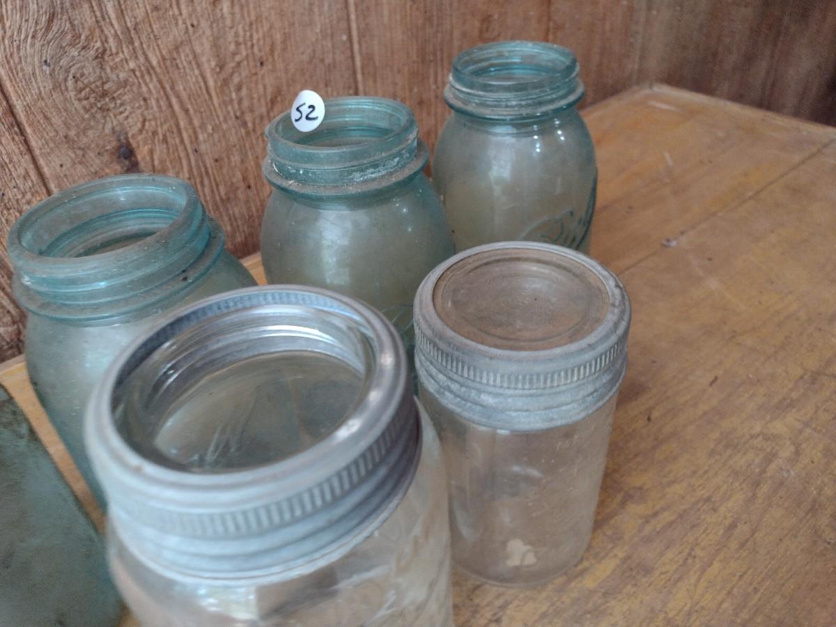 Assortment of Vintage Green Ball Canning Jars and Crown Glass Jars (#52)