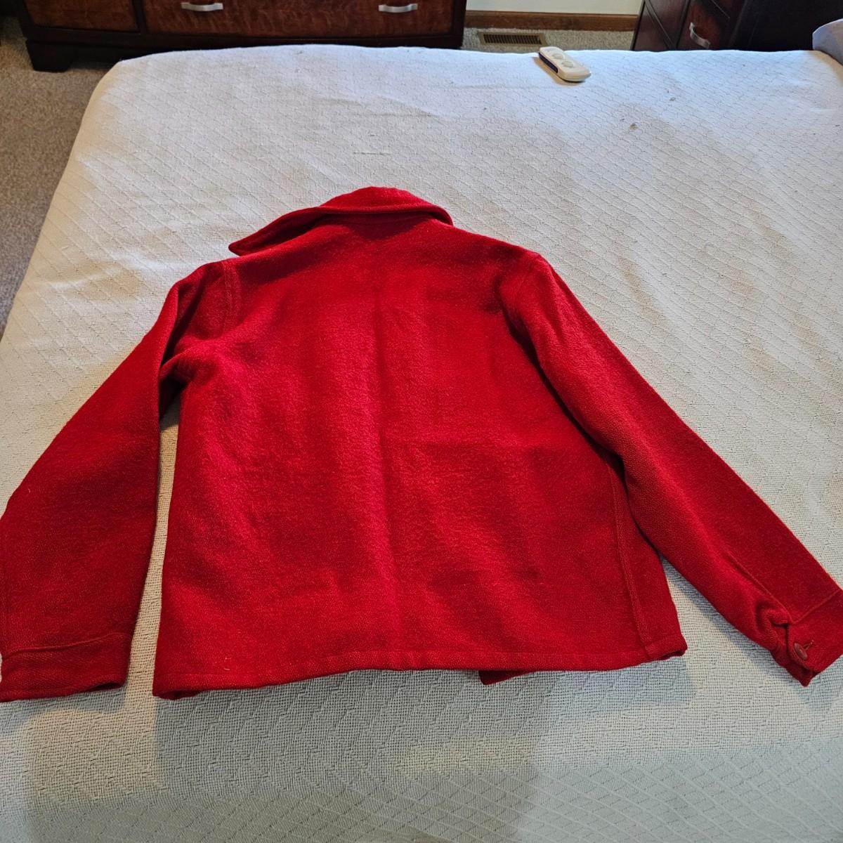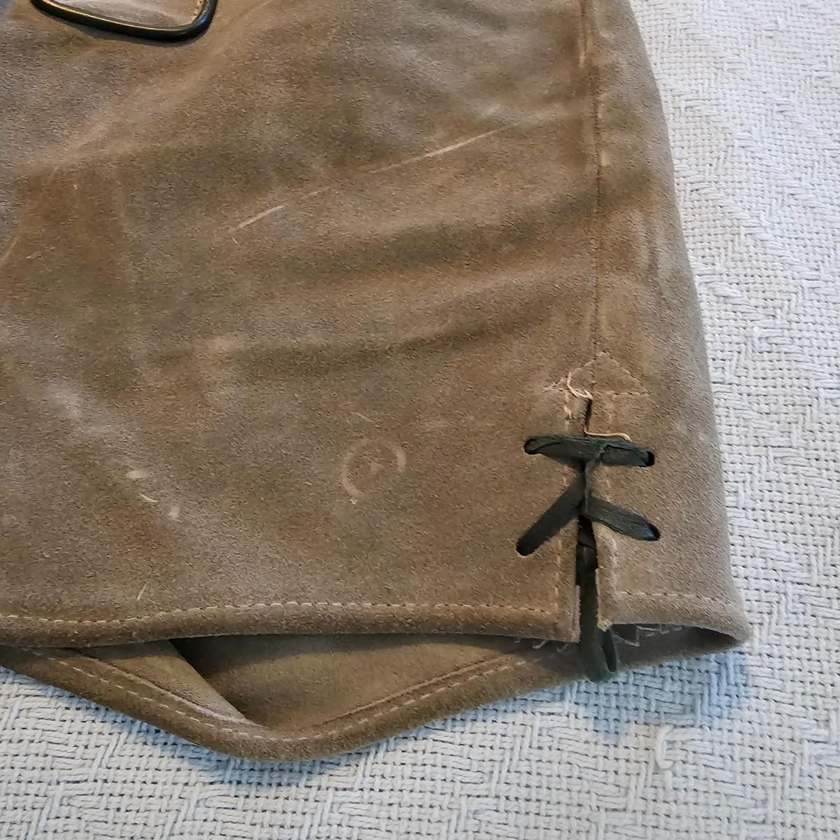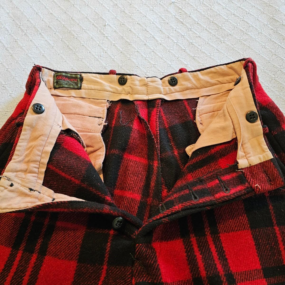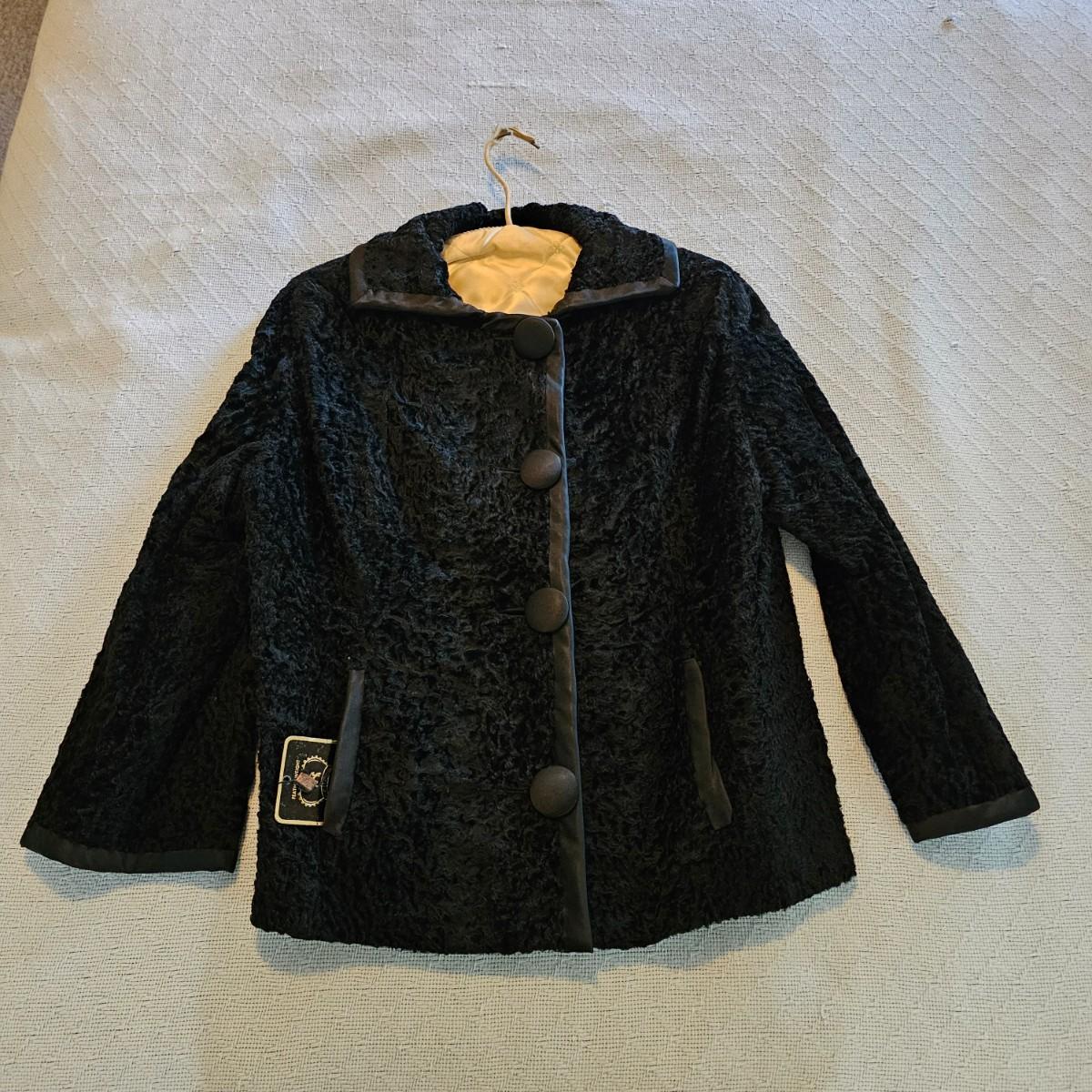 Awesome items for the cold weather and more. Two coats, a pair of wool ski pants and also a pair of leather lederhosen. Red coat is probably wool, has zip up front and pockets, Woodfield by Drybak. The black coat is from Argentina; it has a four-button front and satin piping at collar and cuffs. Enclosed tag indicates it is dyed broad tail processed lambskin. By S. Brody fine furs. Red checked pants are from Chippewa Woolen Mills in Wisconsin, have ribbed openings at legs and button up front with inside attachments for suspenders. Final item is a pair of genuine Austrian leather lederhosen with leather piping on pockets and placket button up front. Cones with suspenders. No sizes were marked on items, but jackets appear to be size Medium. See photos for details. Local pickup only.