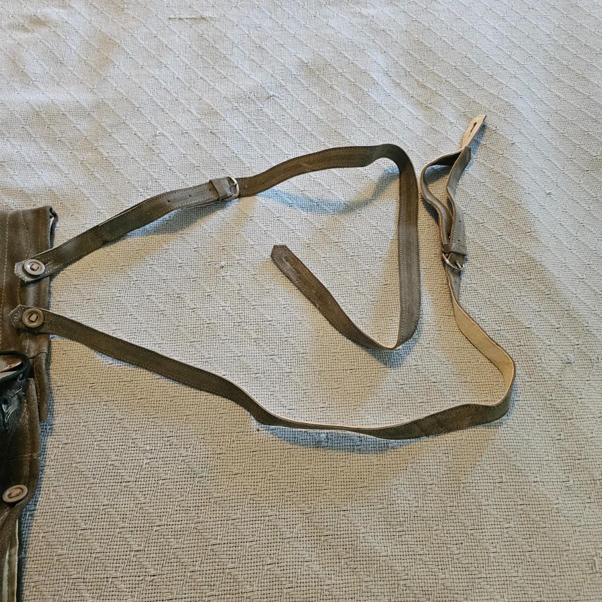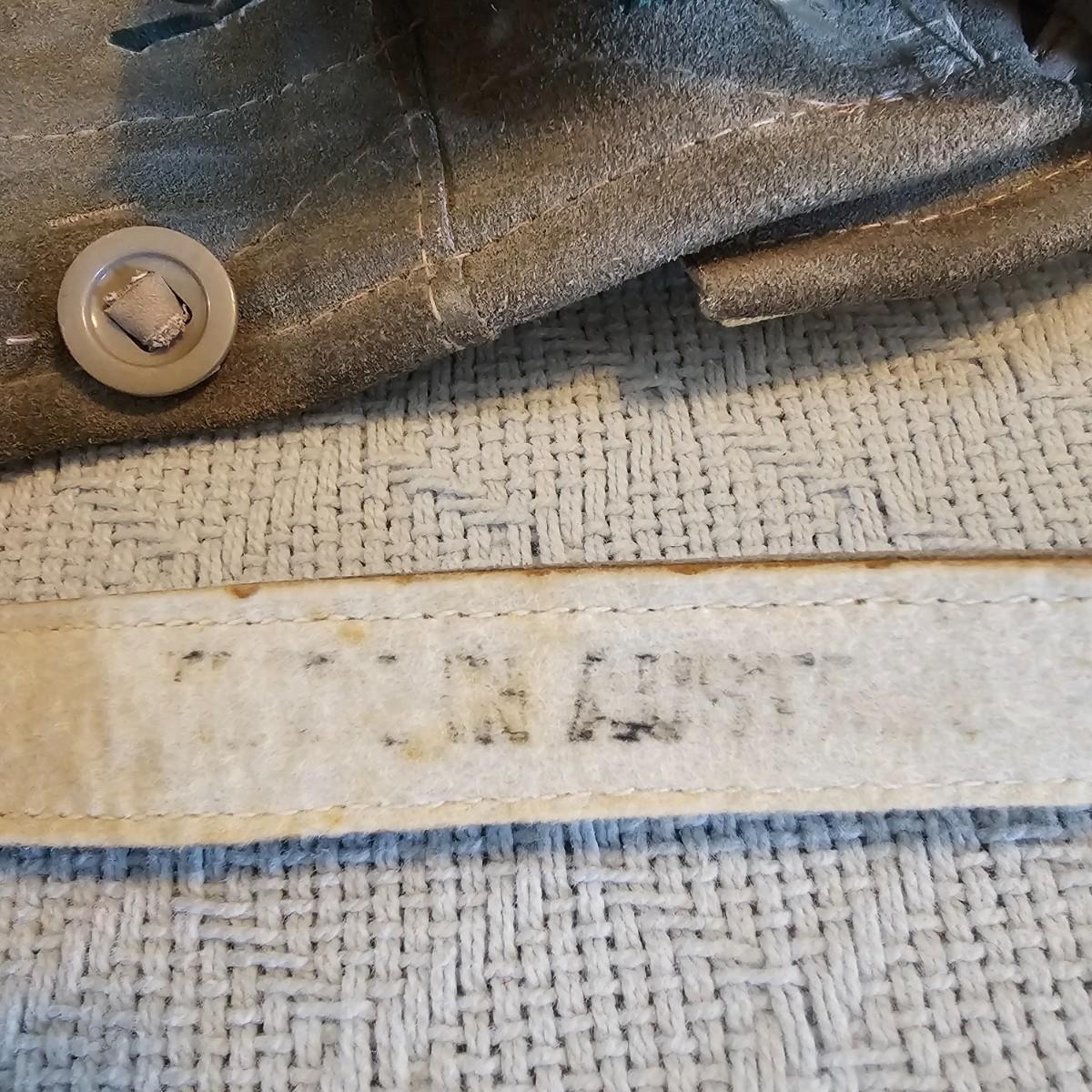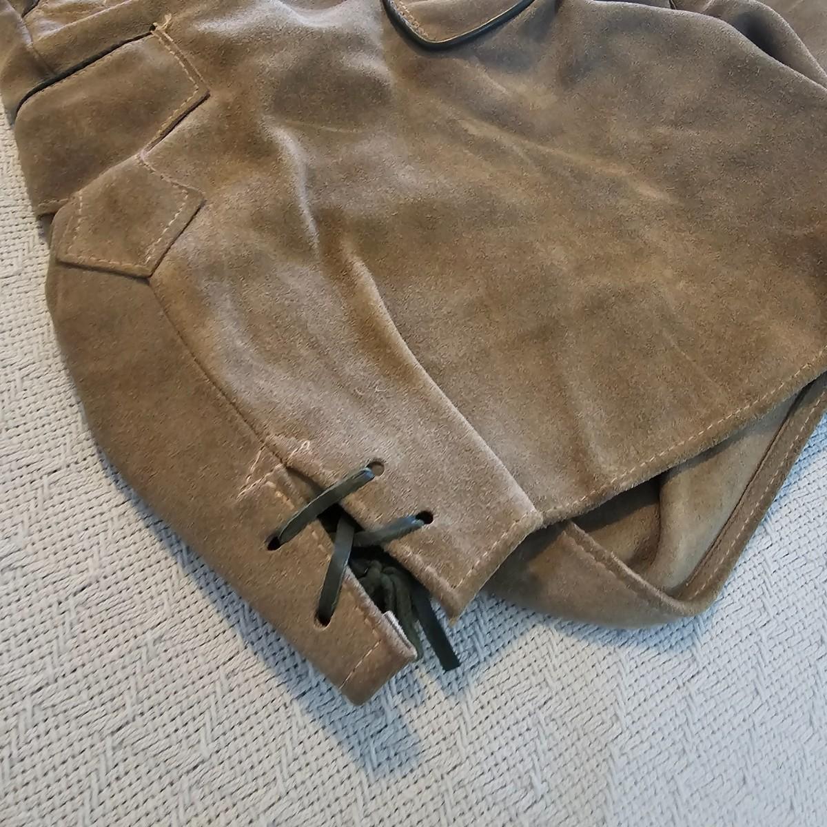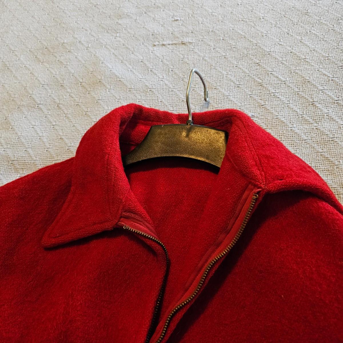 Awesome items for the cold weather and more. Two coats, a pair of wool ski pants and also a pair of leather lederhosen. Red coat is probably wool, has zip up front and pockets, Woodfield by Drybak. The black coat is from Argentina; it has a four-button front and satin piping at collar and cuffs. Enclosed tag indicates it is dyed broad tail processed lambskin. By S. Brody fine furs. Red checked pants are from Chippewa Woolen Mills in Wisconsin, have ribbed openings at legs and button up front with inside attachments for suspenders. Final item is a pair of genuine Austrian leather lederhosen with leather piping on pockets and placket button up front. Cones with suspenders. No sizes were marked on items, but jackets appear to be size Medium. See photos for details. Local pickup only.