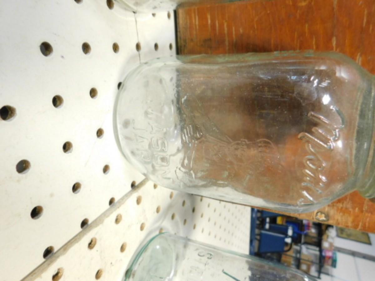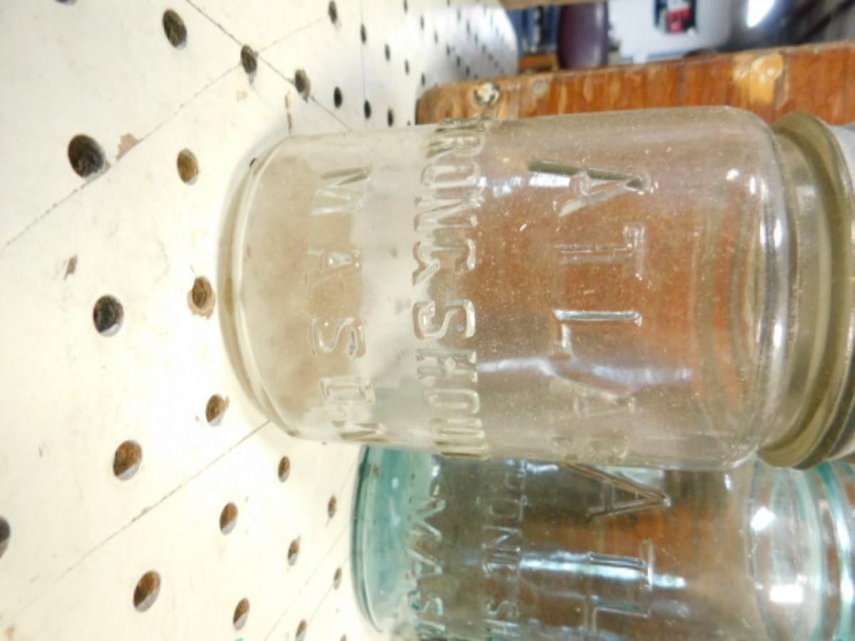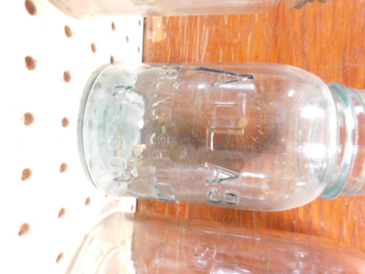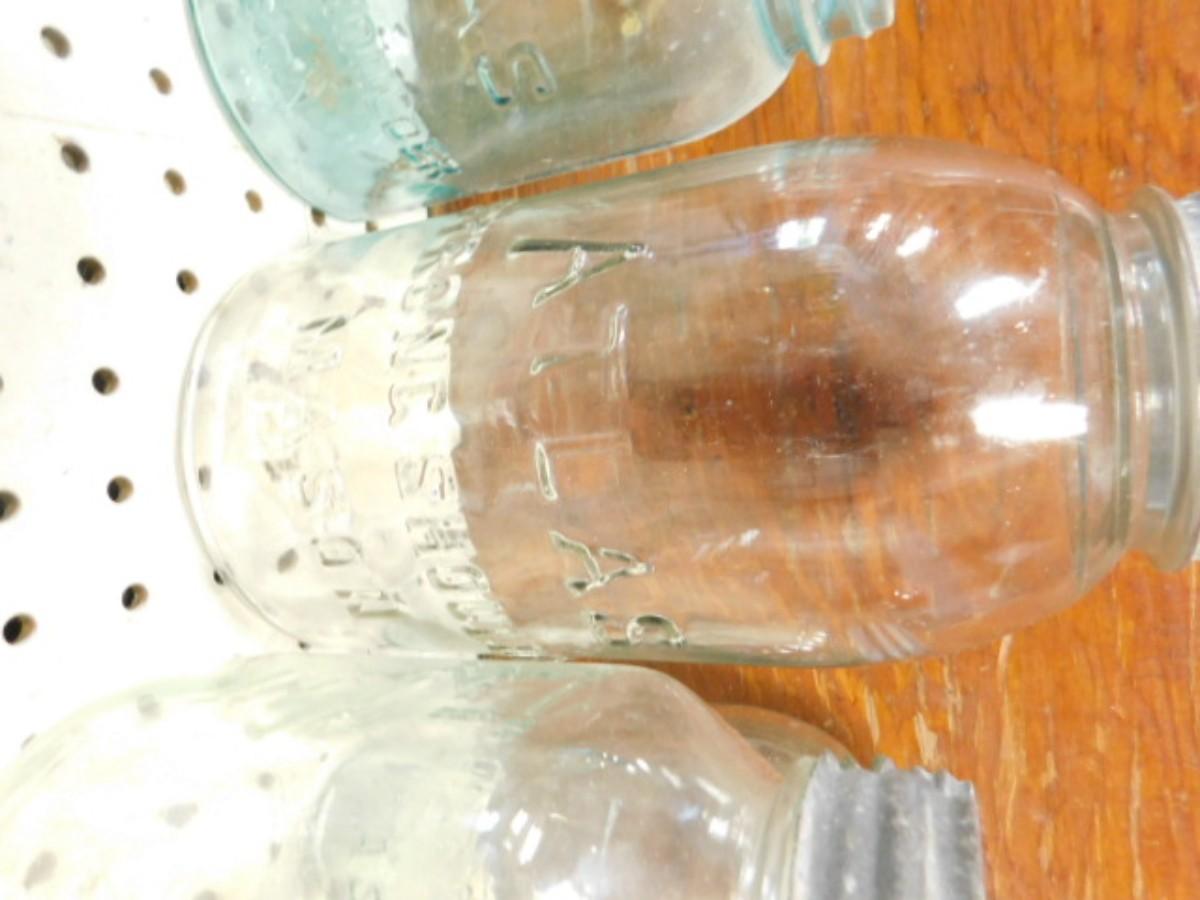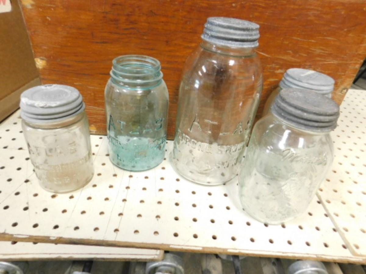 Assortment of Vintage Preserve Jars include Altas Mason, Mom's, and Other
