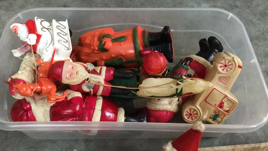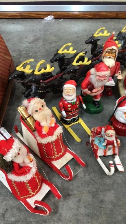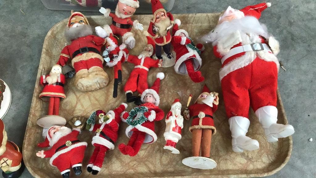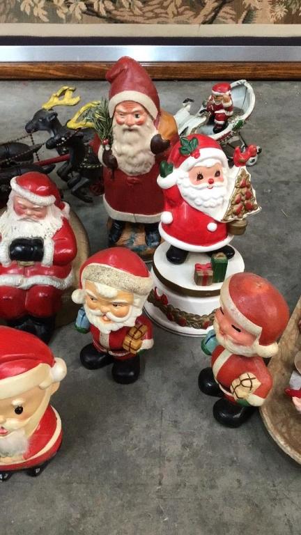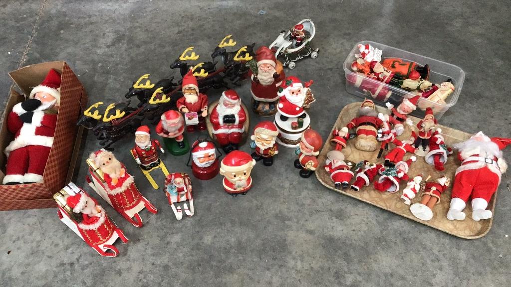 Various Santa figures, banks, toys..metal, plastic, fabric..approximate 36 pieces