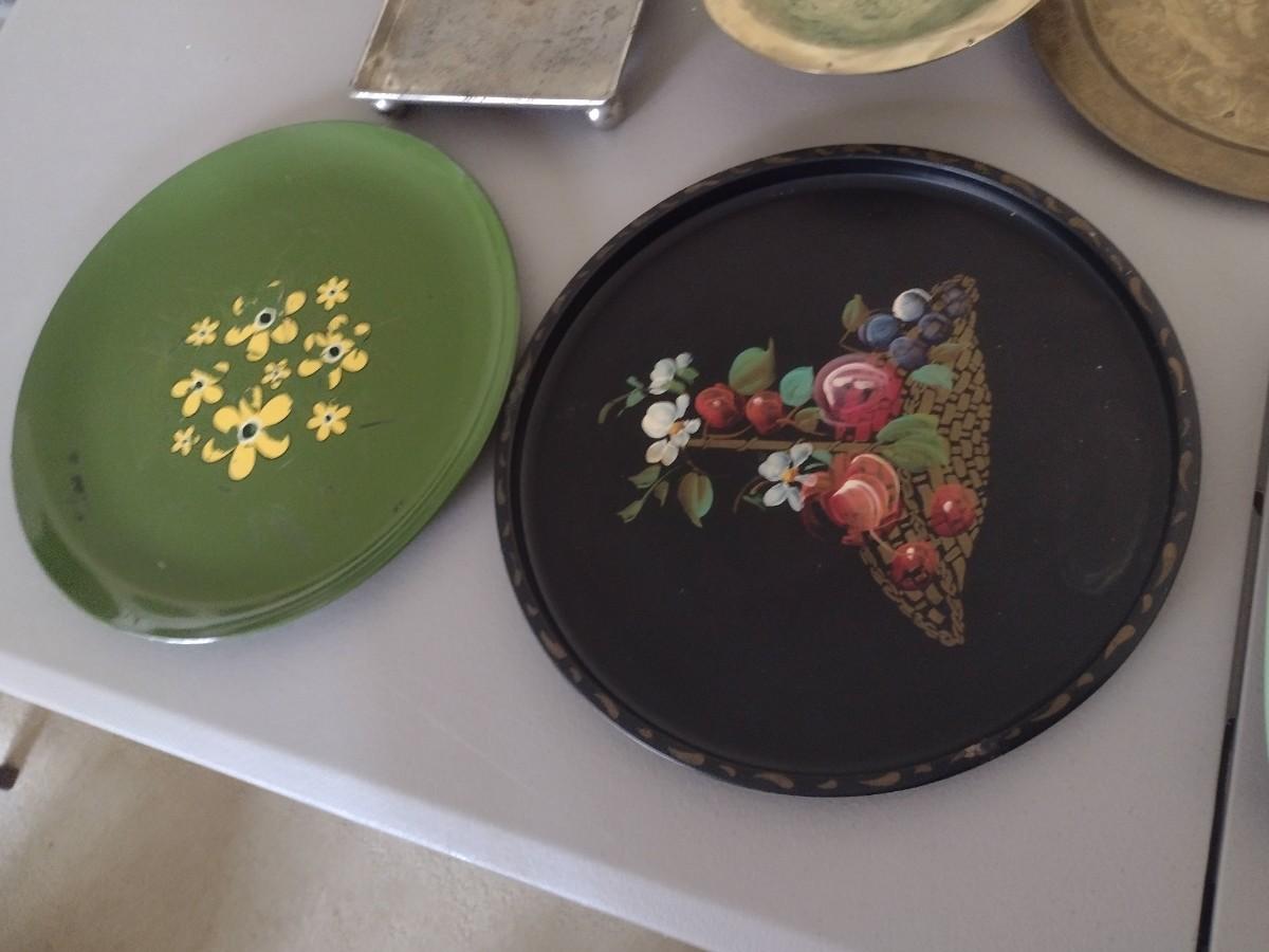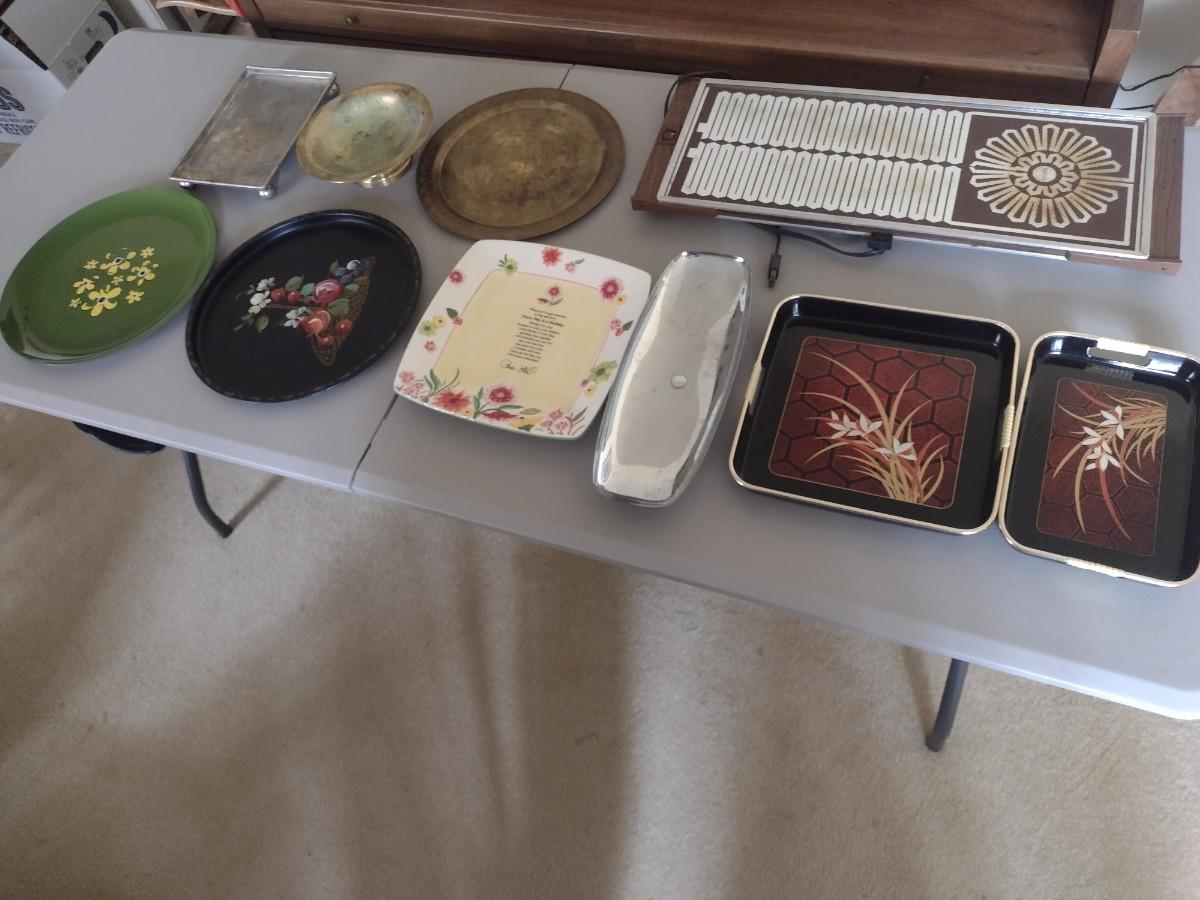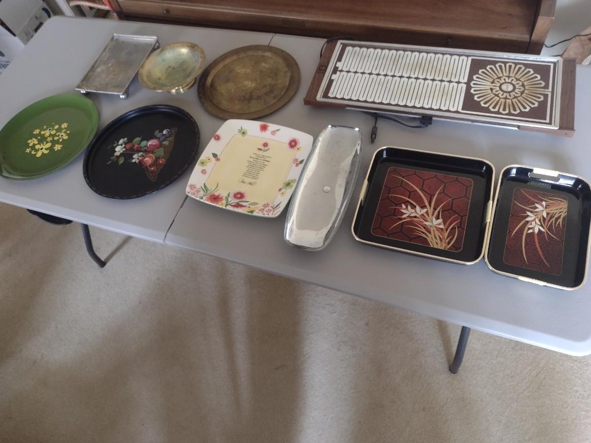 Assortment of Vintage Serving Trays and Platters Metal and Ceramic