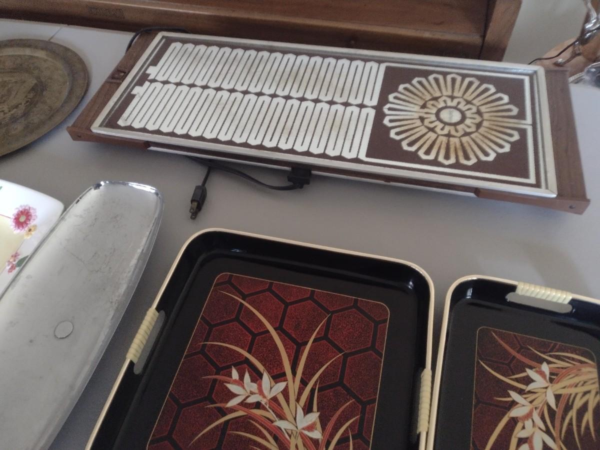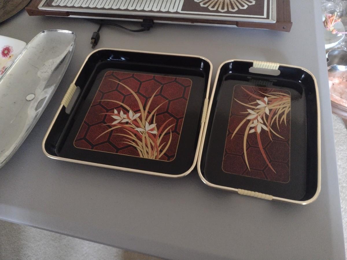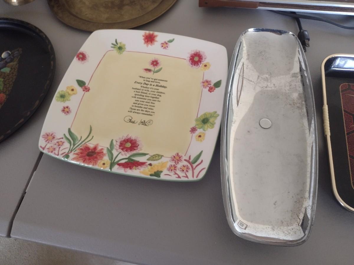 Assortment of Vintage Serving Trays and Platters Metal and Ceramic