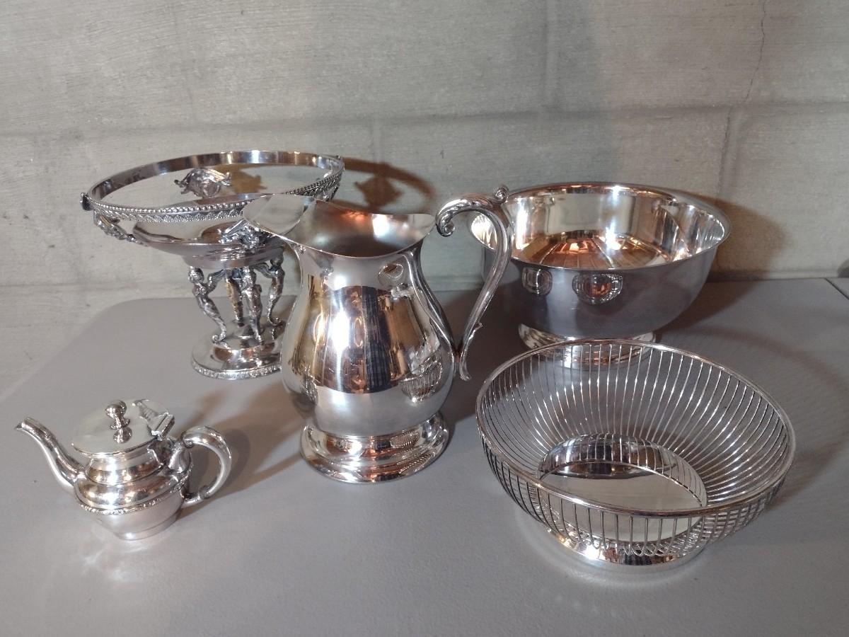 Assortment of Vintage Silver Plate Service Pieces including Impressive Art Deco Bowl Stand