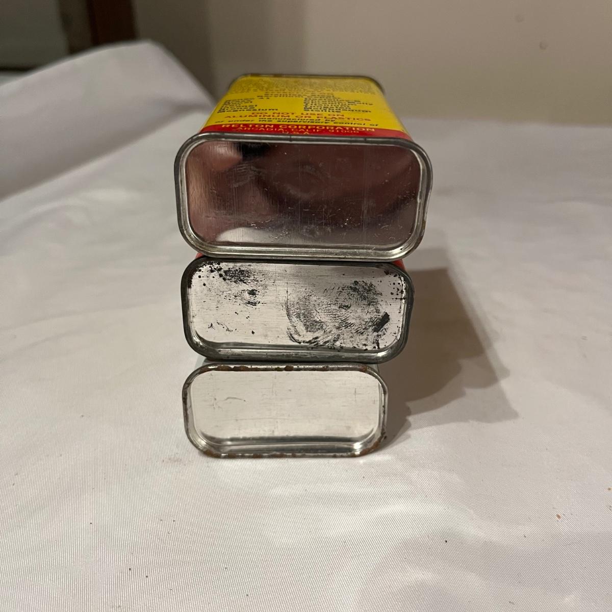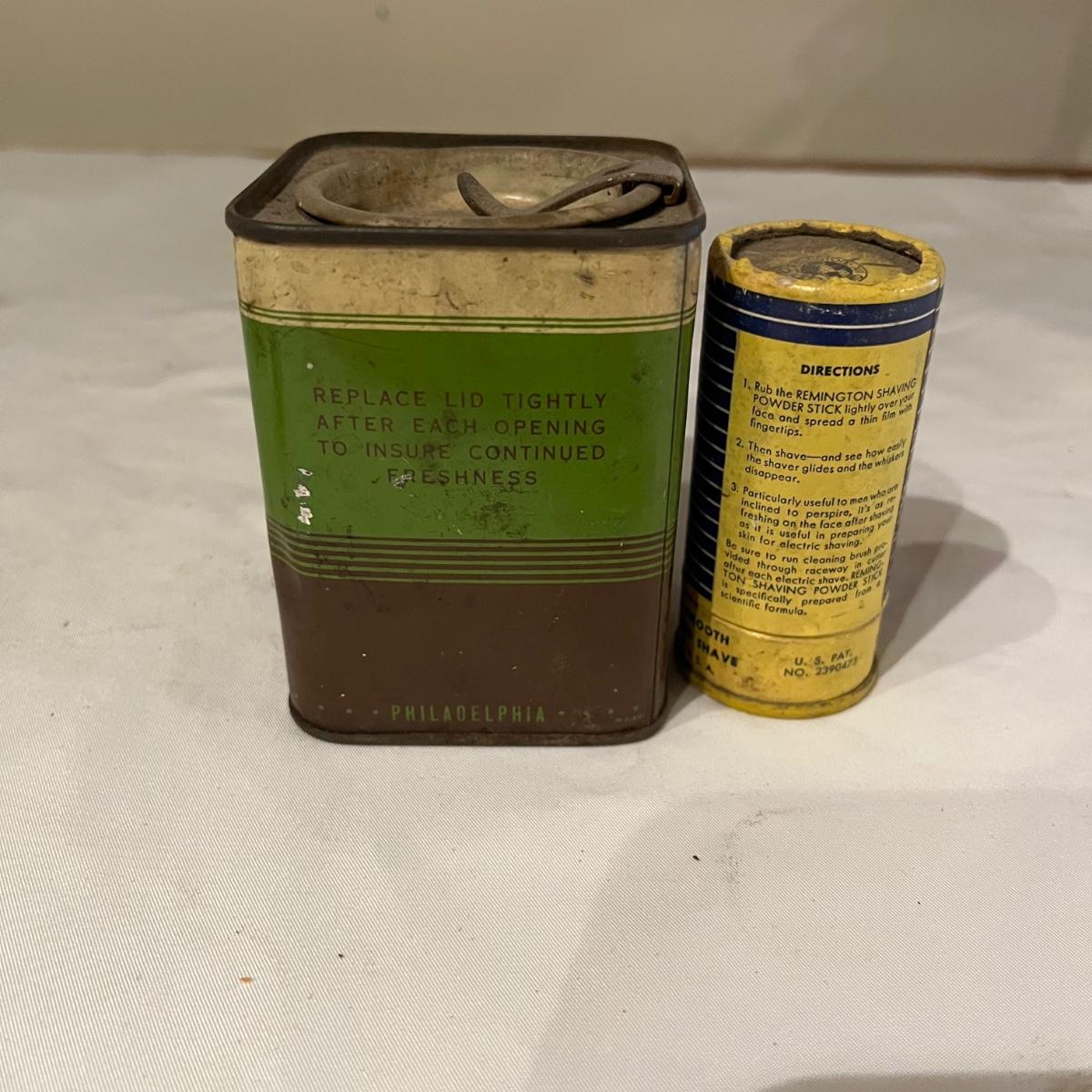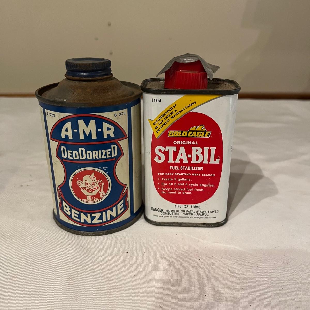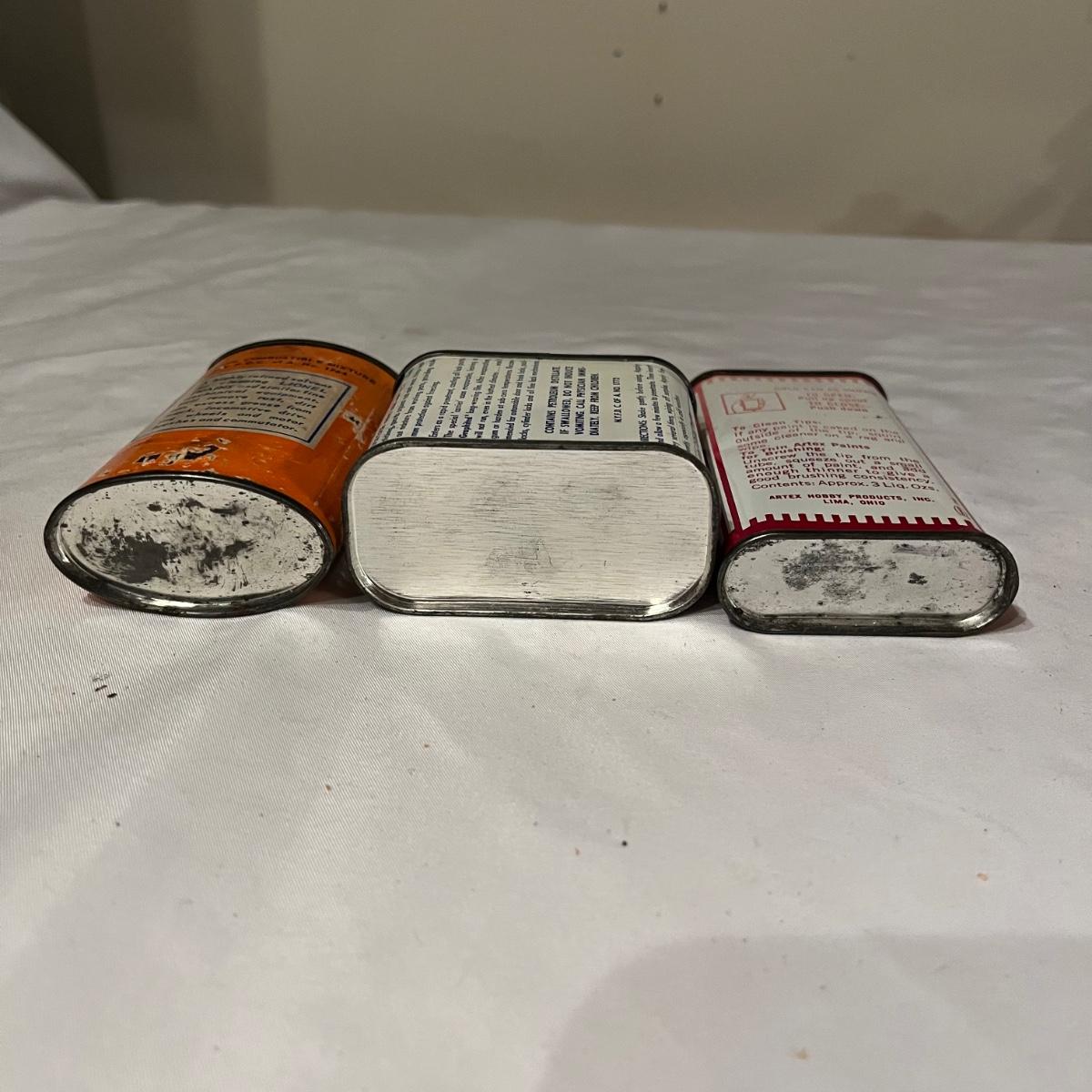 Lot includes Artex tip cleaner tin, Sta-Bil tin, Lock-Ease tin, A-M-R Benzine tin, two Rapid Tap cutting fluid tins, Grizzly faucet washers tin, Panef lock lubricant tin, Lionel cleaner tin, Panef Lock lubricant tin and a Remington shaving stick container.