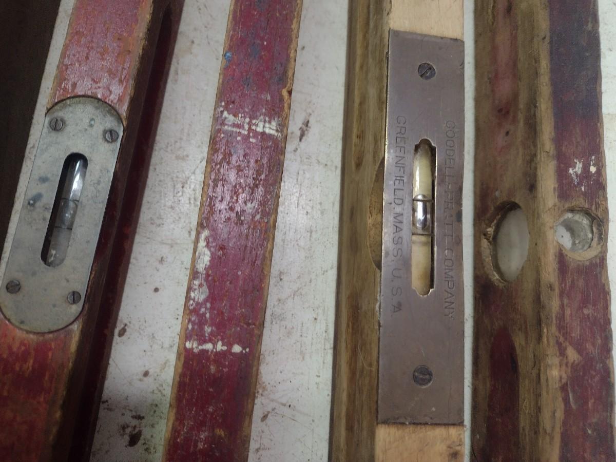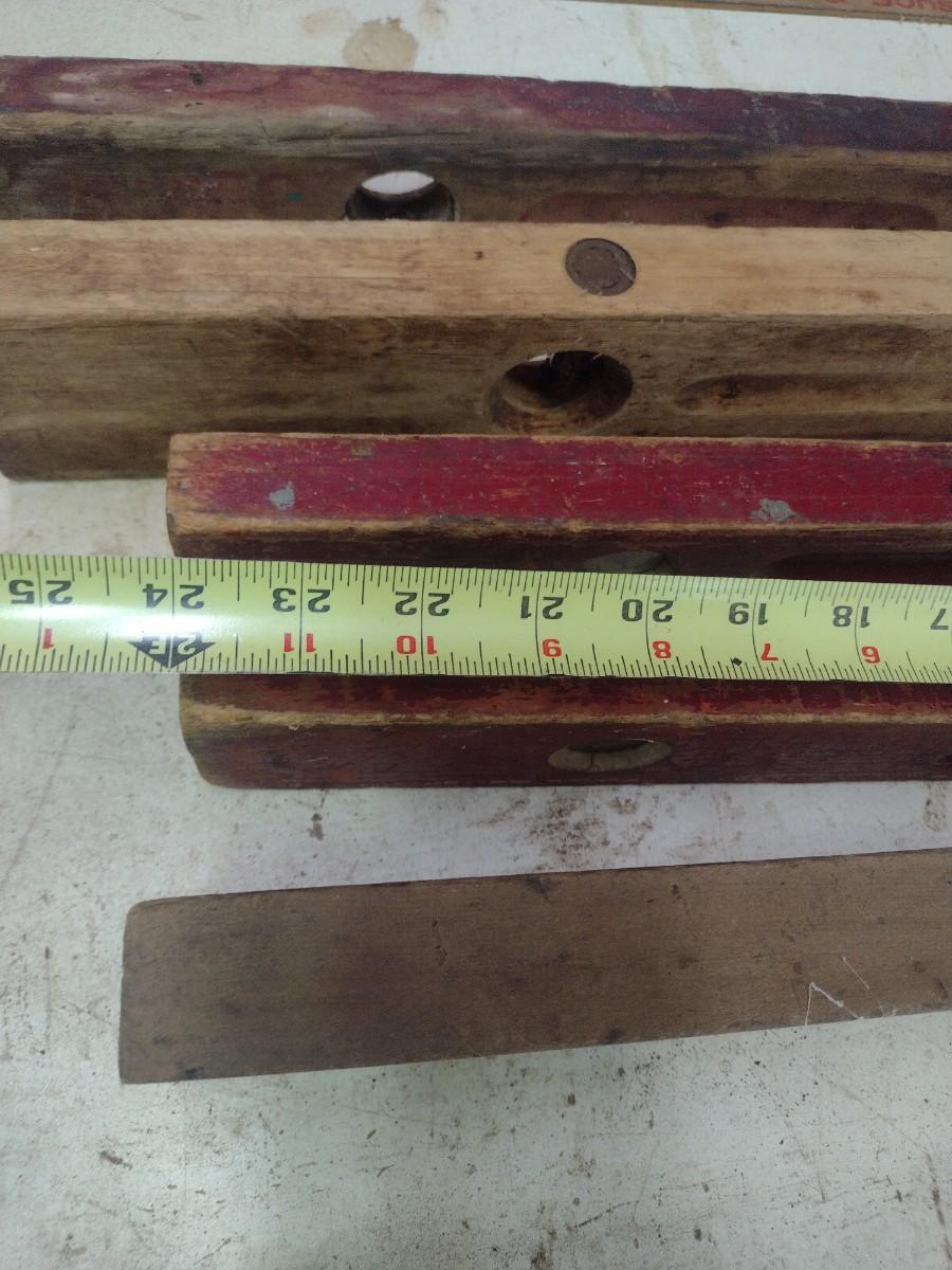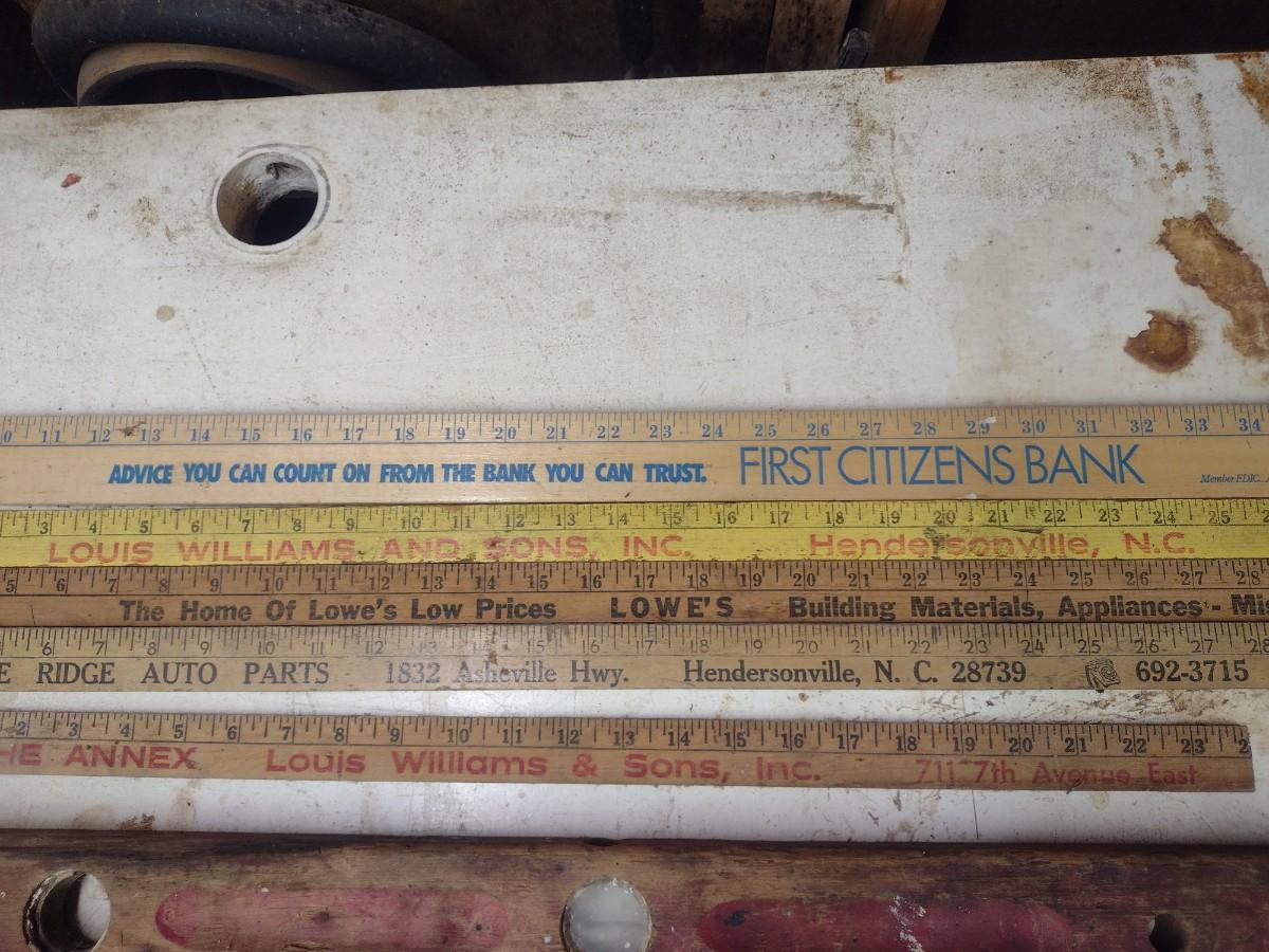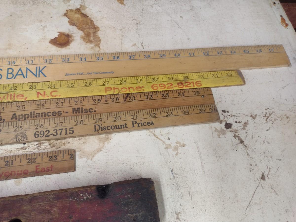 Assortment of Vintage Wood Framed Levels and Advertising Yard Sticks