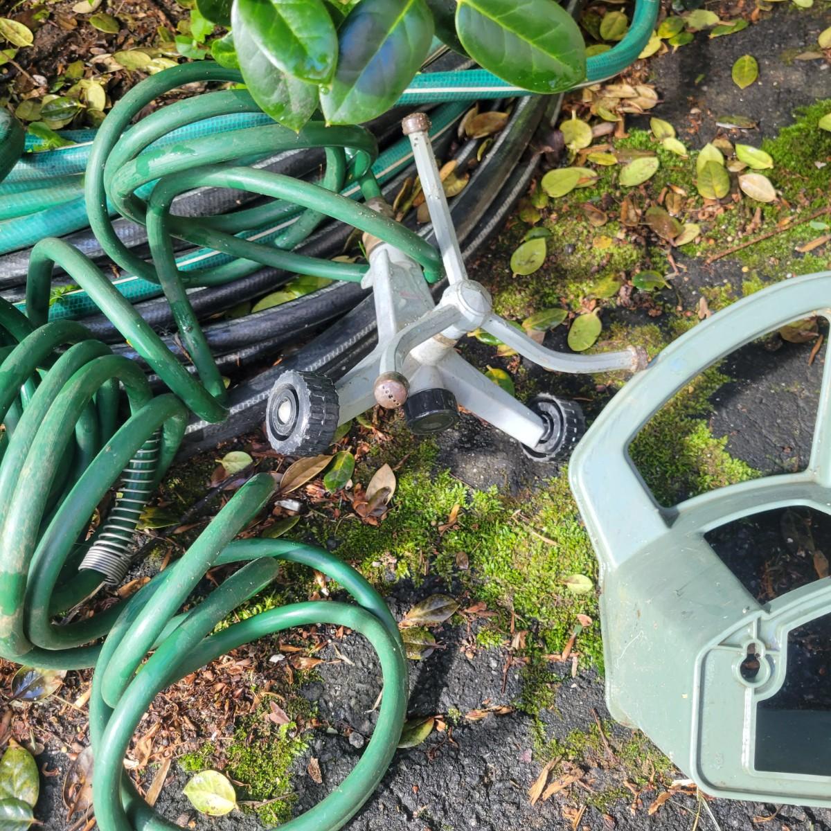 Assortment of Water Hoses, Sprinkler and a Hose Caddy (D-DW)