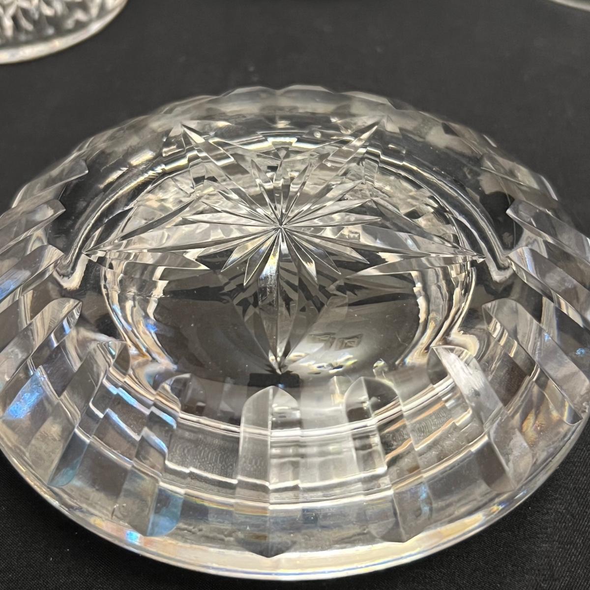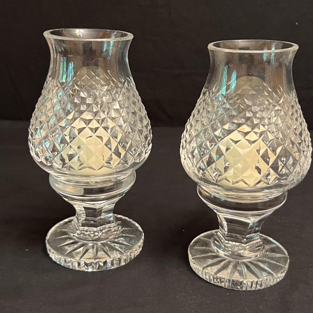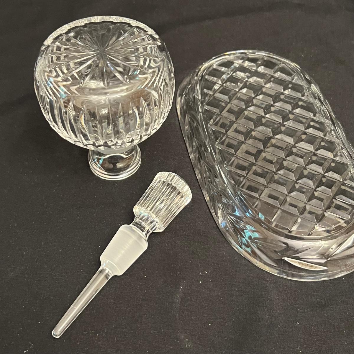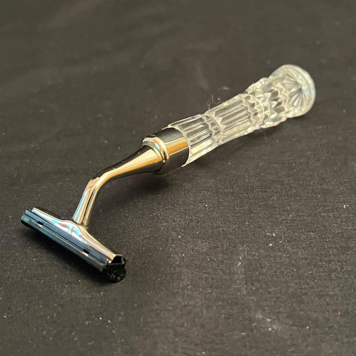 This assortment of approximately 19 pieces of Waterford crystal includes bells, a small clock (not tested). large and small bowls plus more. The razor has a crystal handle. Note that no marking was found on the small bottle with stopper.