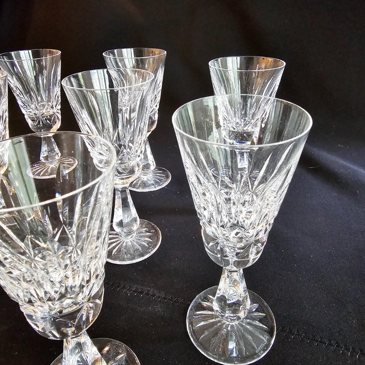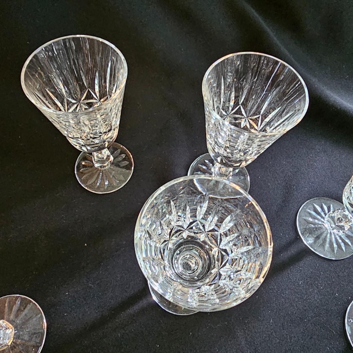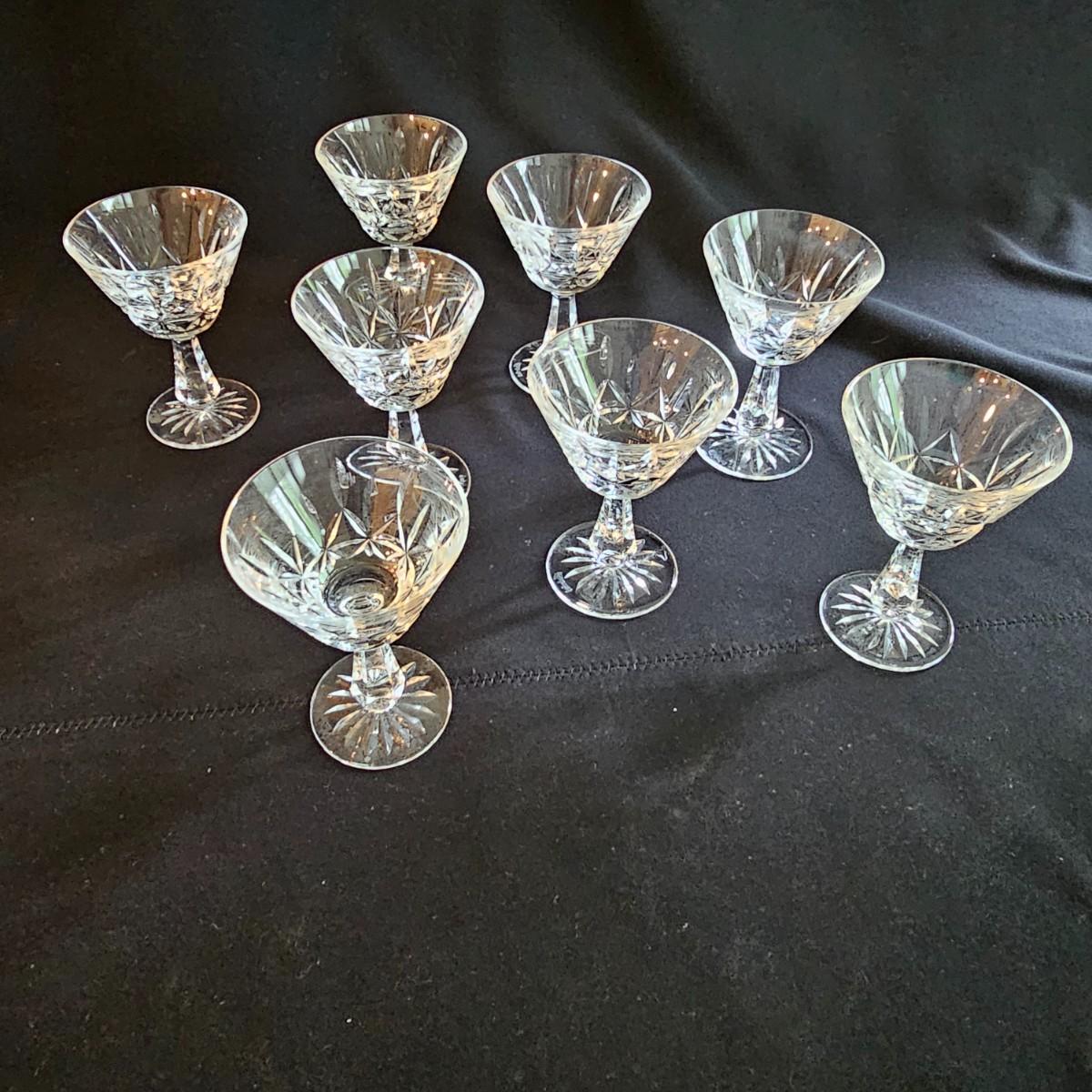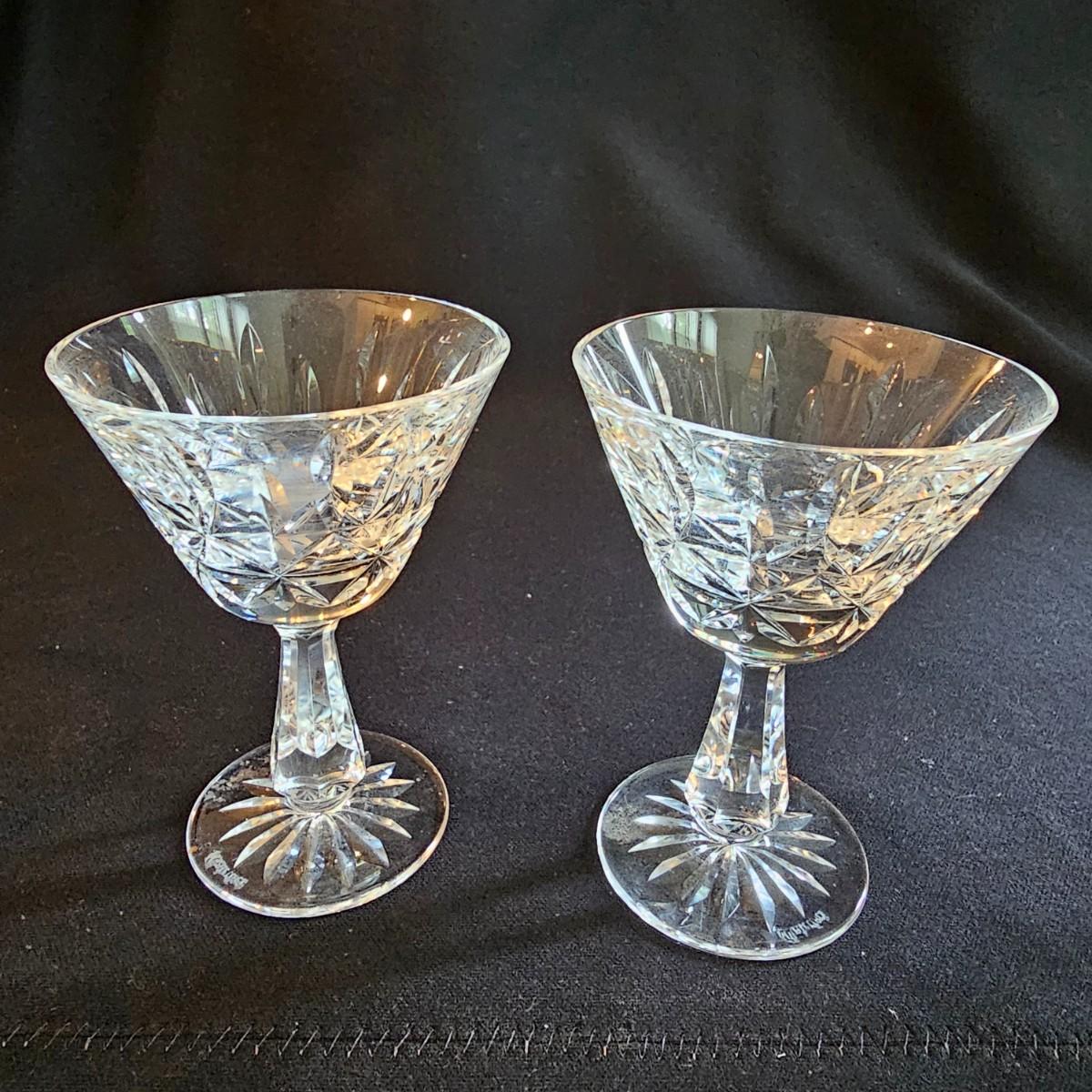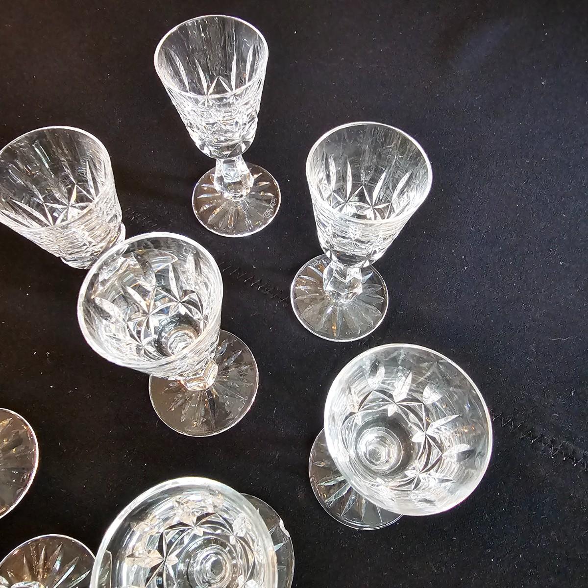 About 50 pieces of crystal stemware by Waterford. Martini, wine, aperitif and more styles. Largest martini glass measures 4.5"D x 6"H. Small aperitif is 1.5"D x 4"H. Two small bowls at end of photos we were unable to find brand markings but may still be Waterford. Known chips are noted in photos. See photos for details. Local pickup only.
