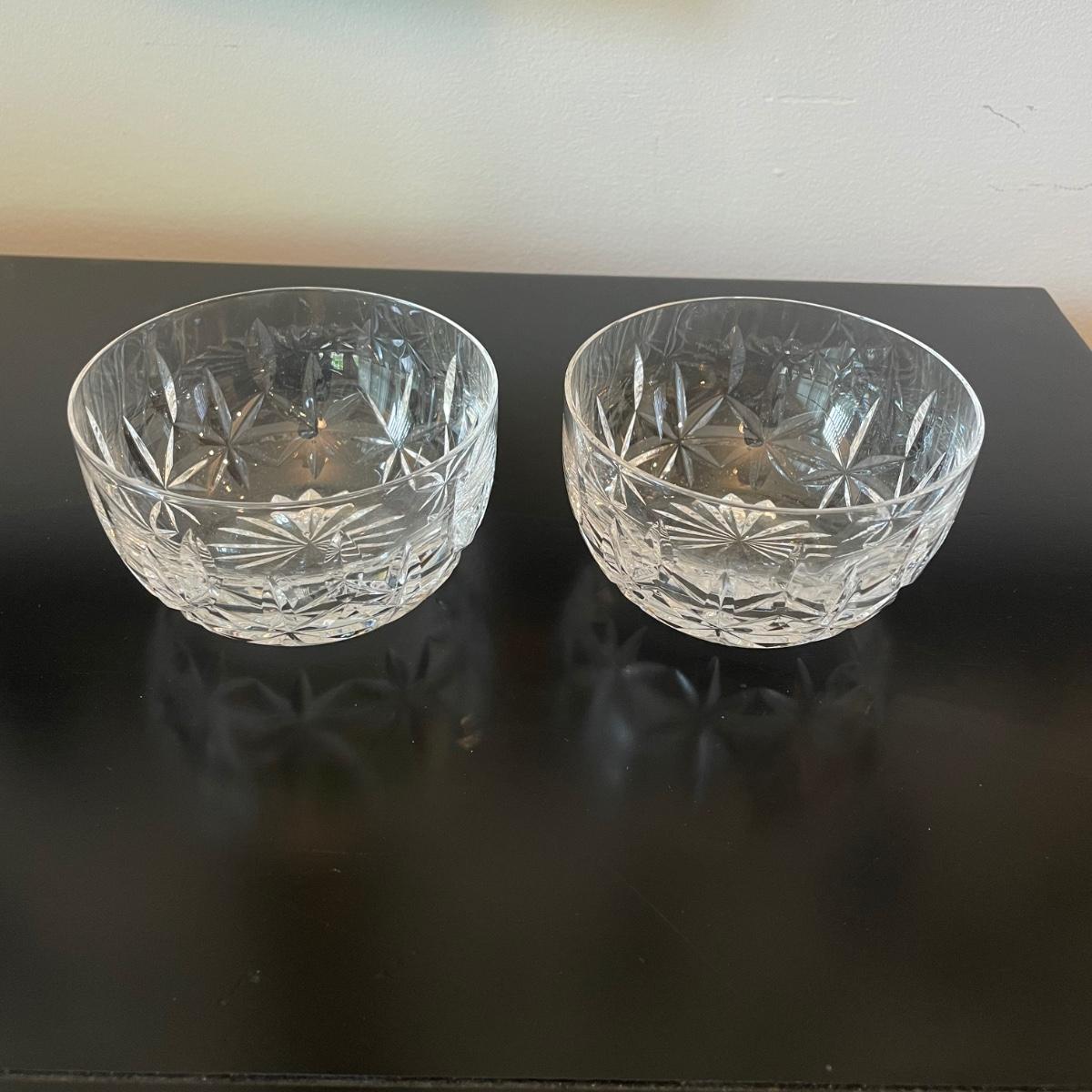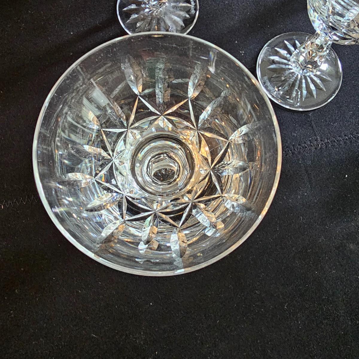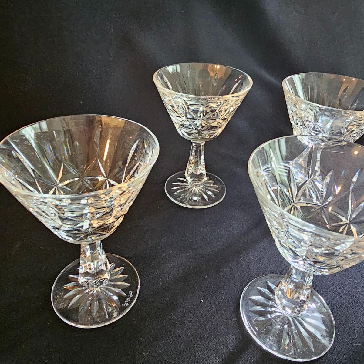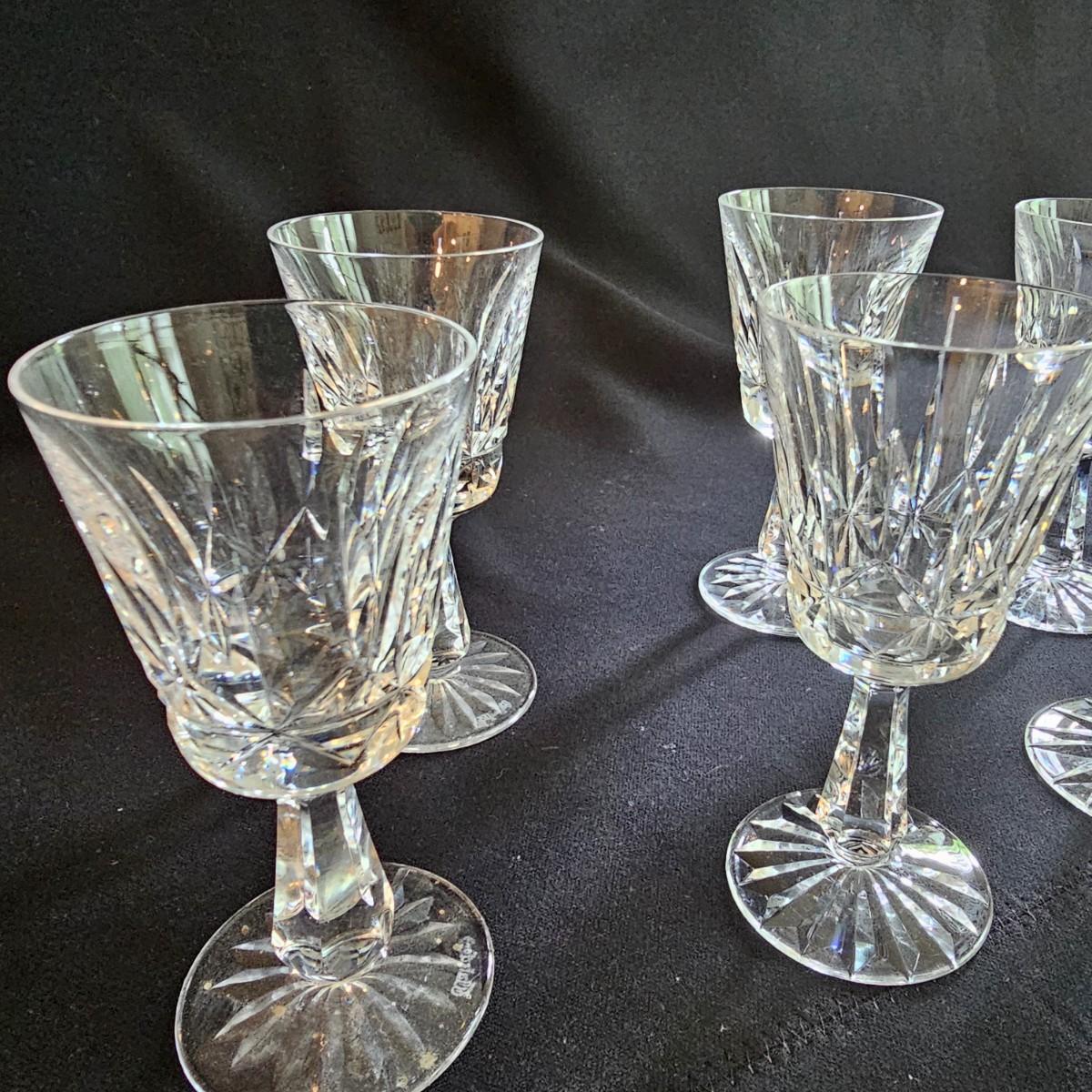 About 50 pieces of crystal stemware by Waterford. Martini, wine, aperitif and more styles. Largest martini glass measures 4.5"D x 6"H. Small aperitif is 1.5"D x 4"H. Two small bowls at end of photos we were unable to find brand markings but may still be Waterford. Known chips are noted in photos. See photos for details. Local pickup only.