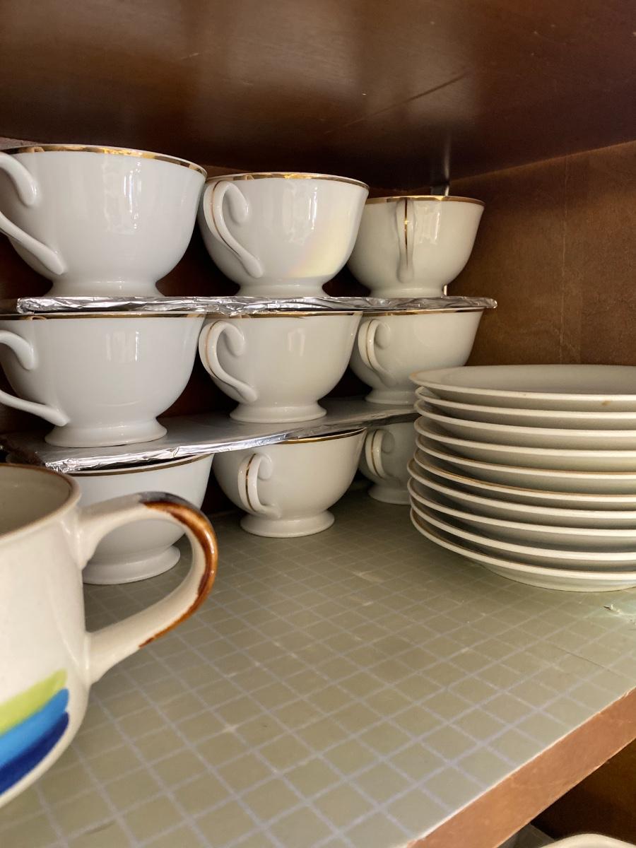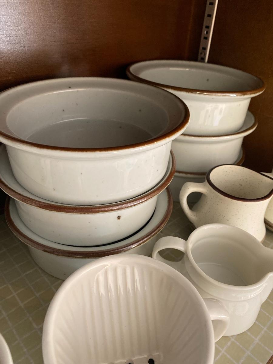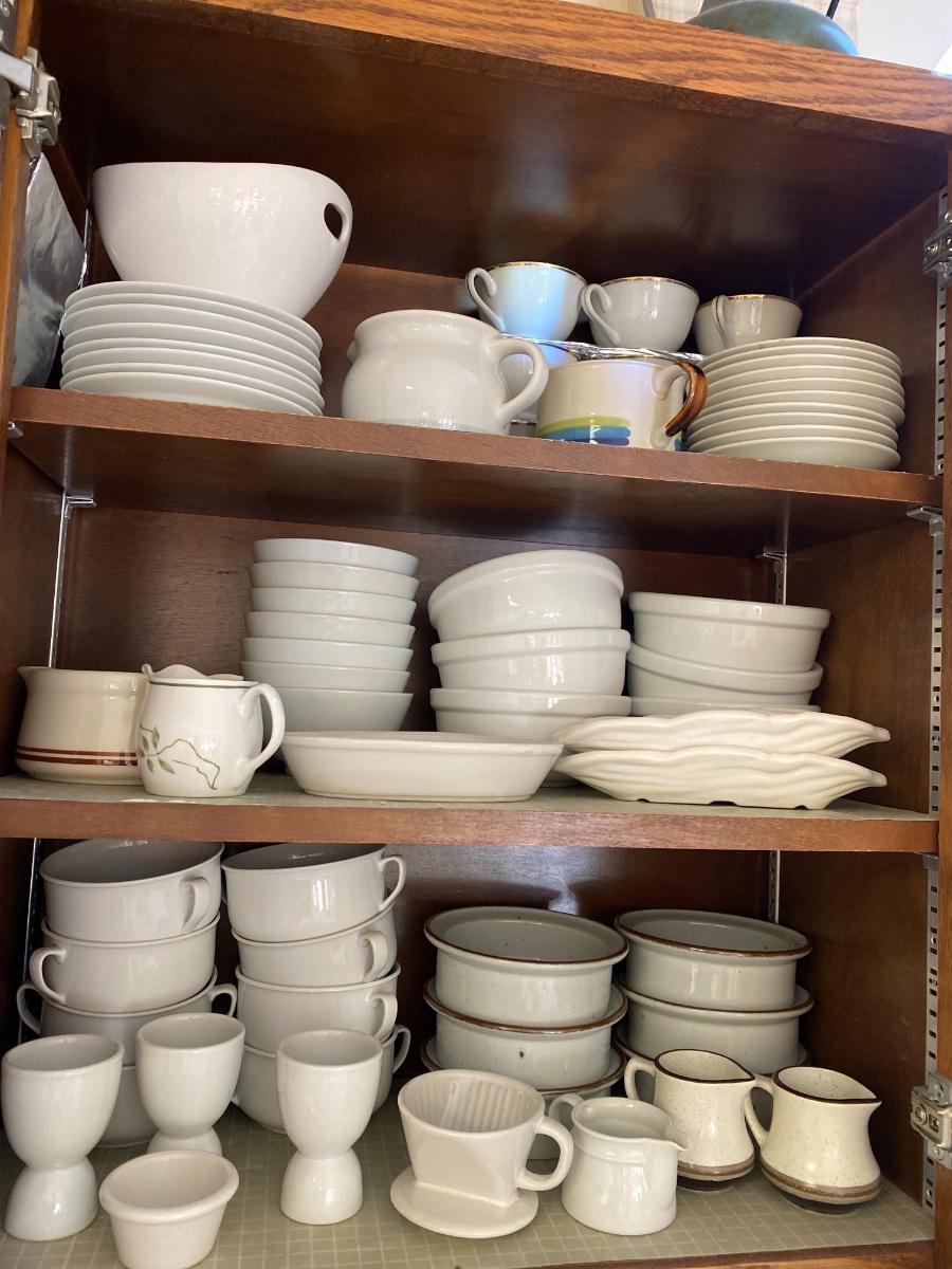 Including Pfaltzgraff, DANSK, small coffee cups with saucers, and more. See all photos. As is. In two cabinets in kitchen.