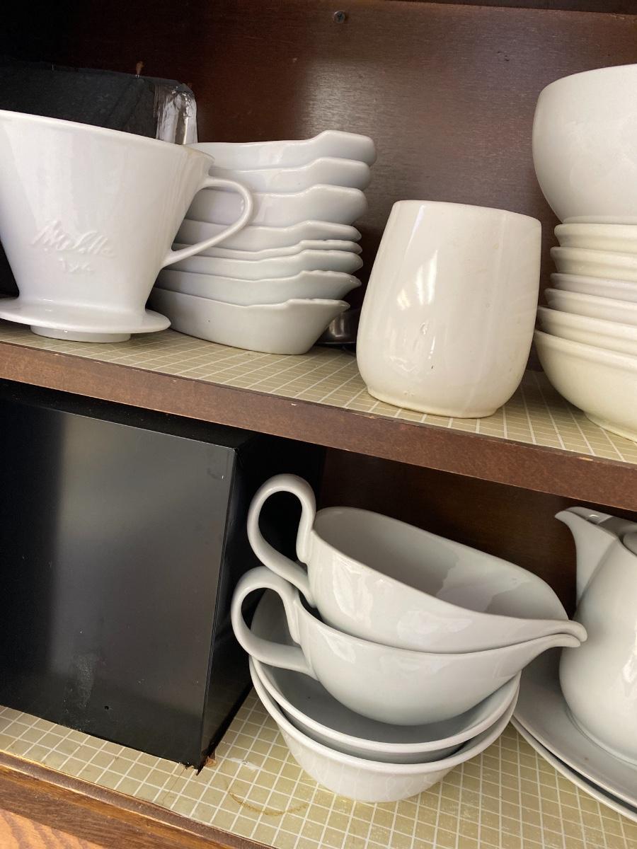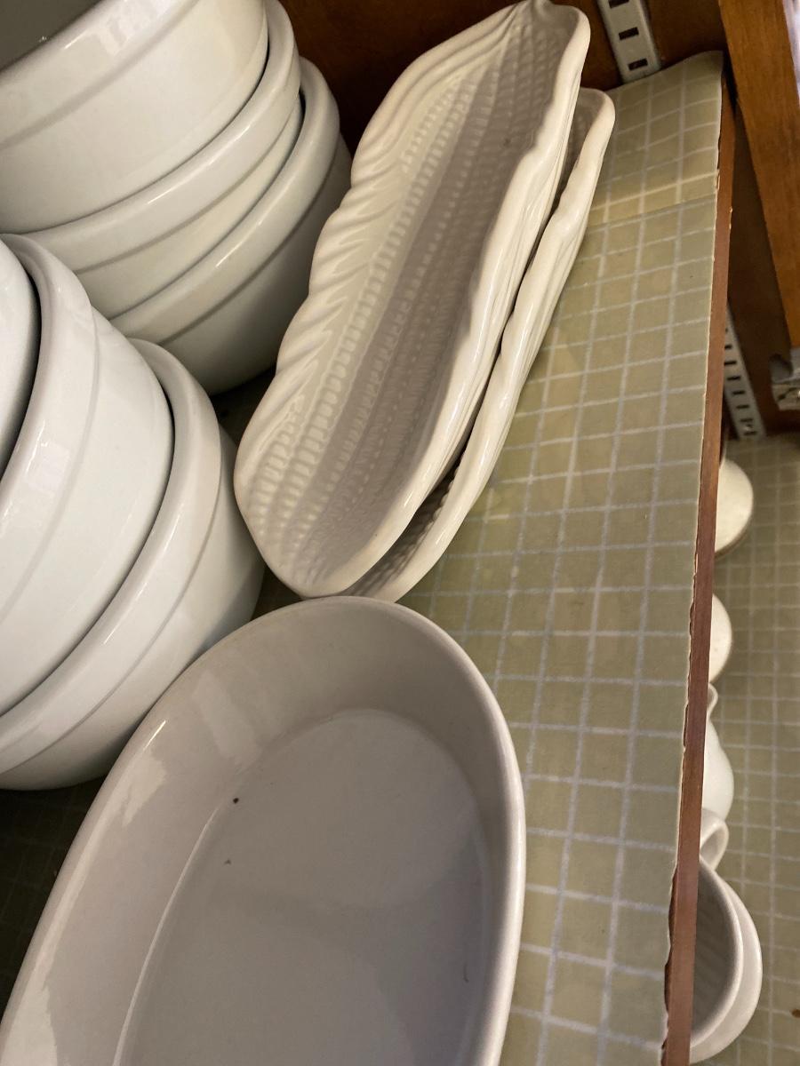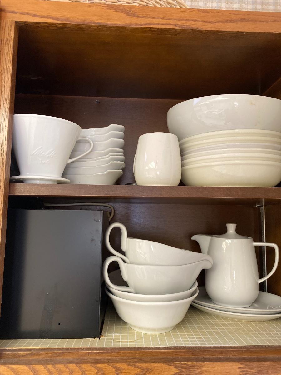 Including Pfaltzgraff, DANSK, small coffee cups with saucers, and more. See all photos. As is. In two cabinets in kitchen.