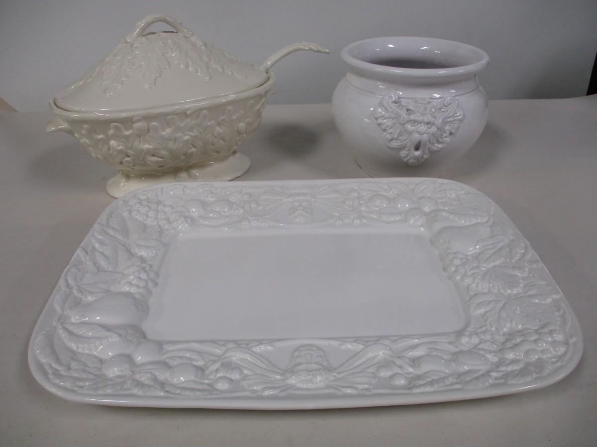 Assortment Of White China Tureen Platter & Vase