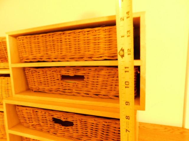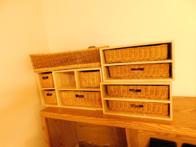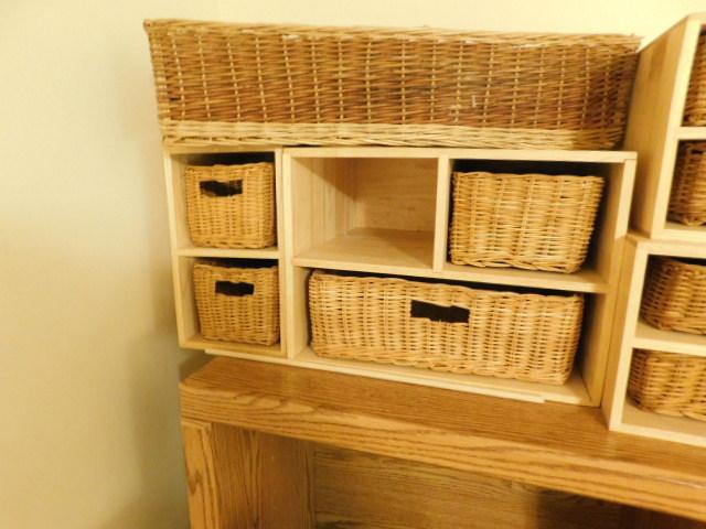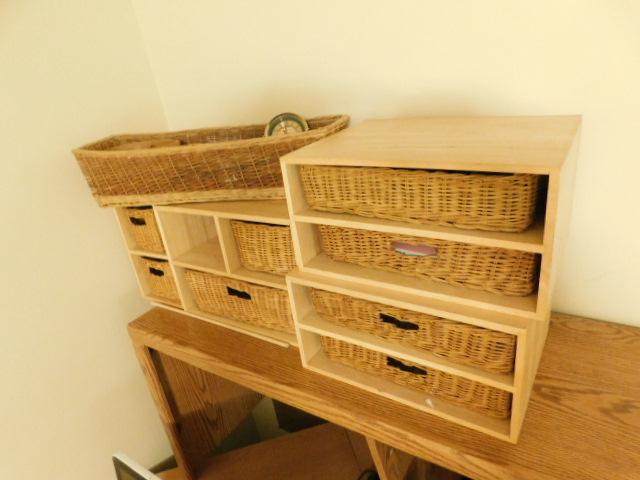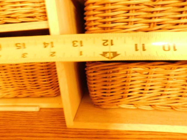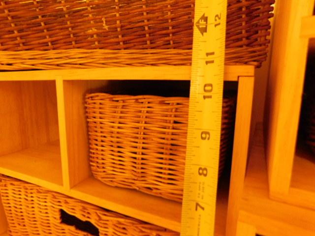 Assortment of Wicker Weave Storage Baskets in Wood Dividers Various Sizes