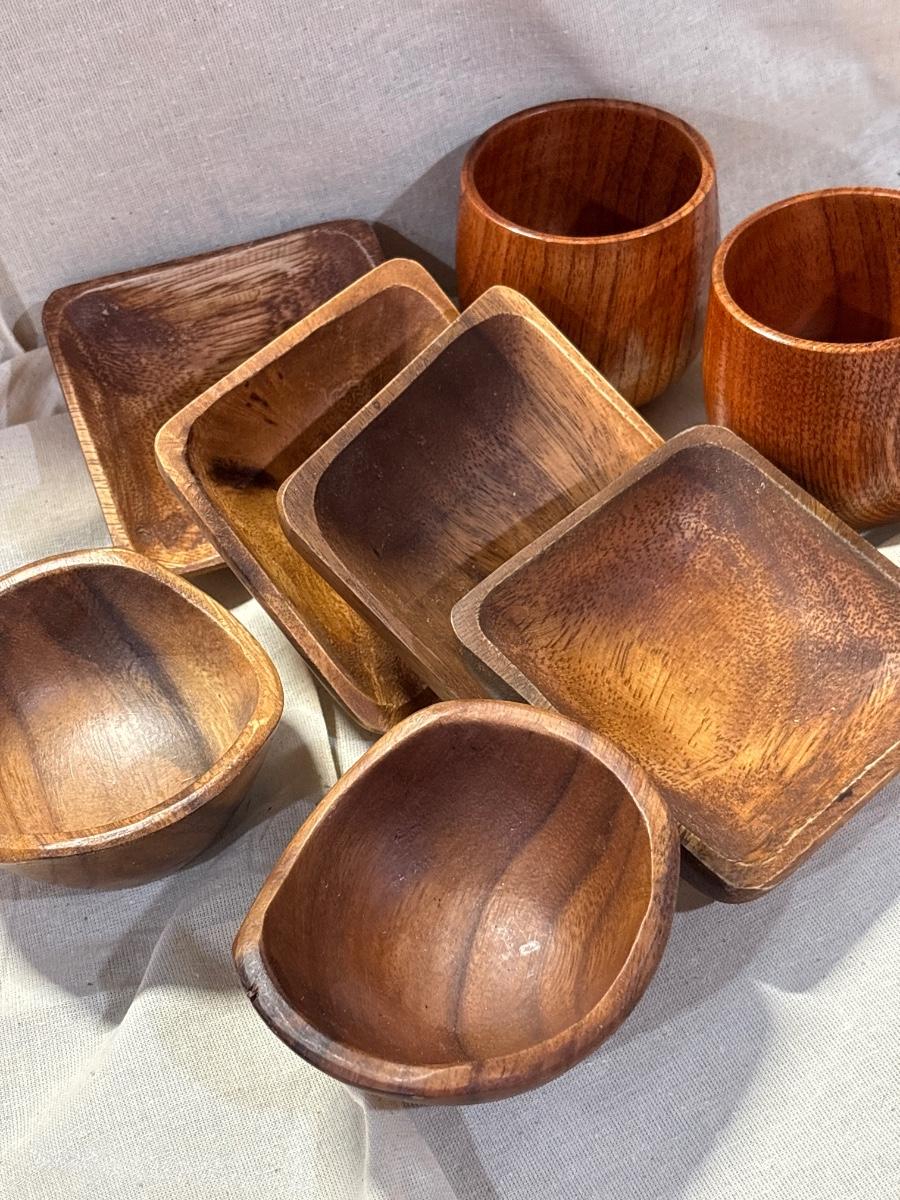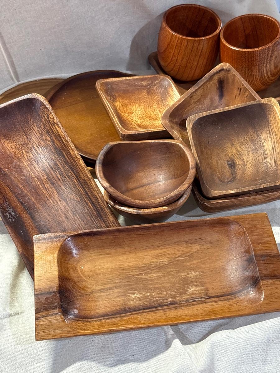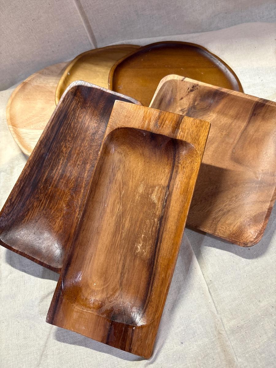 Plates, trays, wines, appetizers bowls. Fourteen great wood serving pieces!