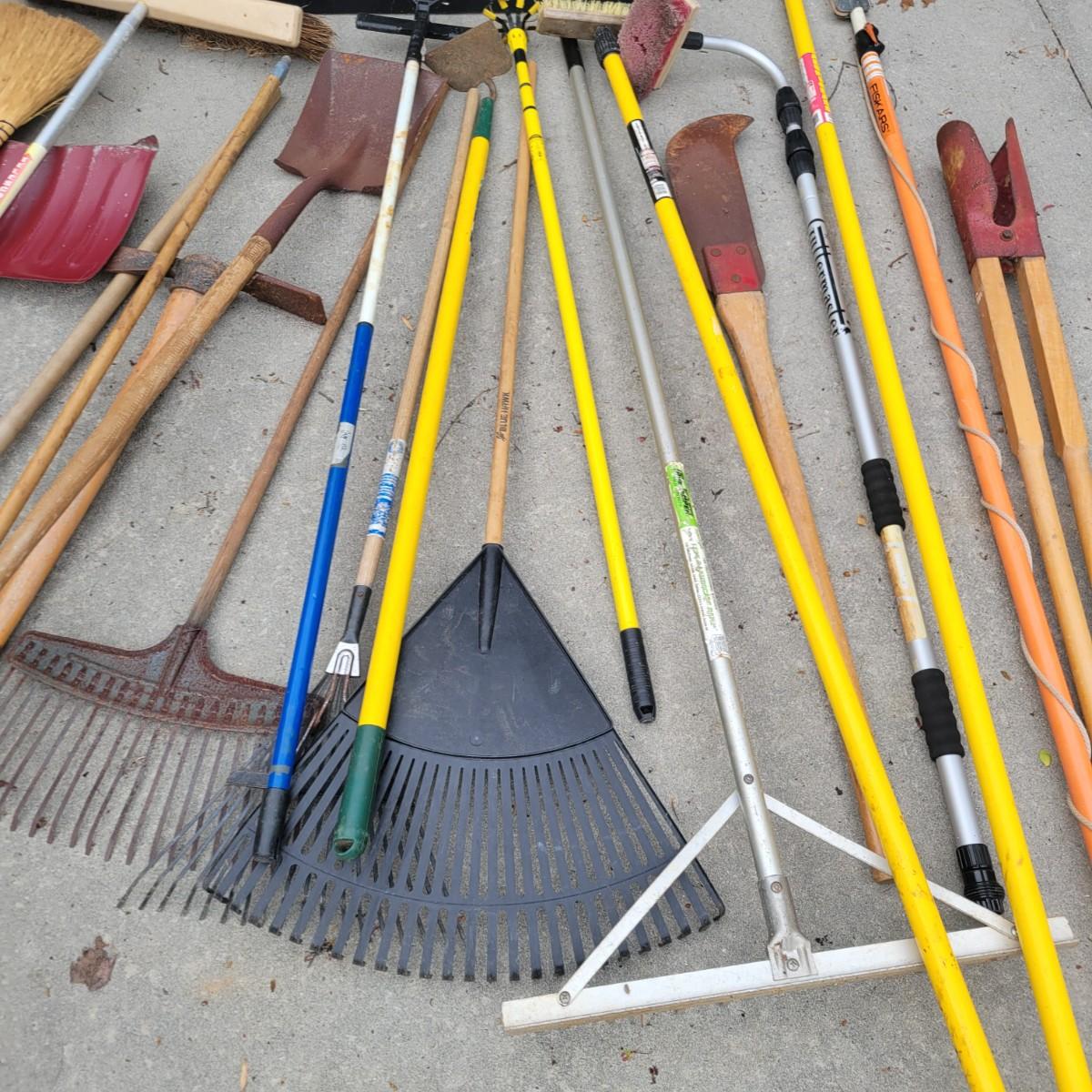Assortment of Yard Tools and a Tool Caddy (G-DW)