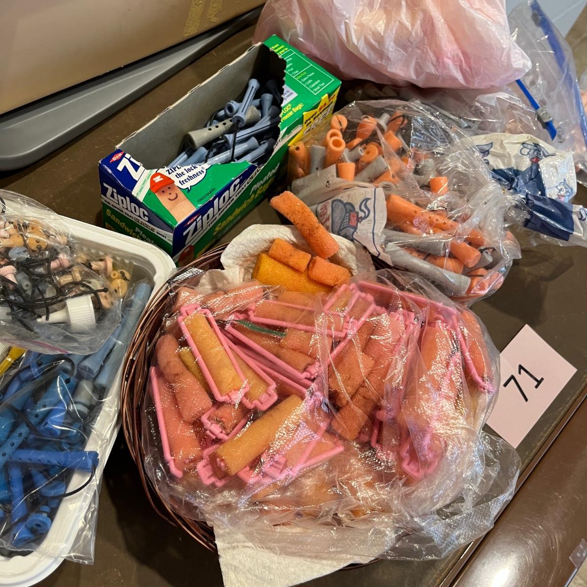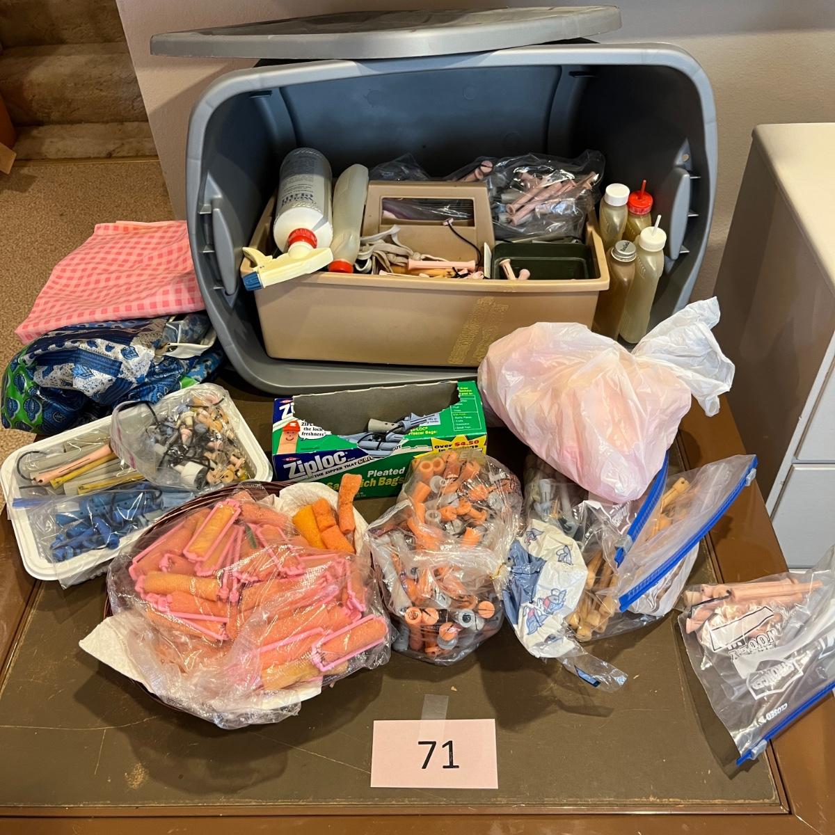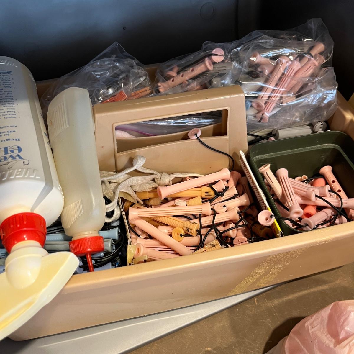 Tub of Assortment of.beauty shop supplies