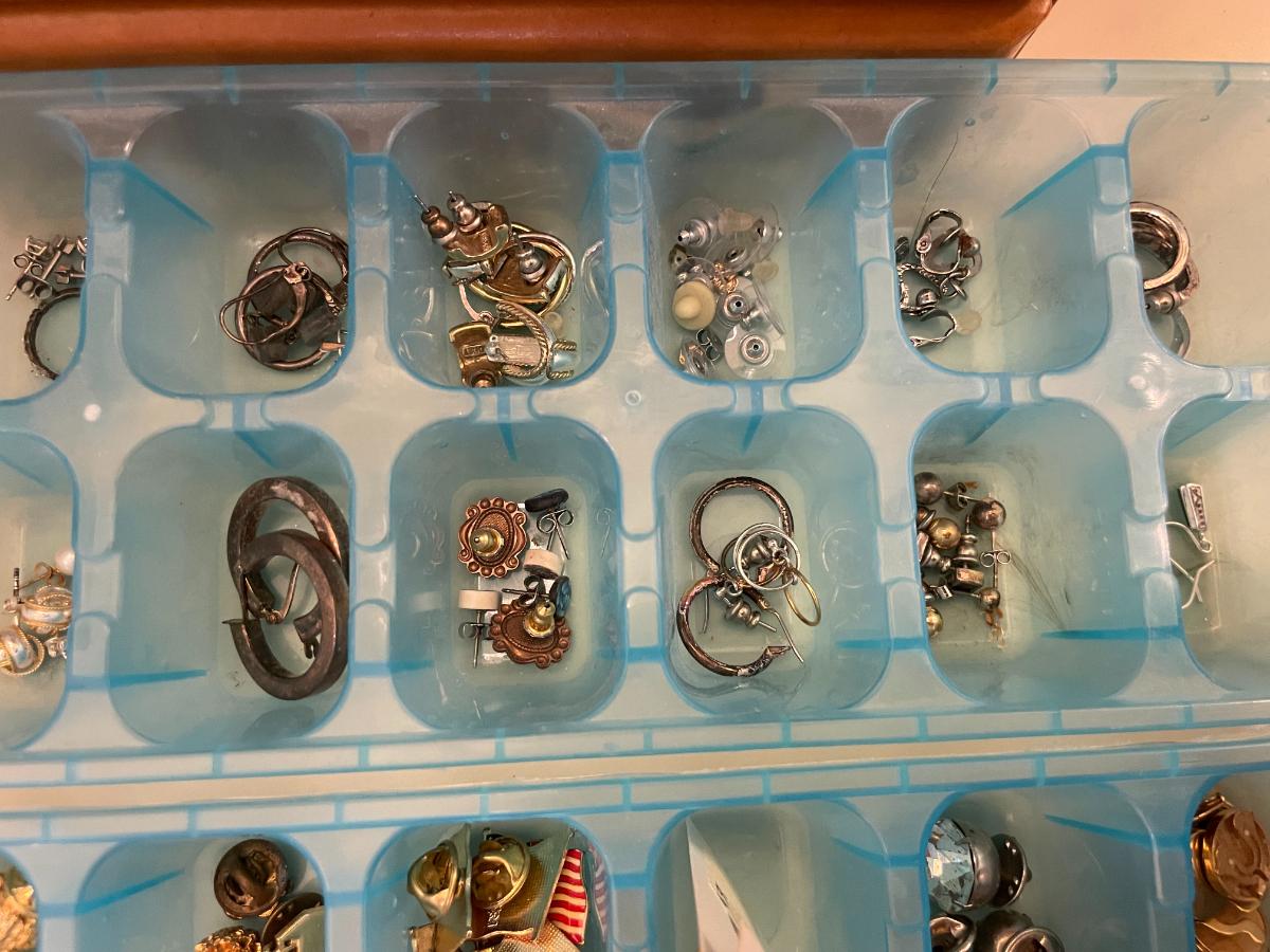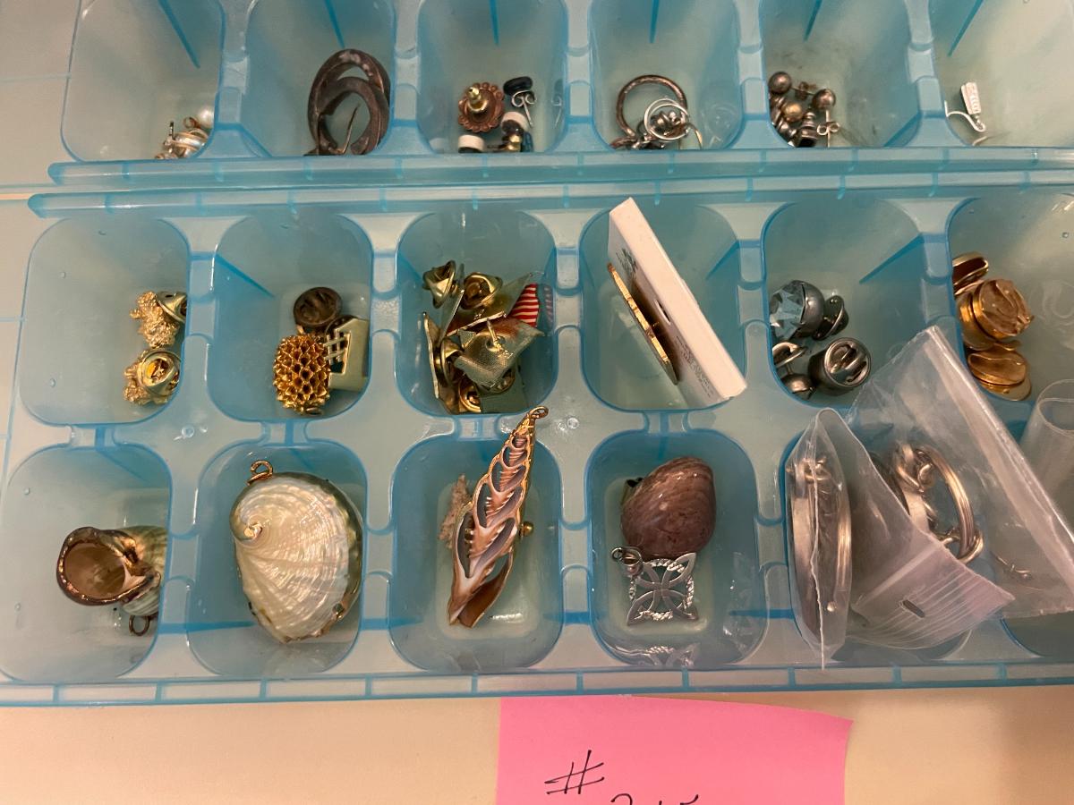 2 Ice Trays filled with costume jewelry - pins, earring and pendants