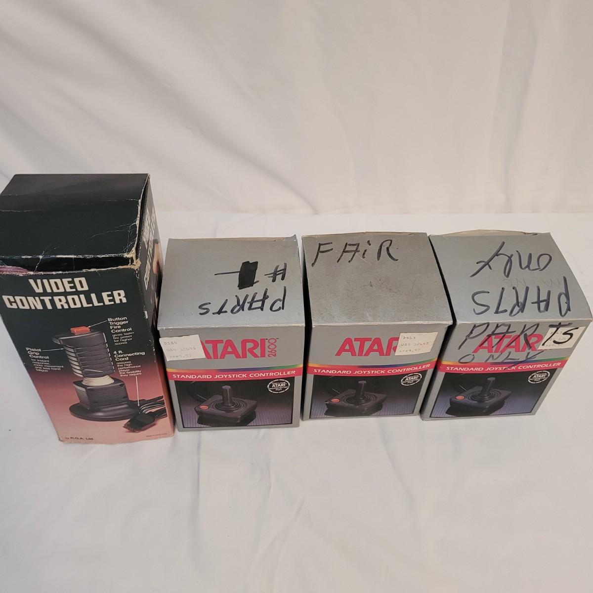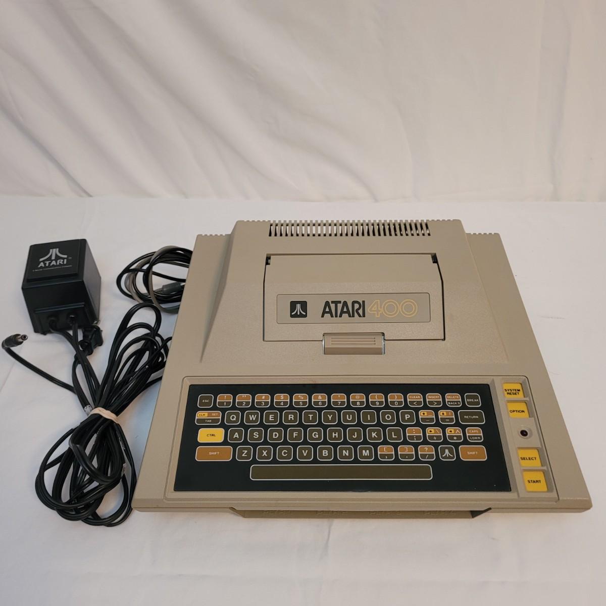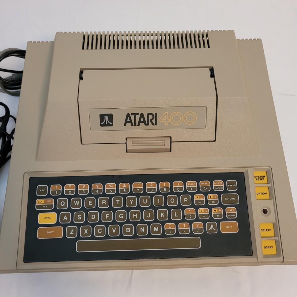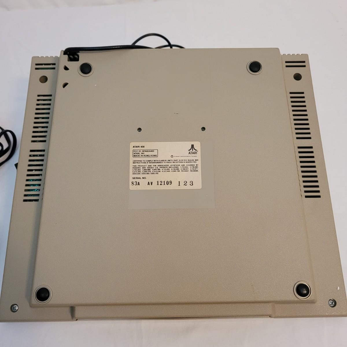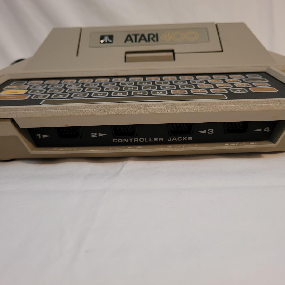 This lot includes an Atari 2600 system, an Atari 400 system, game cartridges, joysticks, controllers, and cables. Both Atari systems powered on when plugged in but were not hooked up to a TV to be tested. Individual game cartridges and controllers have not been fully tested. There are two joysticks and two paddles with the 2600 system, with two backup joysticks for parts. There is also a pistol grip game controller for use with the 2600. Game cartridges for the 2600 include "Seaquest", "River Raid", "Demon Attack", "Combat", "Pitfall", "Frogger", "Pole Position", "Street Racer", "Starmaster", and "Space Attack". Cartridges for the 400 include "Centipede ", "Pole Position", and "River Raid".