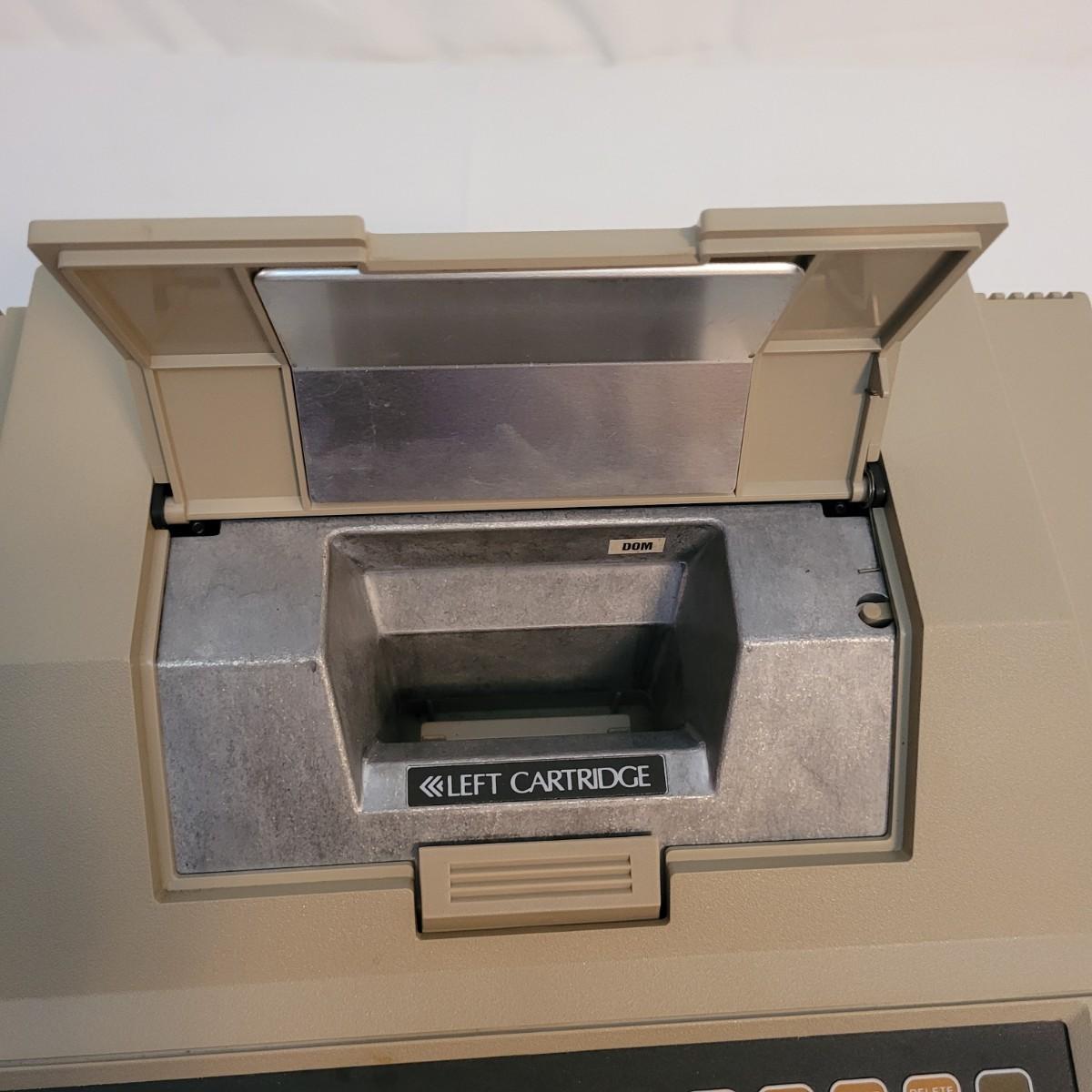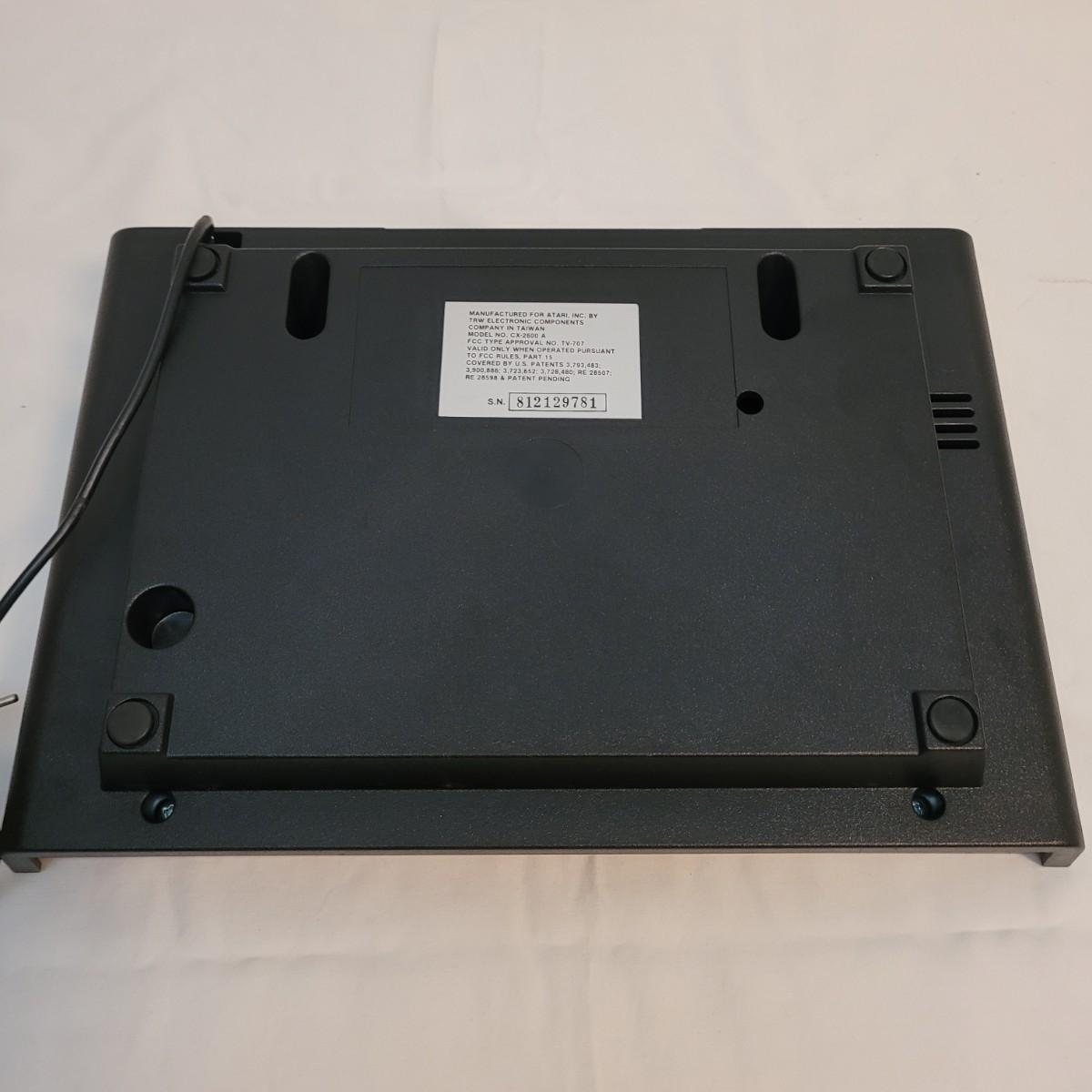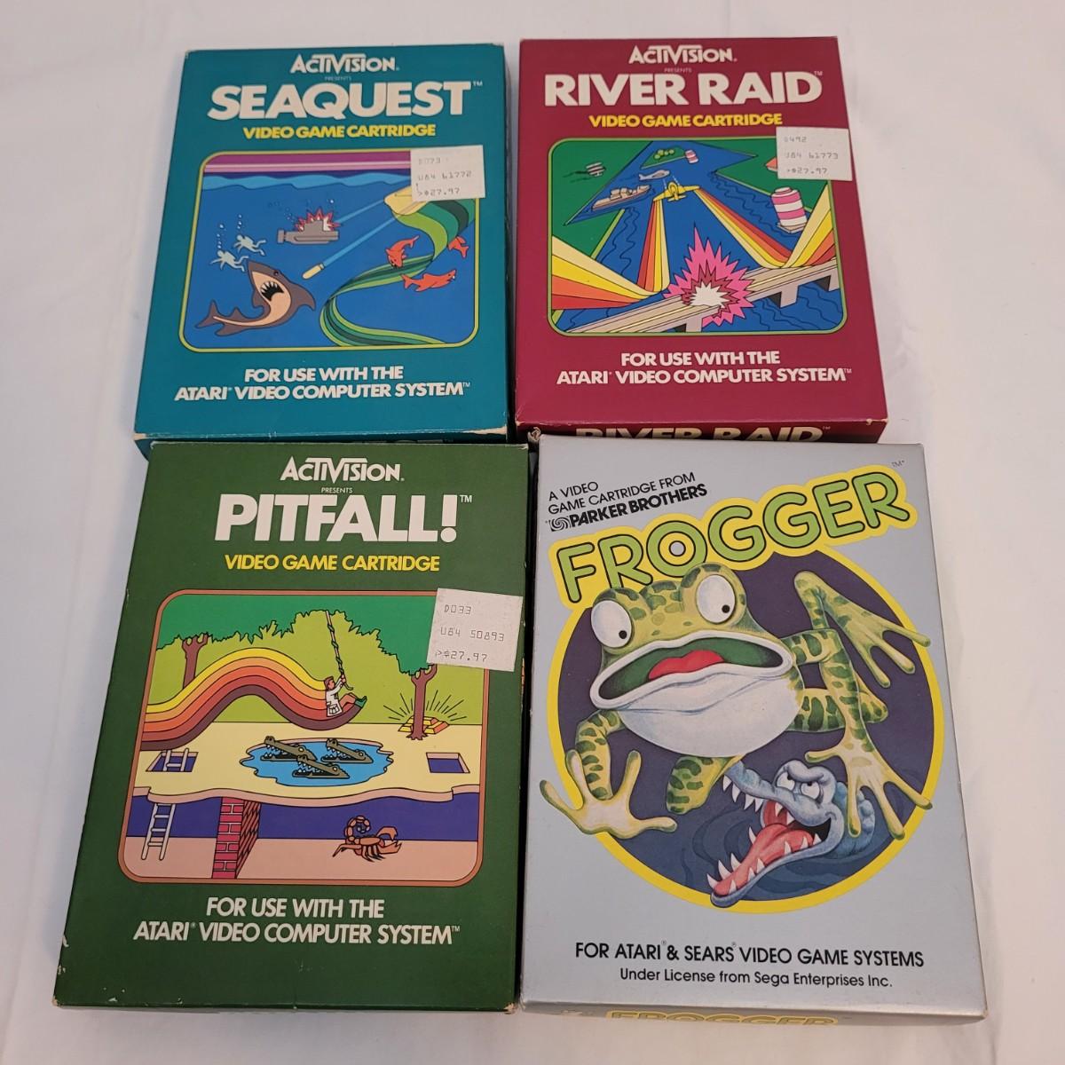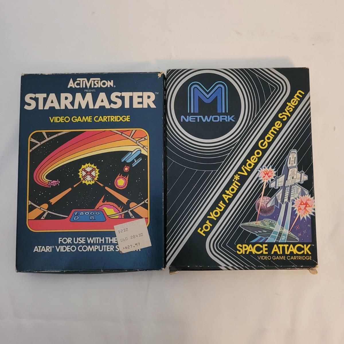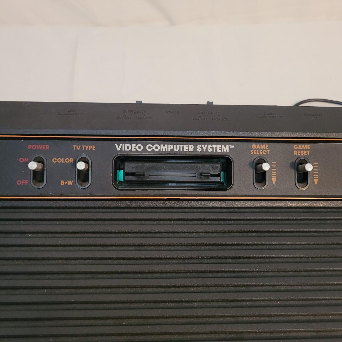 This lot includes an Atari 2600 system, an Atari 400 system, game cartridges, joysticks, controllers, and cables. Both Atari systems powered on when plugged in but were not hooked up to a TV to be tested. Individual game cartridges and controllers have not been fully tested. There are two joysticks and two paddles with the 2600 system, with two backup joysticks for parts. There is also a pistol grip game controller for use with the 2600. Game cartridges for the 2600 include "Seaquest", "River Raid", "Demon Attack", "Combat", "Pitfall", "Frogger", "Pole Position", "Street Racer", "Starmaster", and "Space Attack". Cartridges for the 400 include "Centipede ", "Pole Position", and "River Raid".