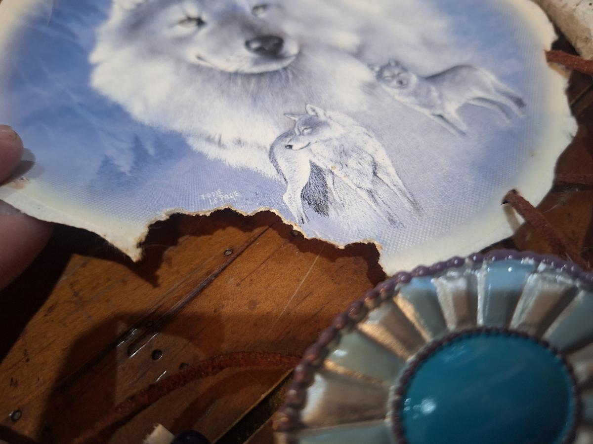 Native American-inspired wolf dreamcatcher, from The Bradford Exchange. Has some damage