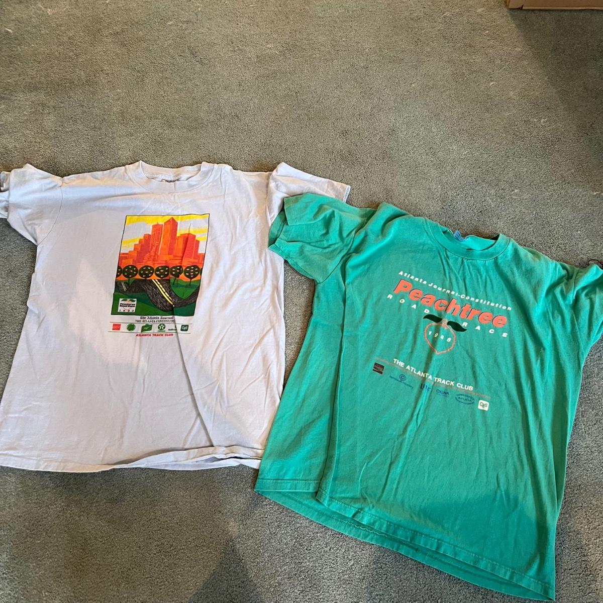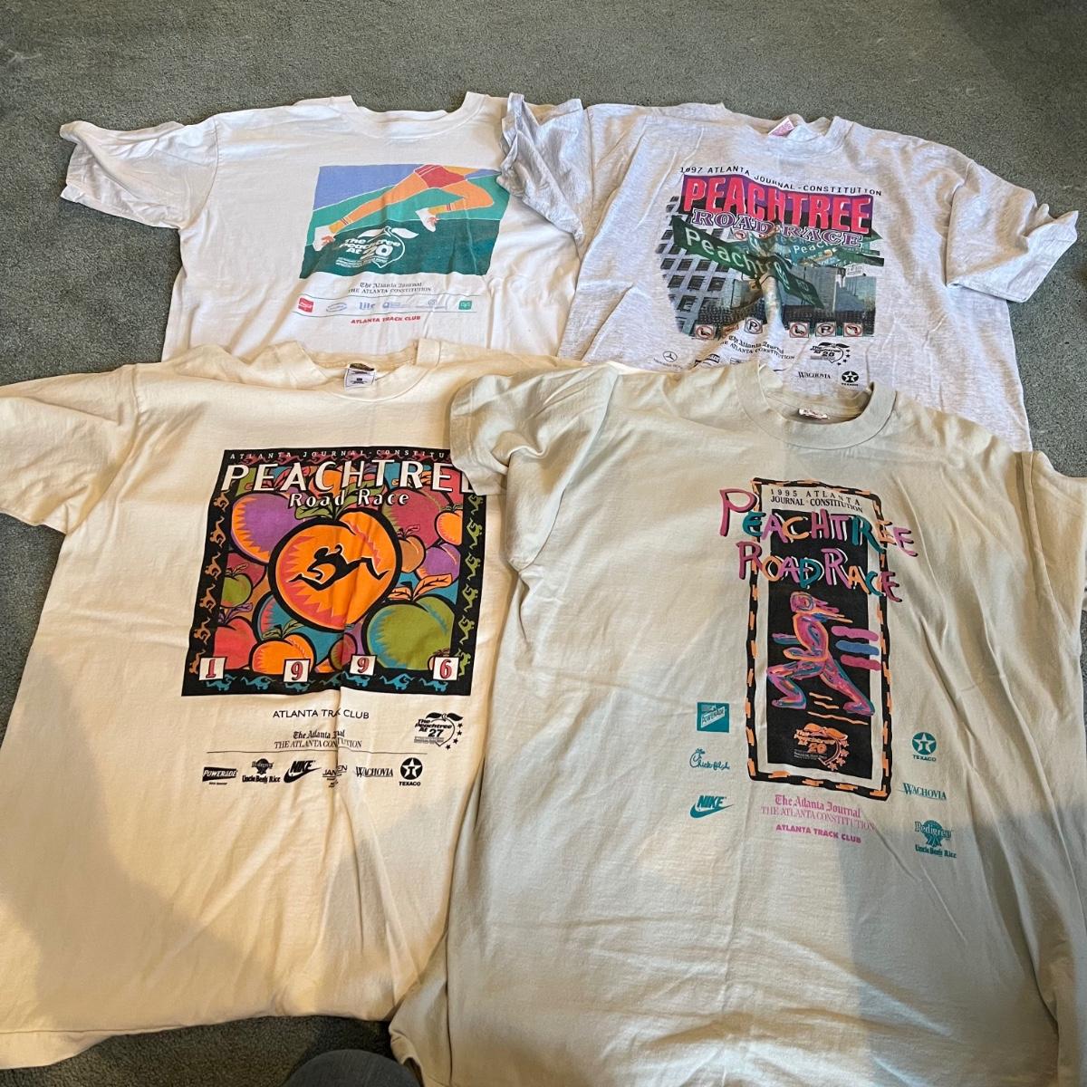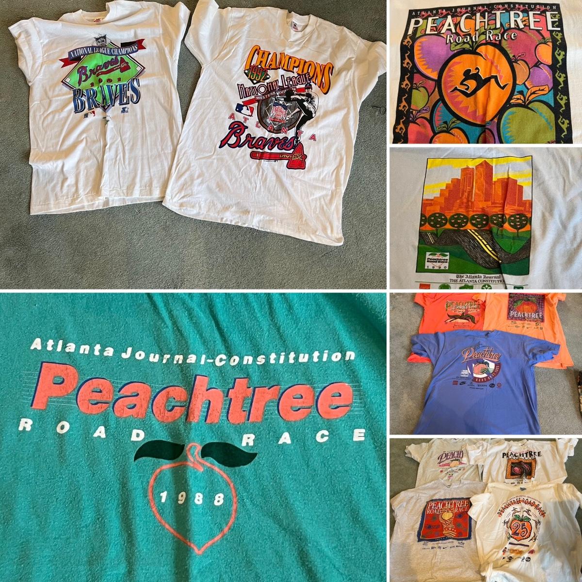 Over a dozen Atlanta Peachtree Road Race t-shirts are XL and from the late 1980’s through to 2000. The two Atlanta brave shirts are also XL and don’t appear to have been worn.