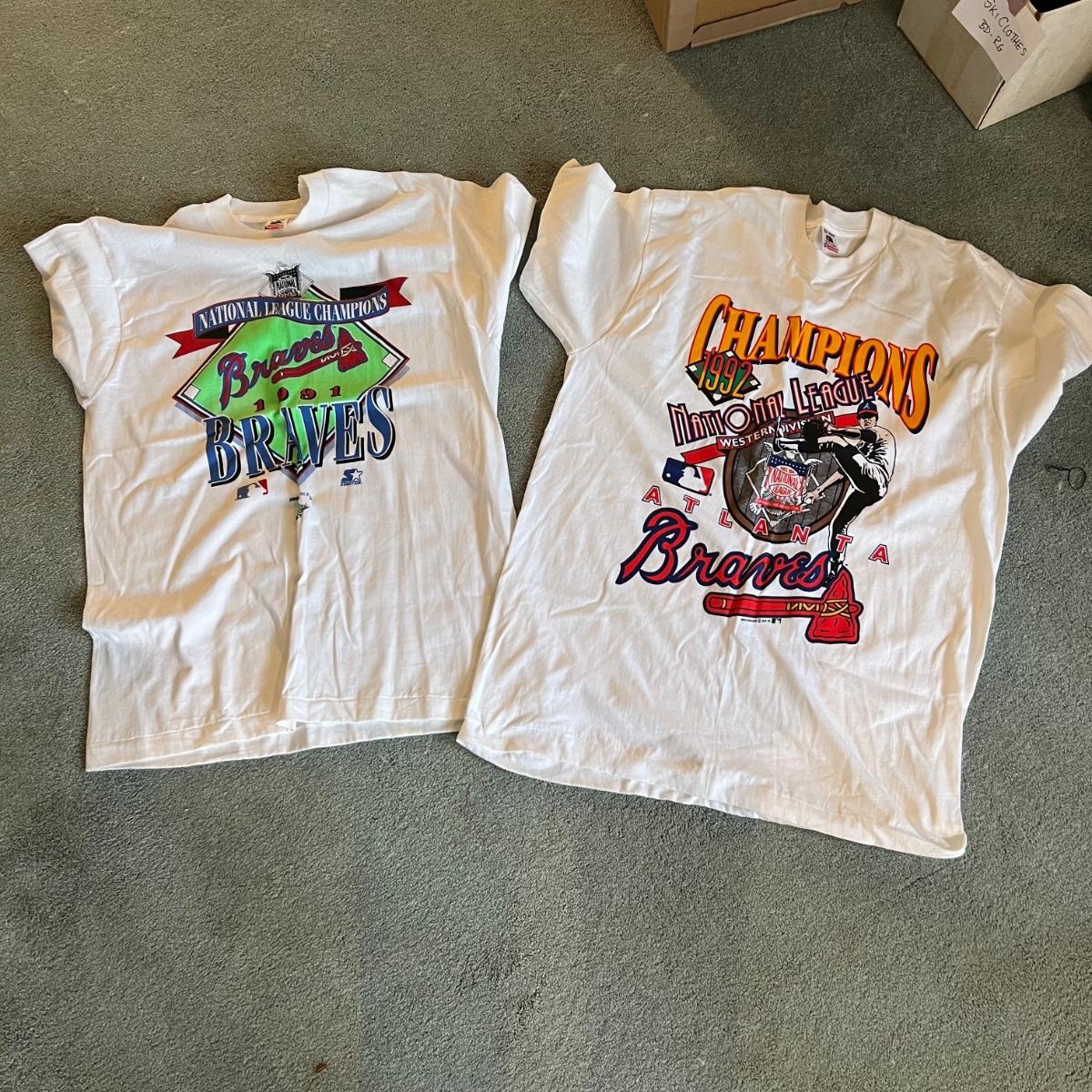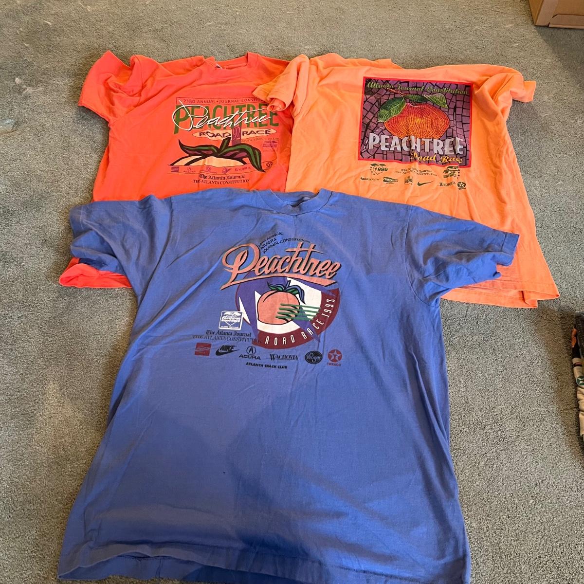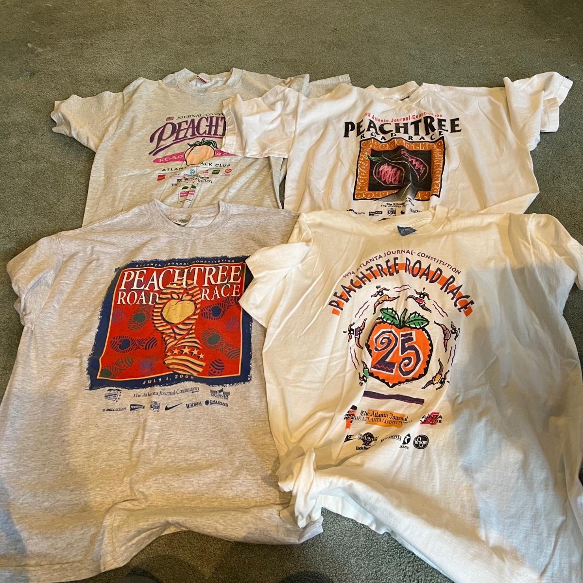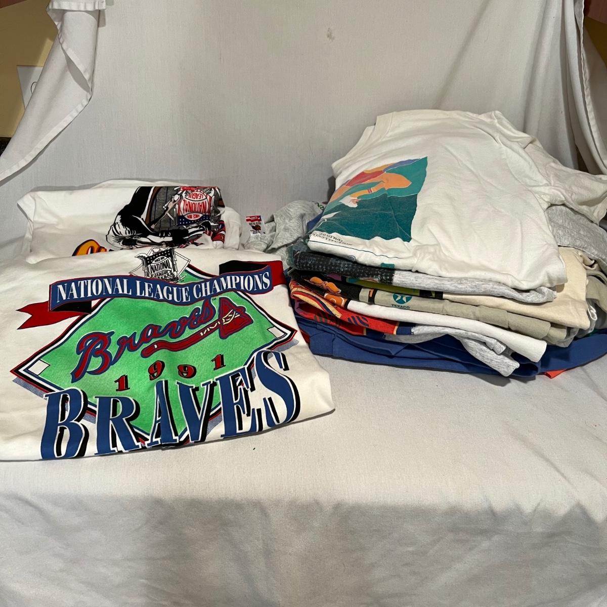 Over a dozen Atlanta Peachtree Road Race t-shirts are XL and from the late 1980’s through to 2000. The two Atlanta brave shirts are also XL and don’t appear to have been worn.