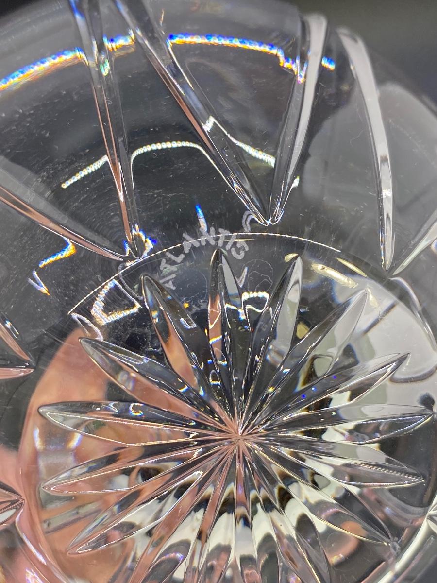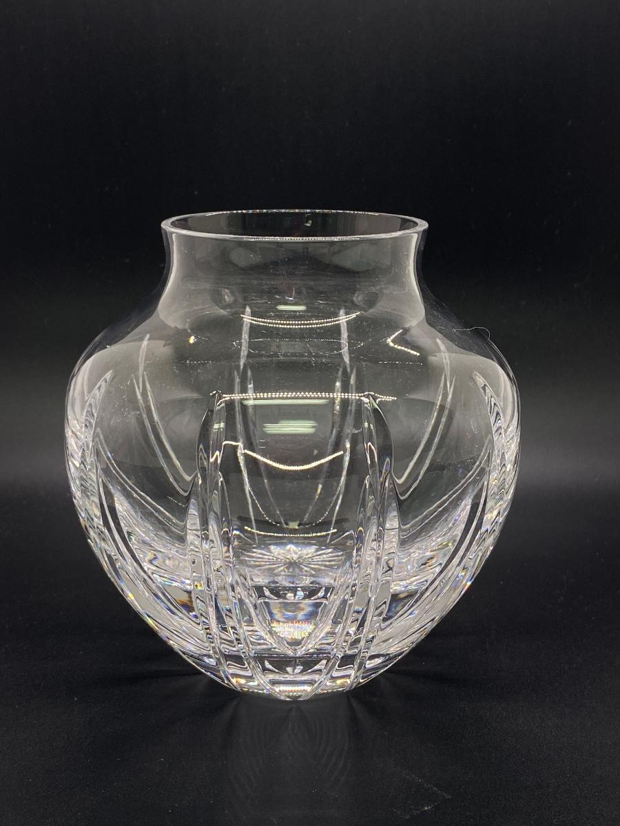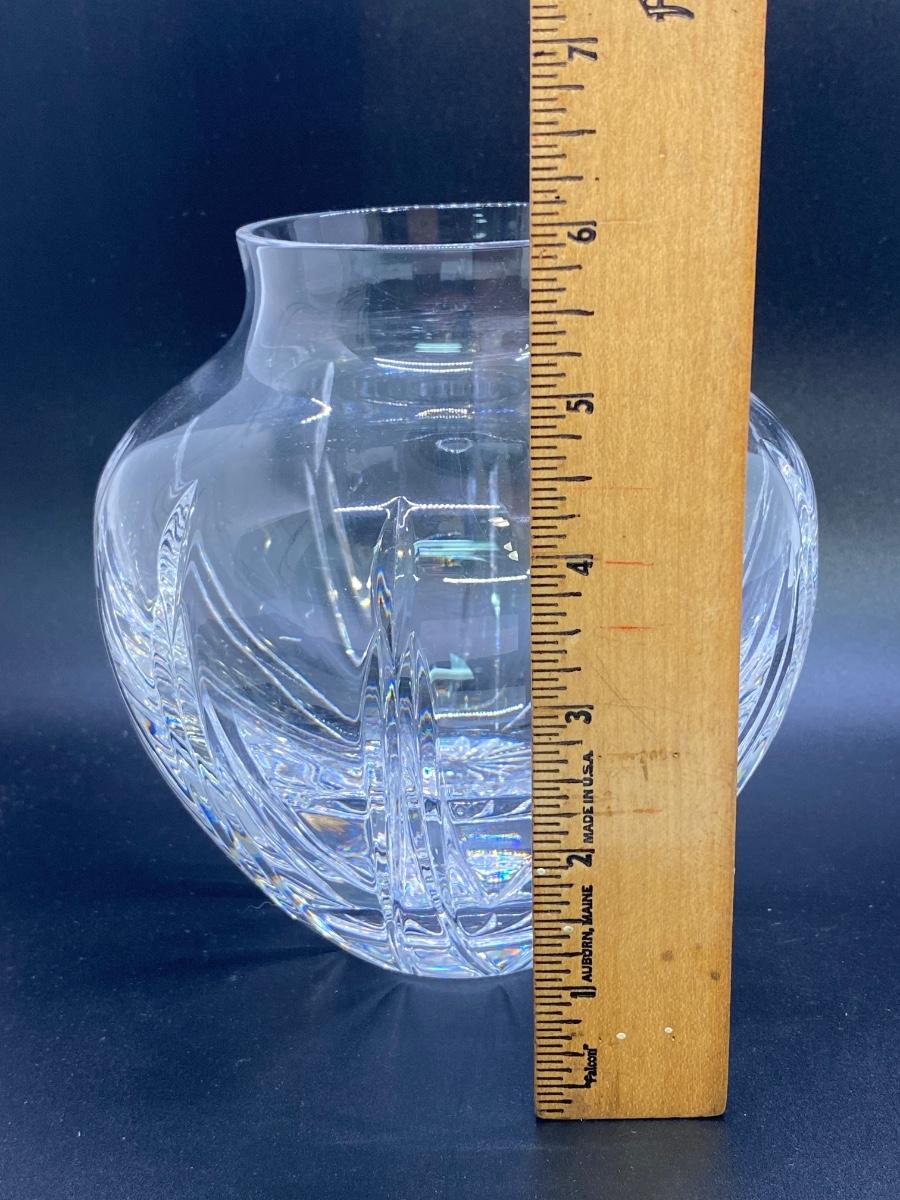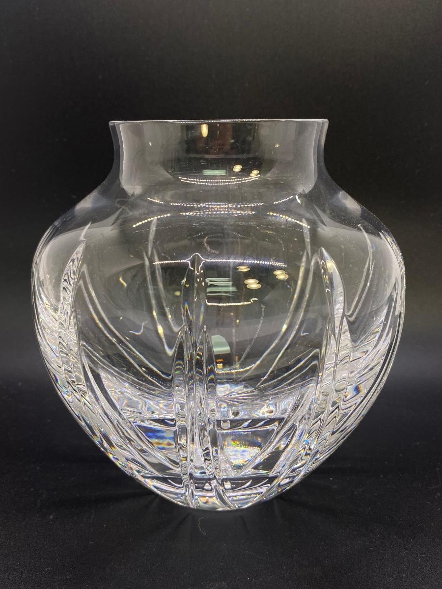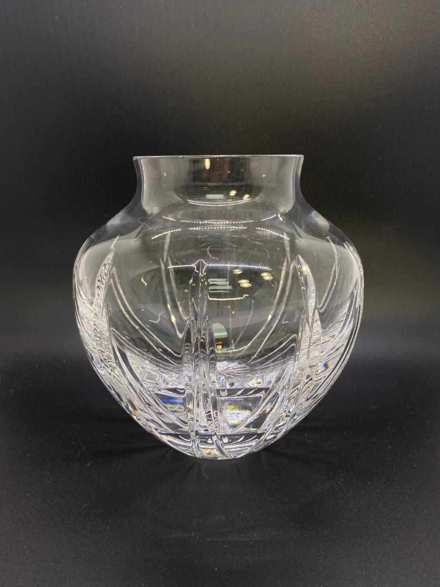Simple yet elegant Atlantis lead crystal vase. Vertical line cuts, heavy bottom. In good condition, no chips. About 6" tall.