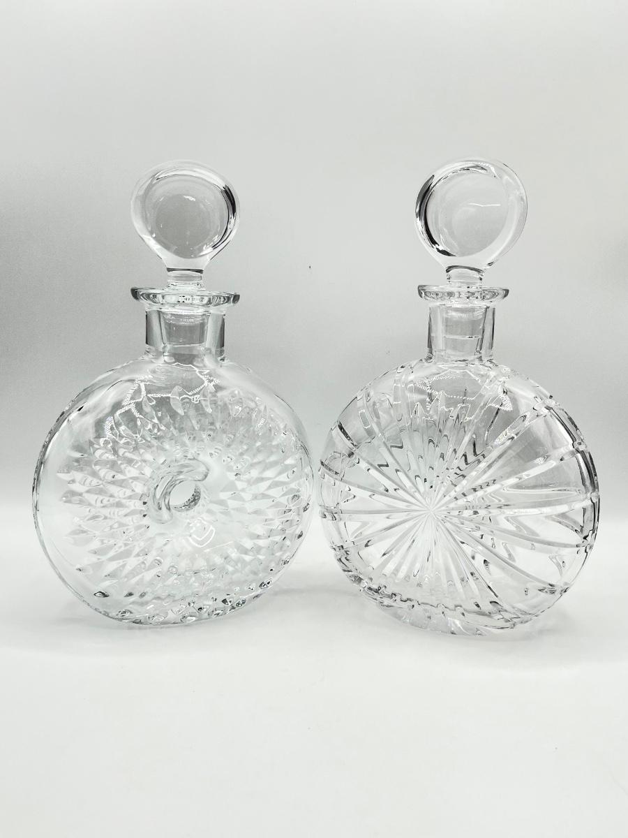 ATLANTIS ~ Pair (2) ~ Round Crystal Liquor Decanters With Stoppers