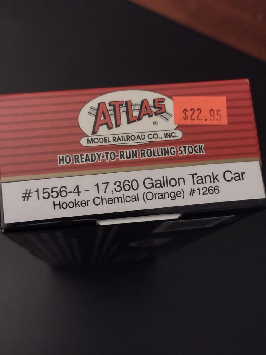 Atlas Ho Ready-to-Run #1556-4 17,360 Gallon Tank Car Hooker Chemical #1266 Train Model. Item appears to be new in box.