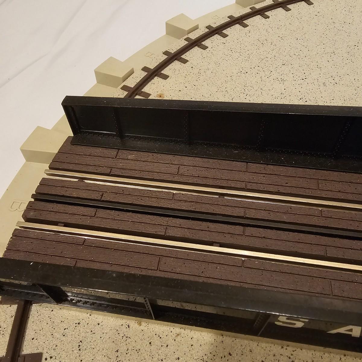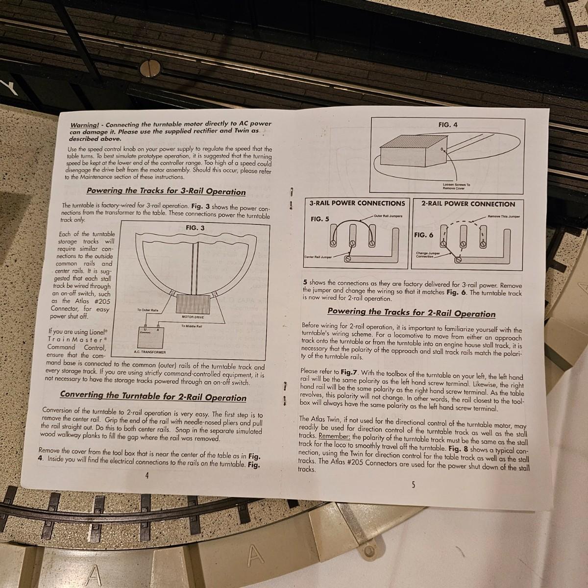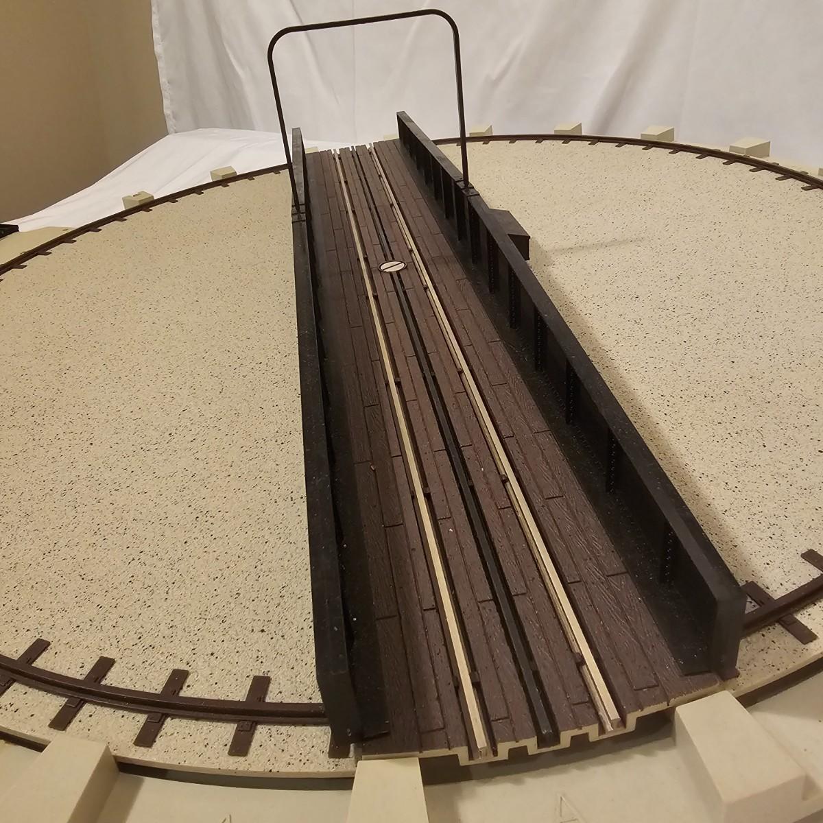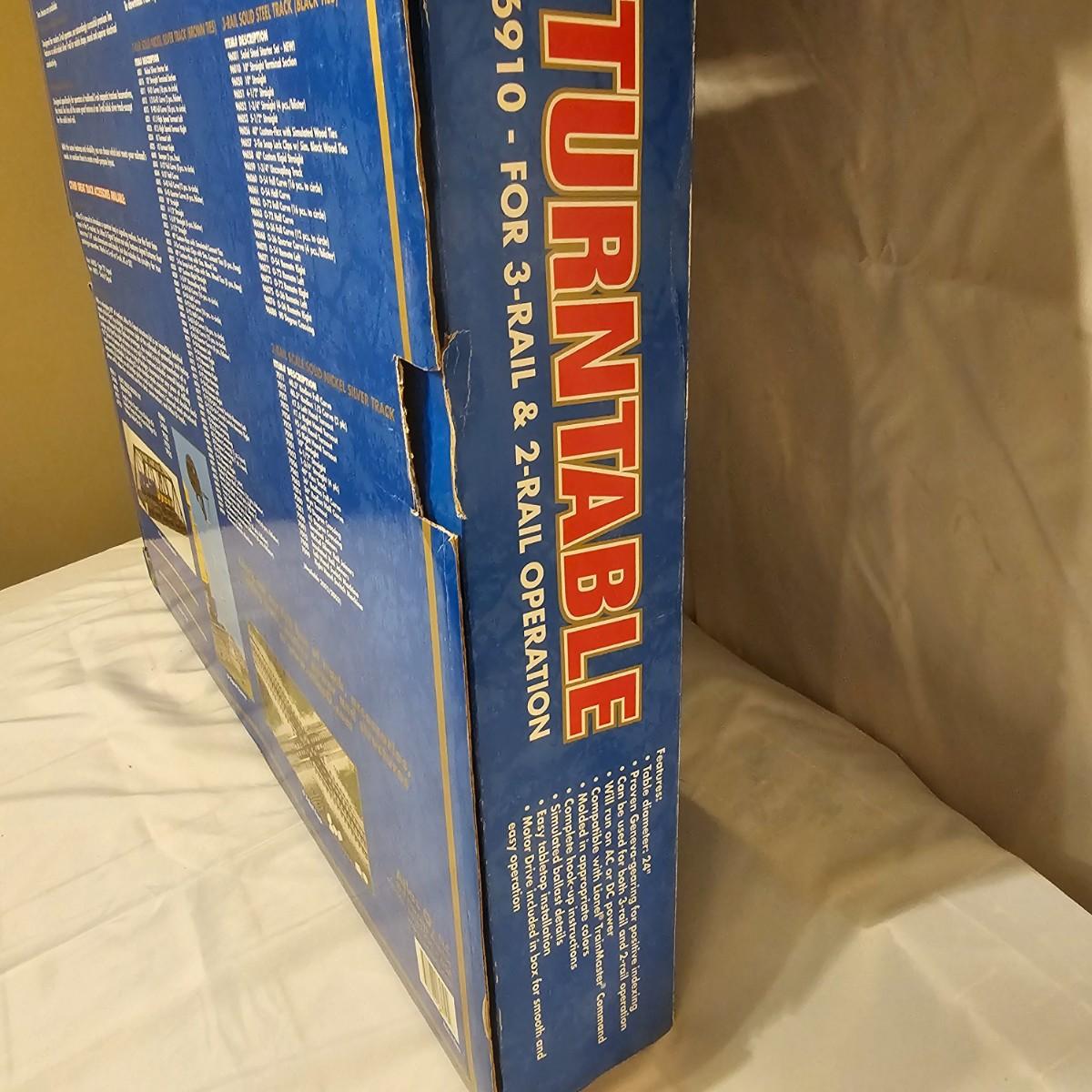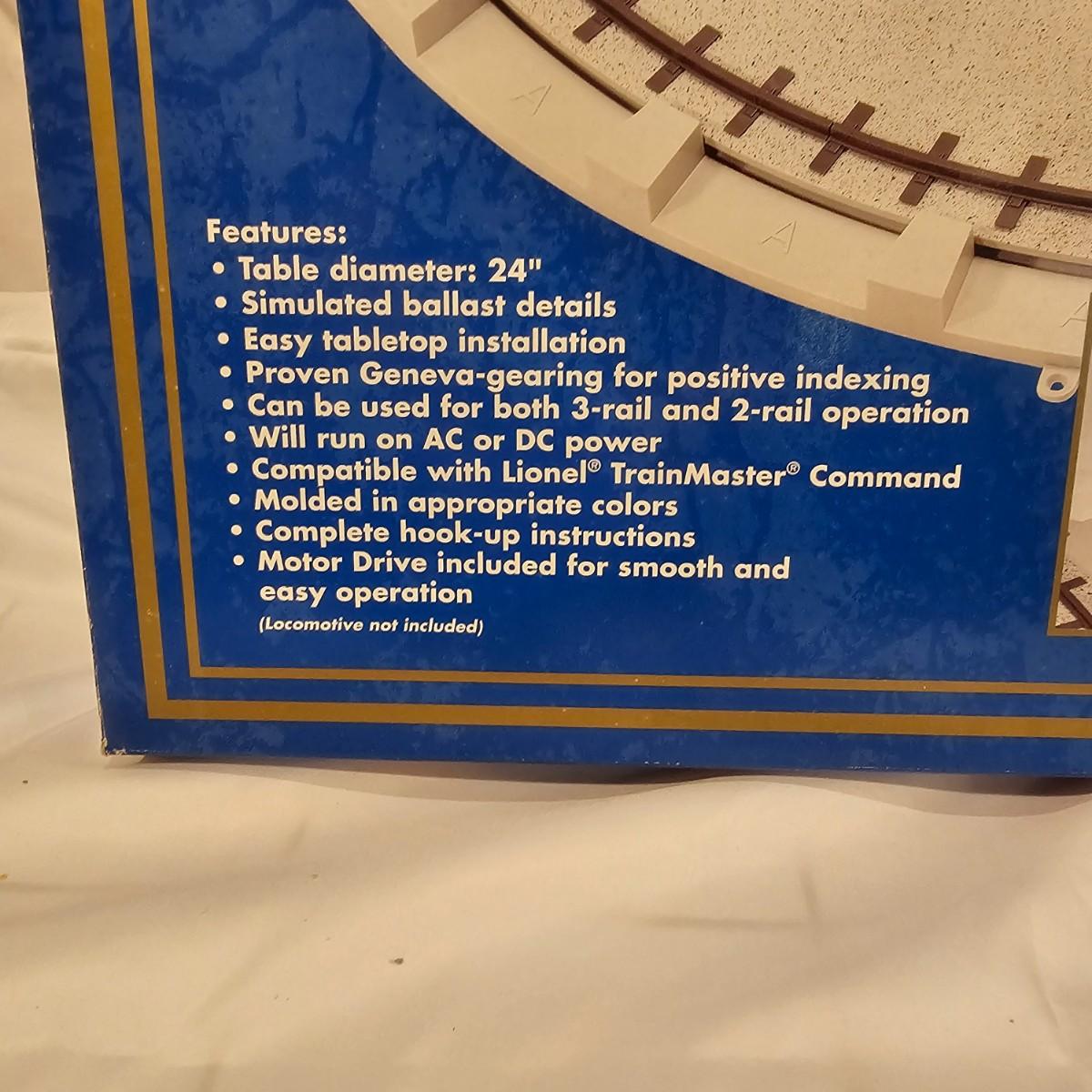 Atlas brand O scale turntable w/motor and instructions. All plastic construction, motor unit has housing to cover it. Missing is the green shanty piece from the side of the bridge. Item measures 28.5"D x 6"H, comes in original box, quite wobbly. Not tested. See photos for details. Local pickup only. Please note that any price tag seen on an item was not put there by Sterling Transitions and does not reflect the current value of the item.
