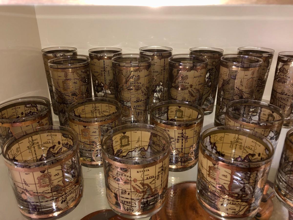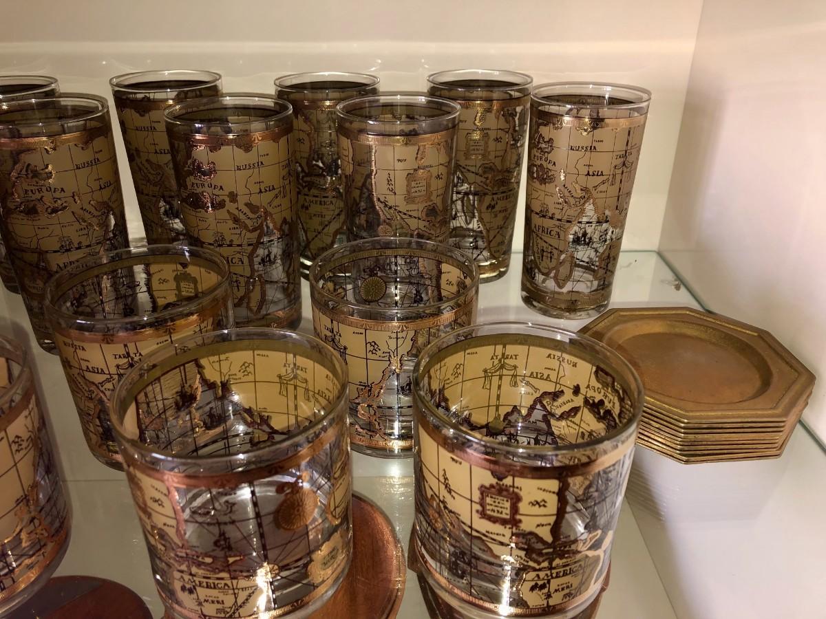 Set includes 10 large tumblers and 8 small tumblers, plus metal coasters.