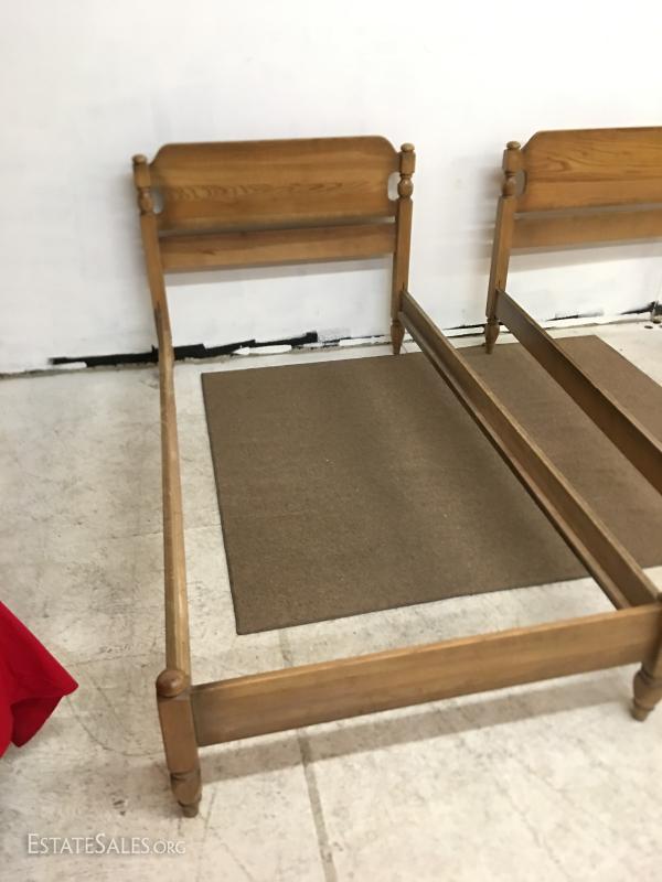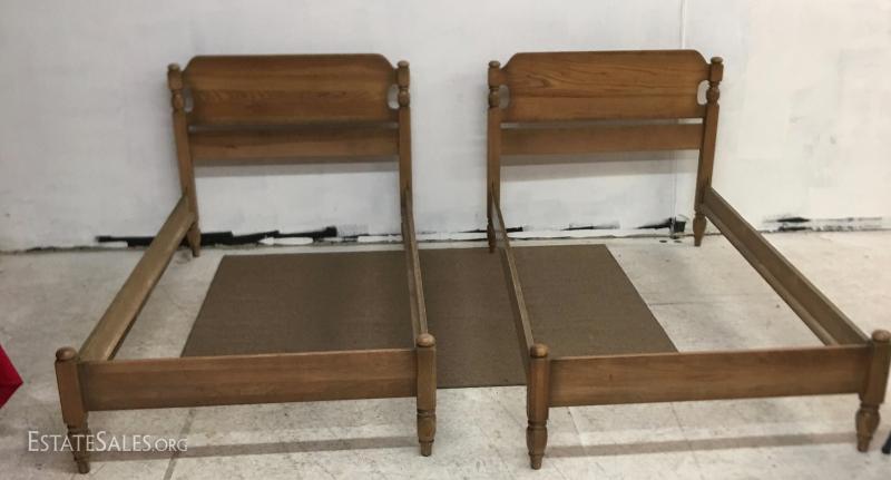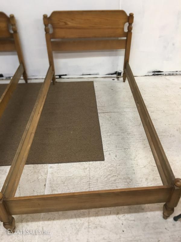 Beds are in good condition, mid 1950's ranch style furniture, several other pieces of this set listed. Measure 39" by 75" will fit standard single/twin bed frame. Auction is for both beds.