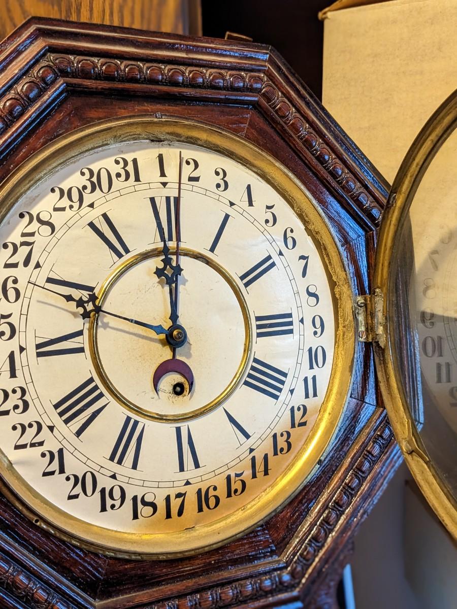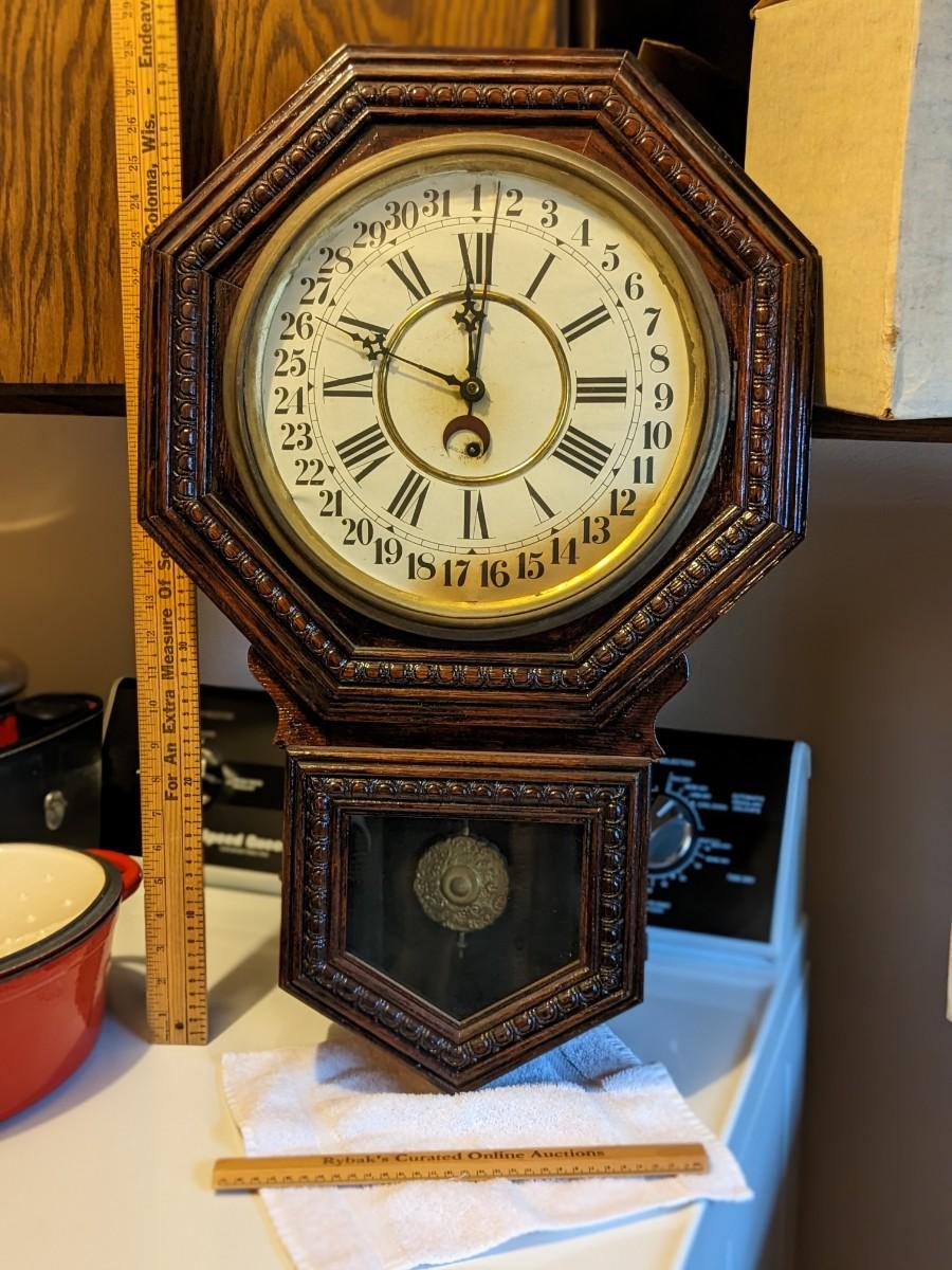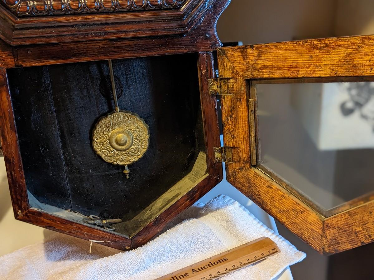 Atq Waterbury "HERON" Regulator Oak Wall Clock Calendar Long Drop Schoolhouse