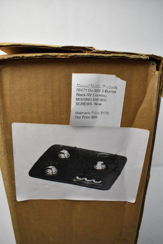 Atwood Mobile Products 56471 Dv-30B 3-Burner Black RV Cooktop, MISSING KNOBS/SCREWS- New