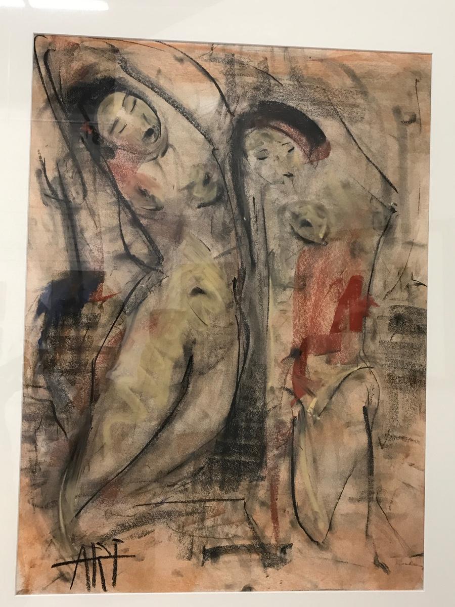 Aubry Frederick "Two Nudes" Oil Pastel on paper 38.5"H x 32.5" W