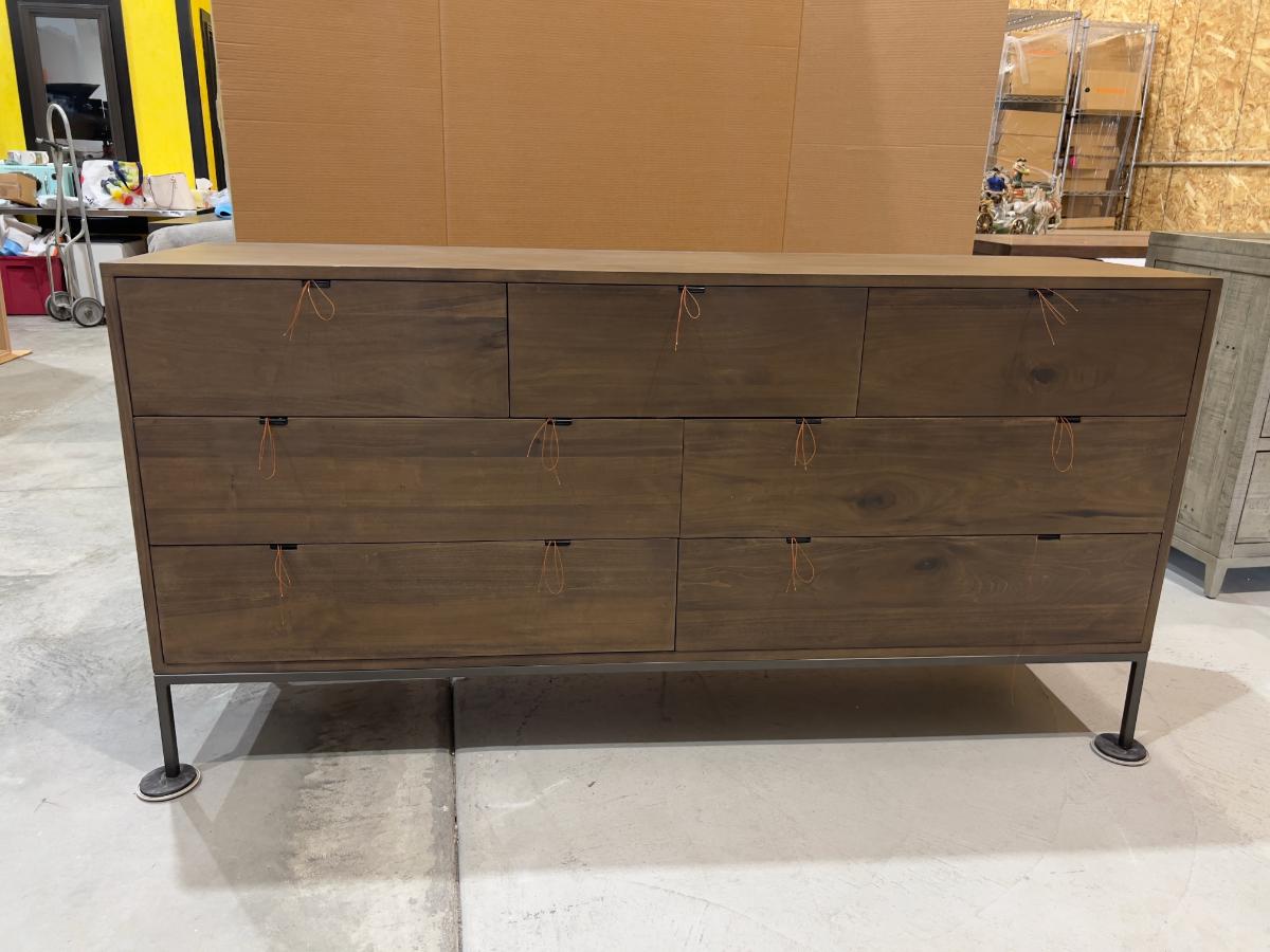 Not used Excellent Condition. Jointed Corners. Wood with Metal Legs. High quality! Please provider moving assistance and secure transportation and or packing materials for moving. Measures 70 x 19x 35.