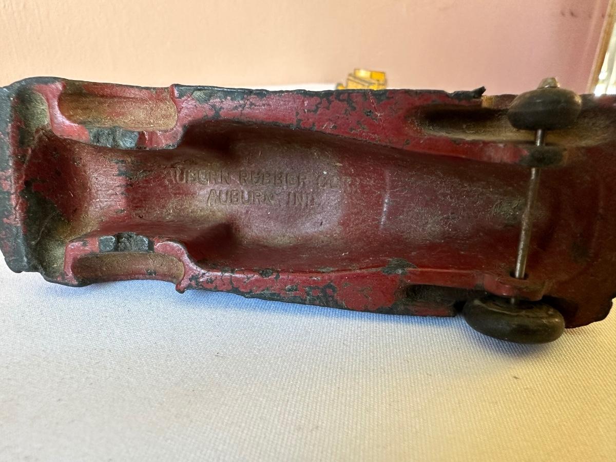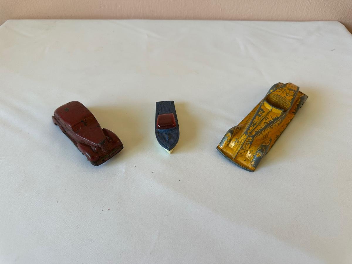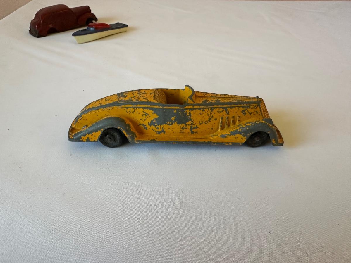 AUBURN RUBBER CAR, WANNATOY BOAT AND 1940's METAL MASTERS DIE-CAST TOY CAR