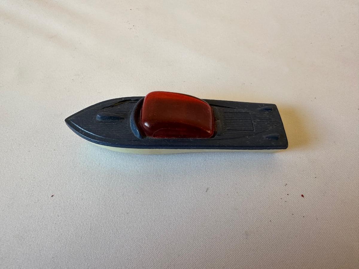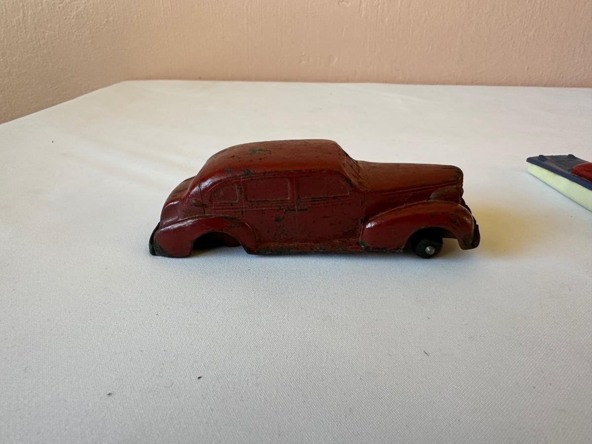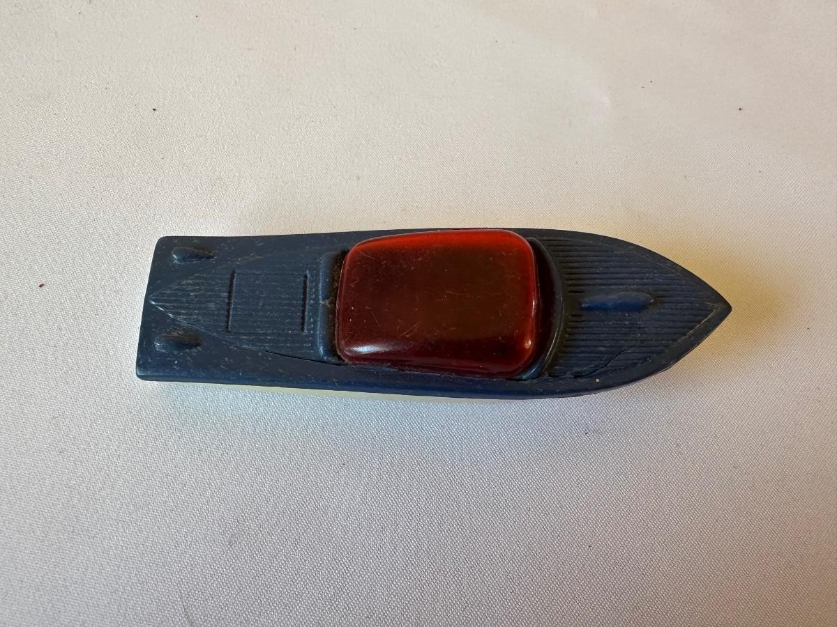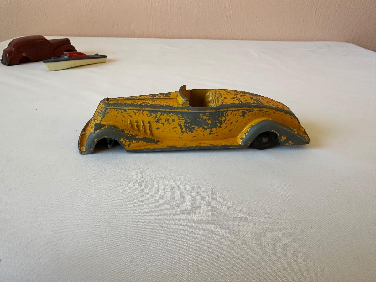 AUBURN RUBBER CAR, WANNATOY BOAT AND 1940's METAL MASTERS DIE-CAST TOY CAR