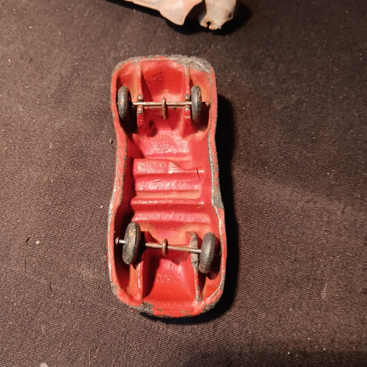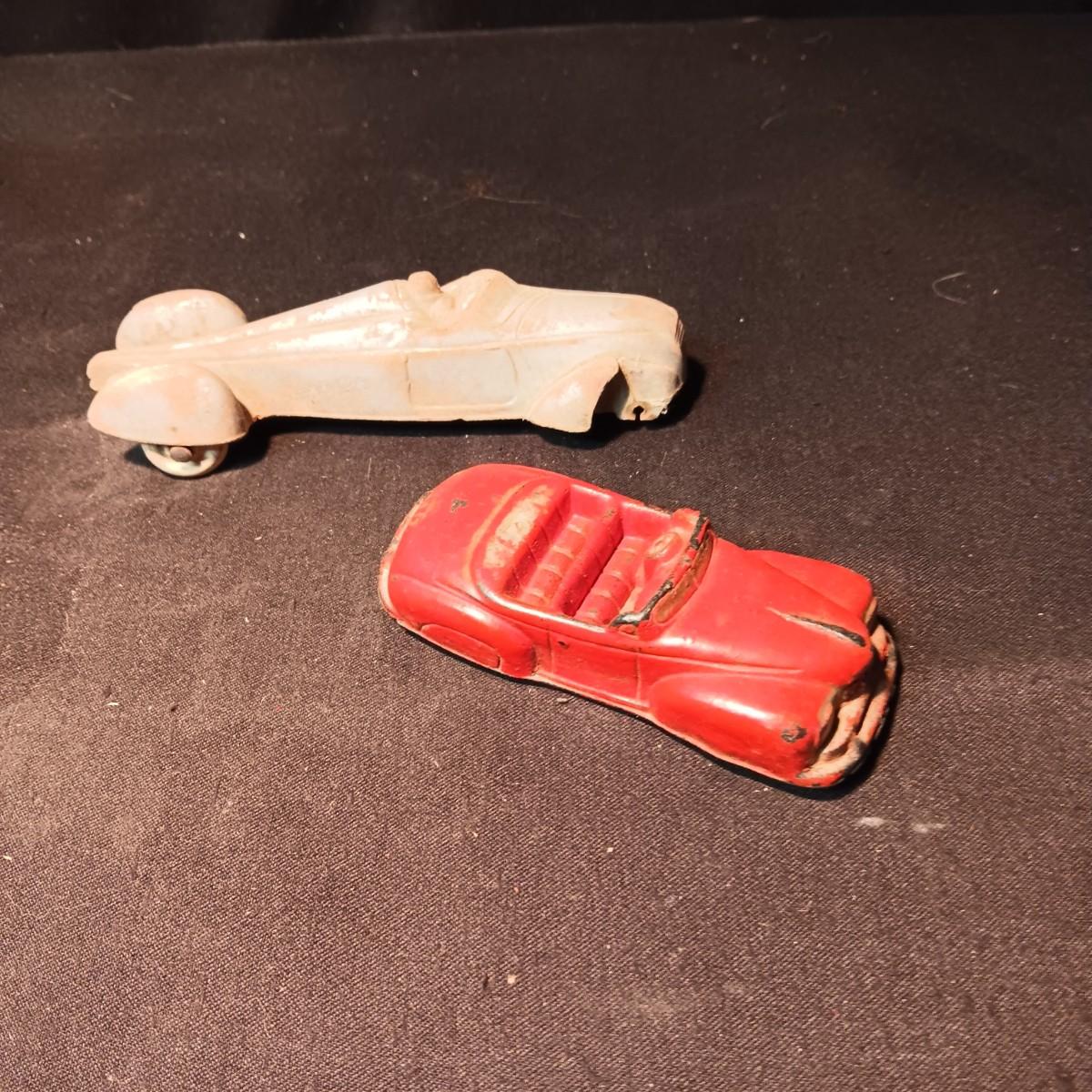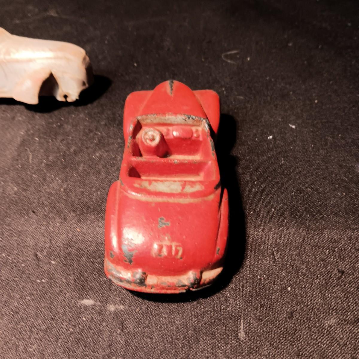 THE WHITE RACE CAR IS MISSING THE FRONT WHEELS