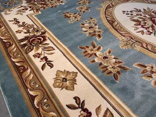 8 Feetx11 Feet Magnificent,detailed timeless French Aubosson Design Round Rug in Light Blue, Ivory,  Multi Accent Colors,Premium Quality Power Loomed in Turkey, made of Durable and easy care headset olefin Pile, Colorfast and Stain Resistant.