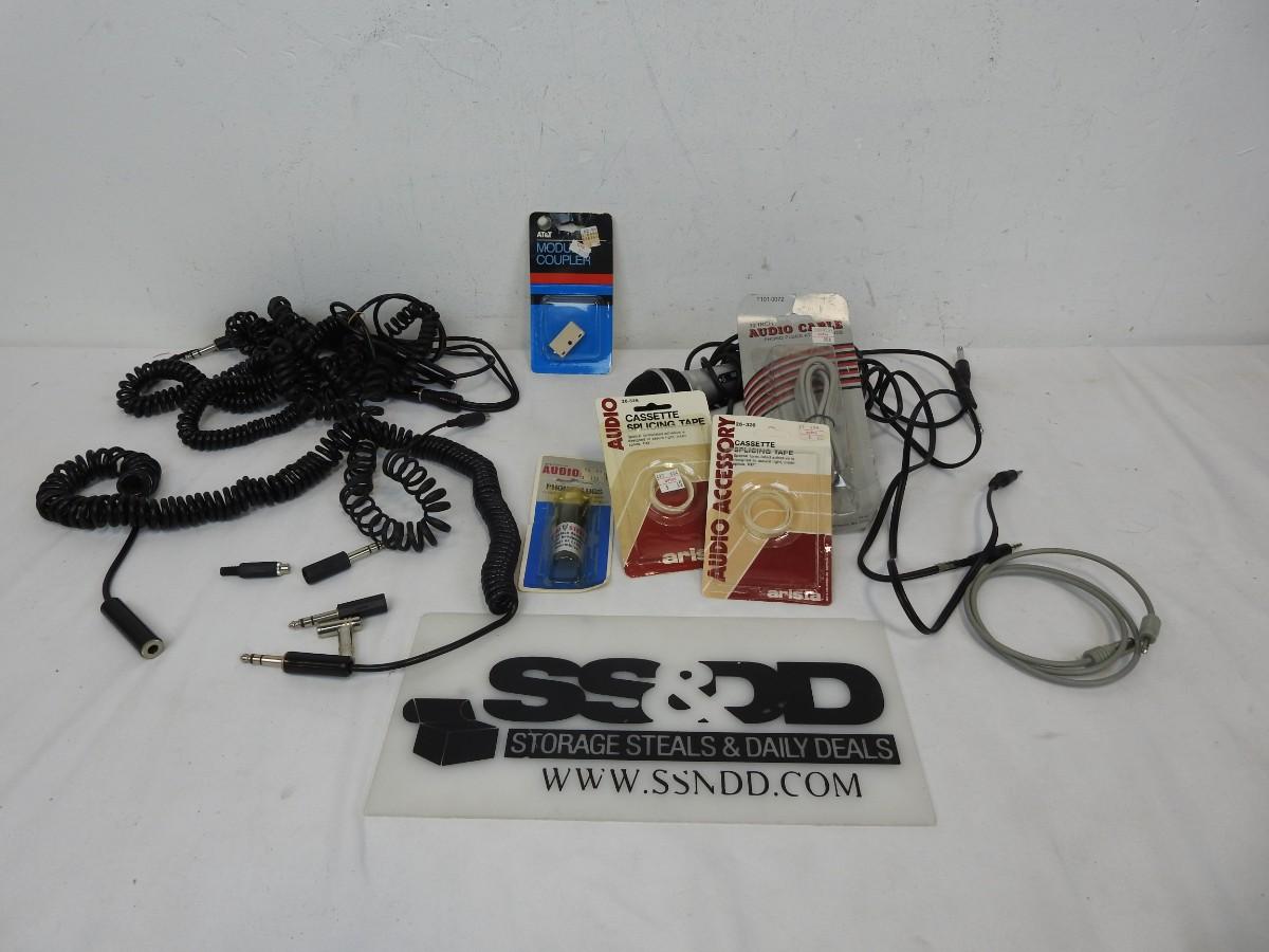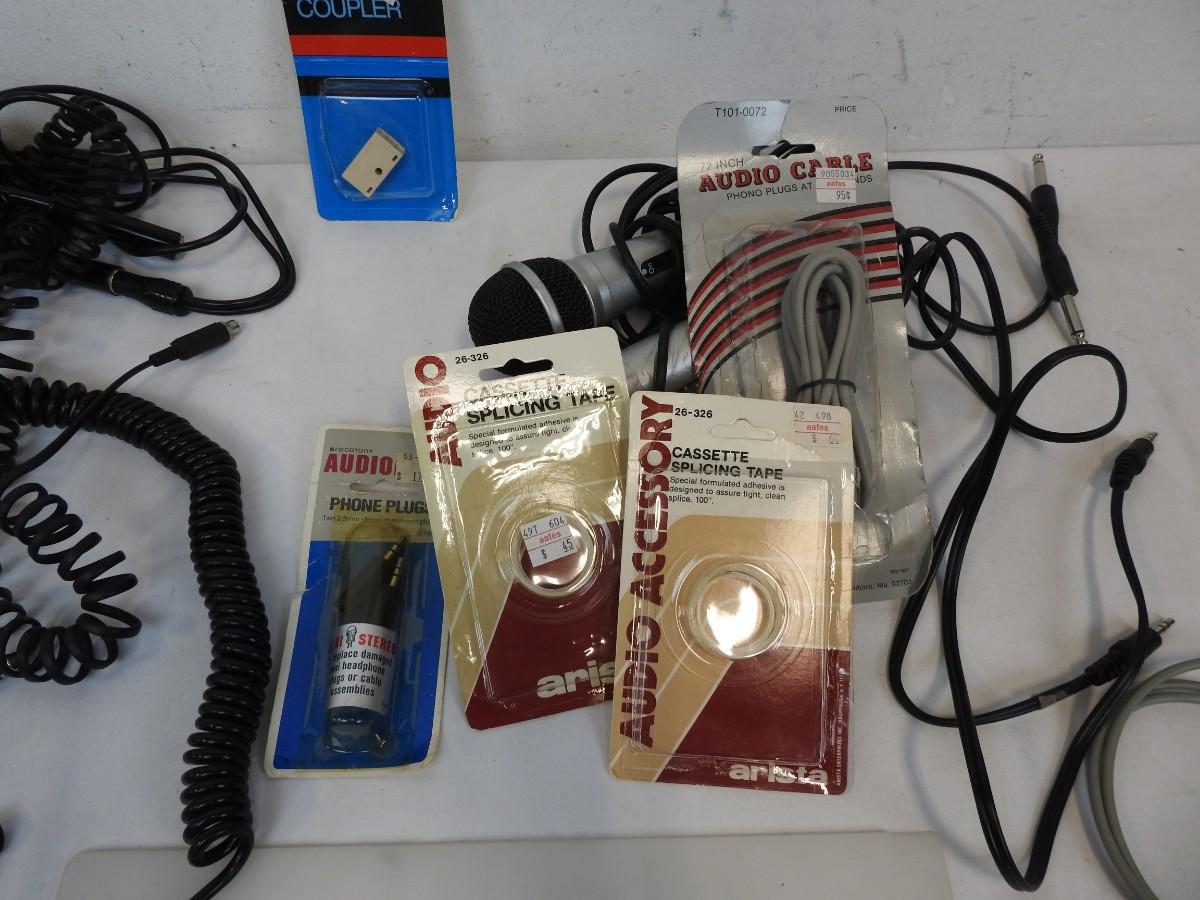 Audio Equipment: Microphones, Cassette Splicing Tape, Modular Coupler, Phone Plugs, Many Extension Chords