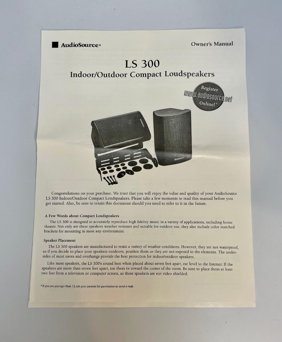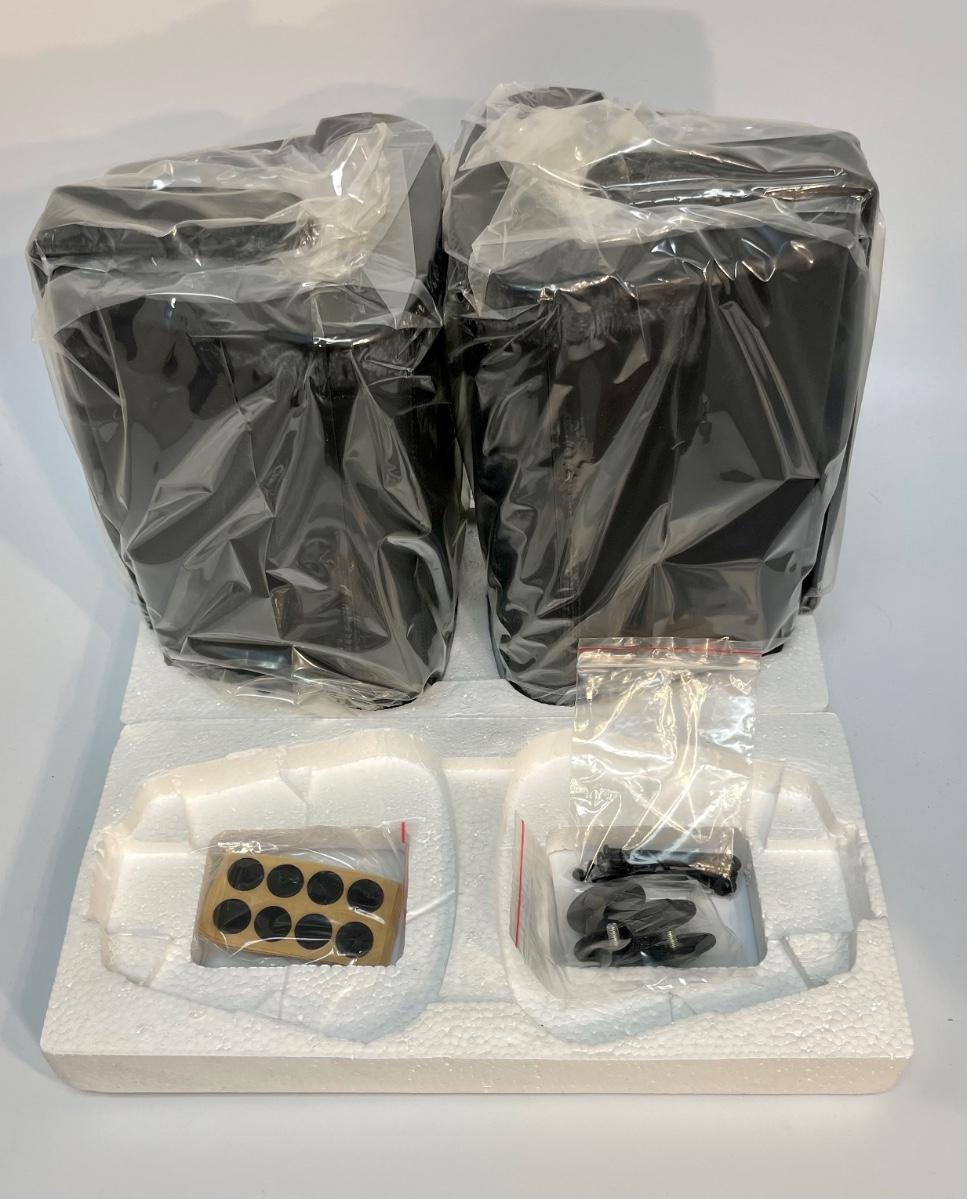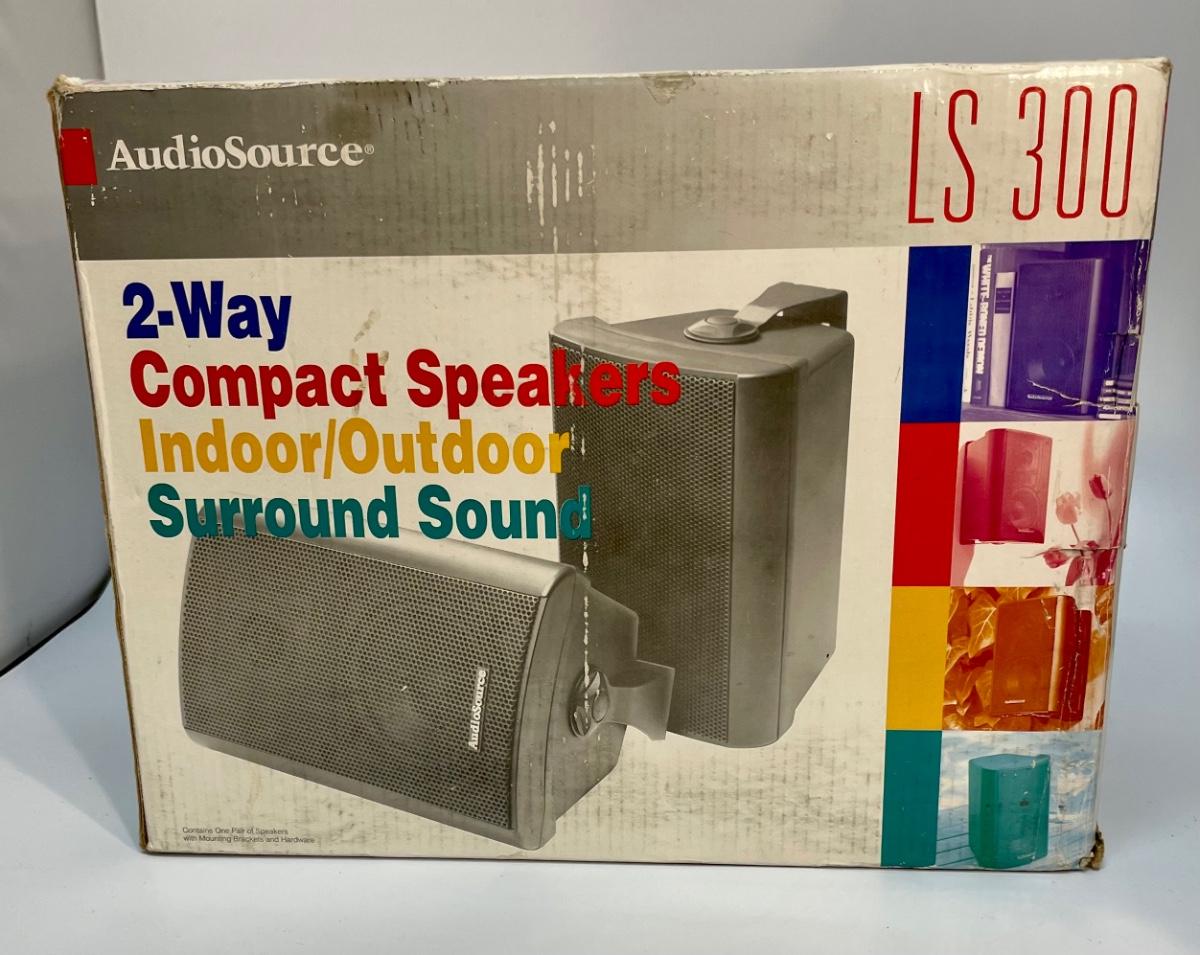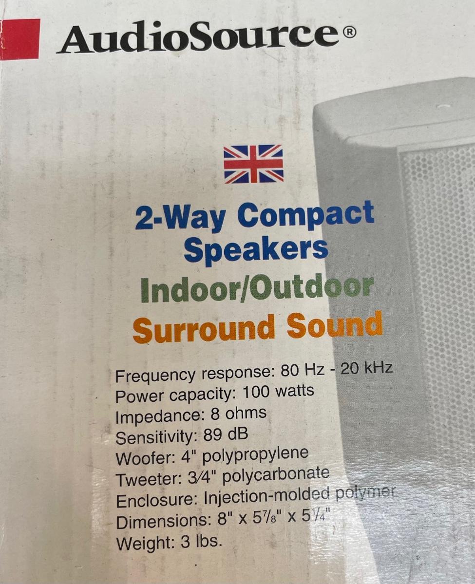 Pair of new in box AudioSource speakers. Gloss black, still sealed in original plastic wrap, all hardware and brackets included. See photos for specs and dimensions.