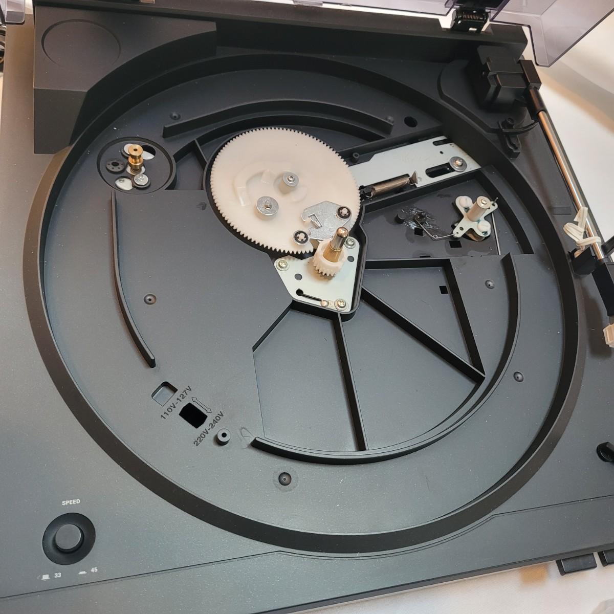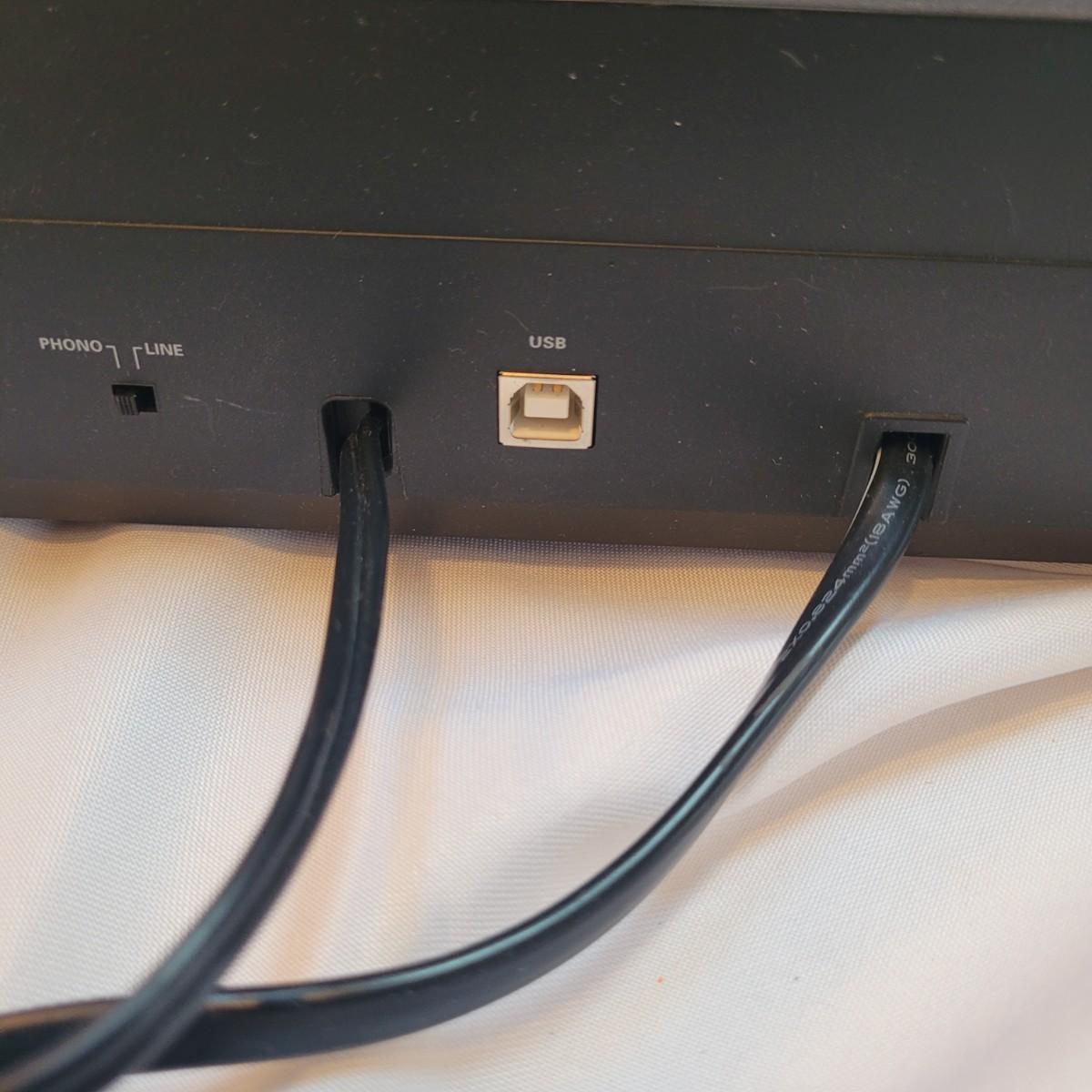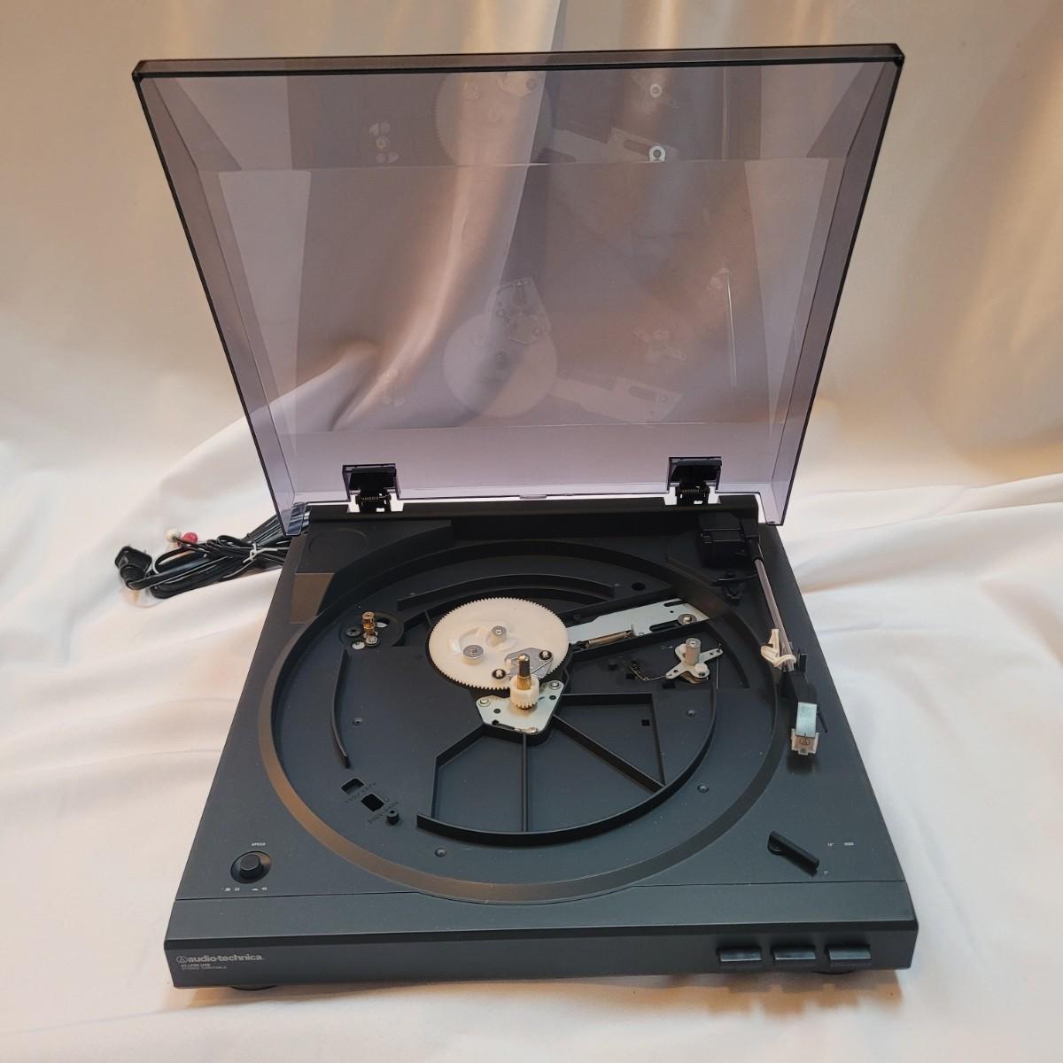 Audio-Technica brand AT-LP2D USB turntable. Equipped with a USB output that allows direct connection to your computer for vinyl to digital conversion. The turntable also features a built-in switchable phono/line preamp that allows connection to a stereo system equipped with either a phono or line-level input. Most parts are new in the package. Powers on when plugged in. Measures 14" x 14" x 4"H.