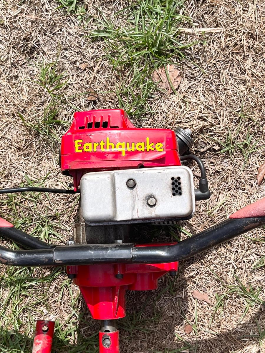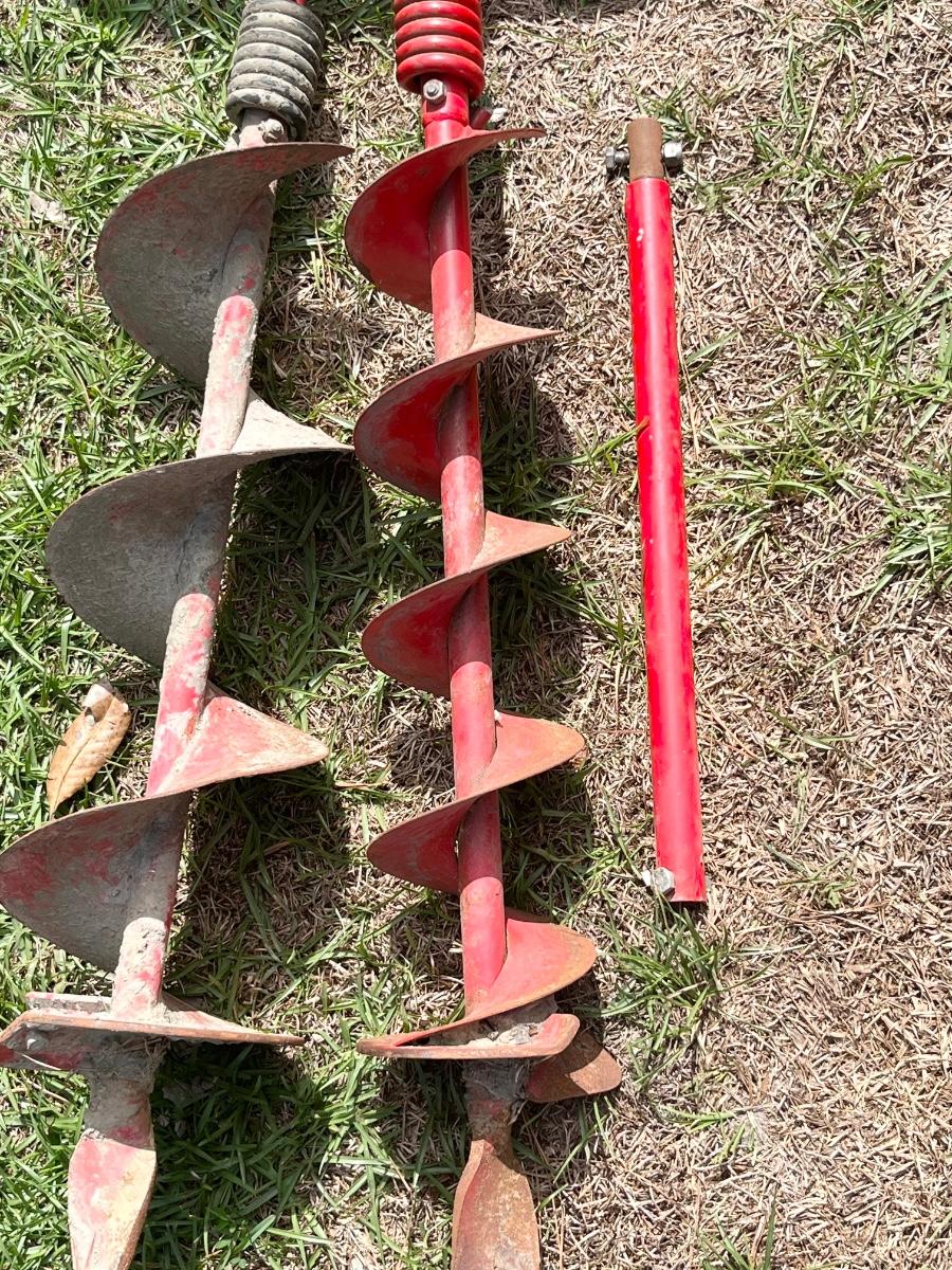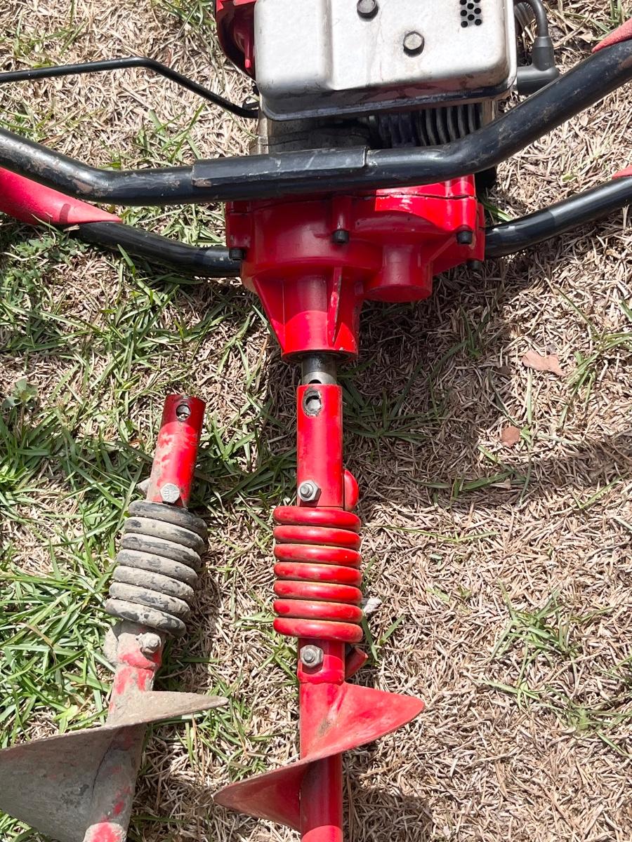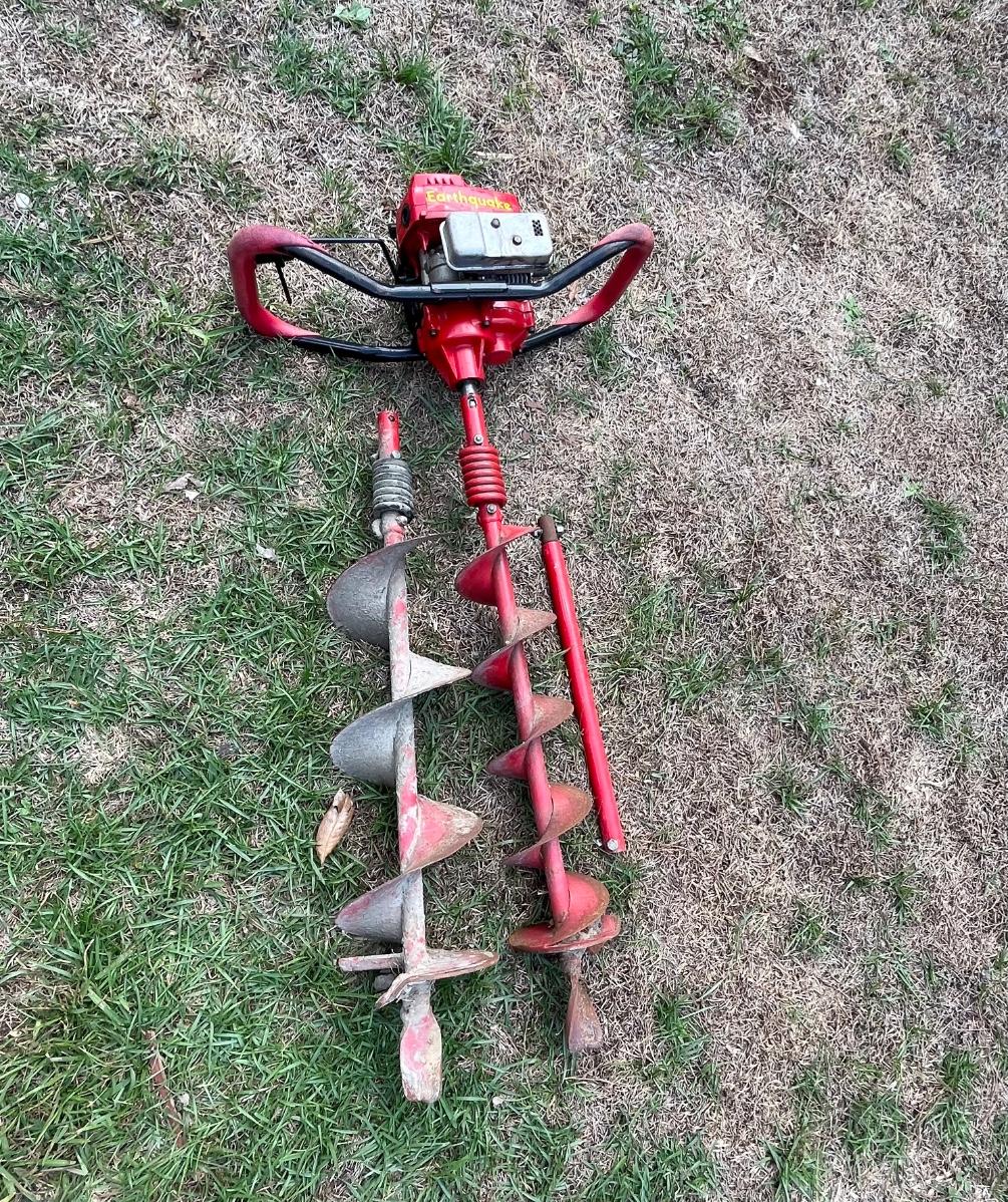 Two power drills ~ 34” long approx 8” wide ~ 34” long approx 5” wide ~ It needs gas, cords pulls easy, just needs tuning