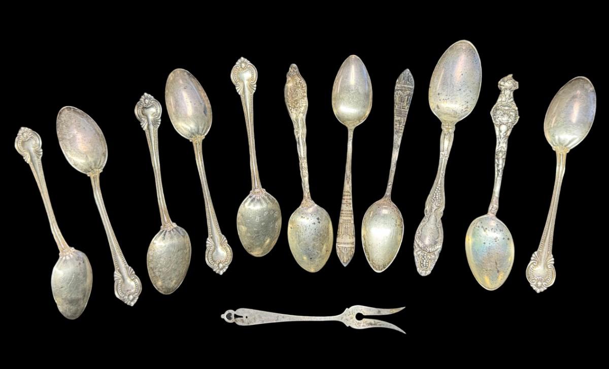 [191g] Makers include Wallace, and more. Includes spoons, collector spoons, and a cocktail fork. Total of 12 pieces. [TM]
