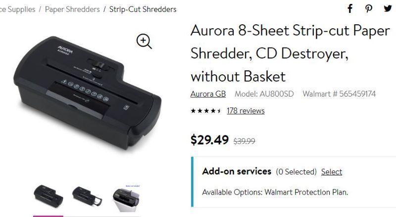 Aurora 8-Sheet Strip-Cut Paper Shredder - New, Open Box, Sale Walmart @$30