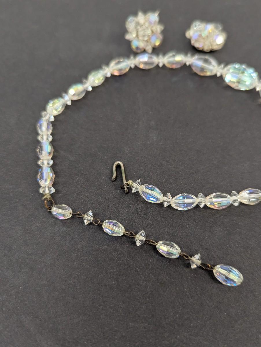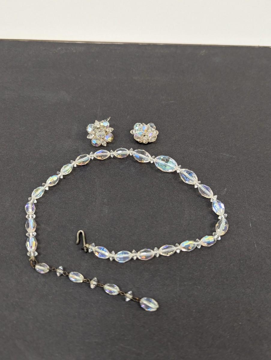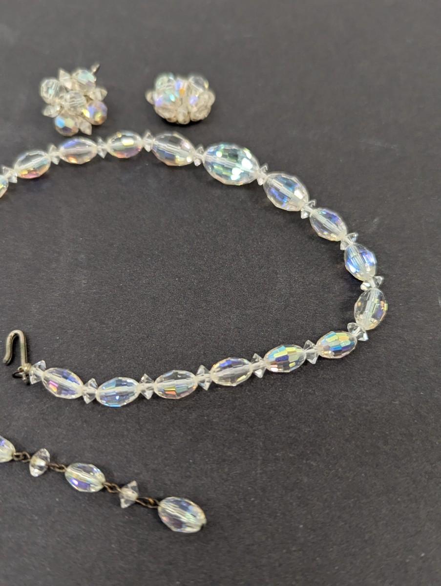 Aurora Borealis Crystal Faceted Beaded Necklace & Earrings