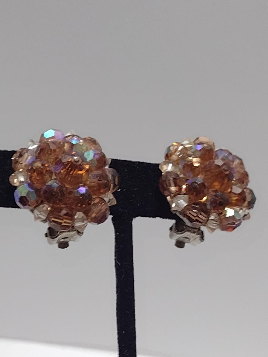 Aurora Borealis Cuff Bracelet and Clip-Back Earrings (#29). Maker's mark not found.